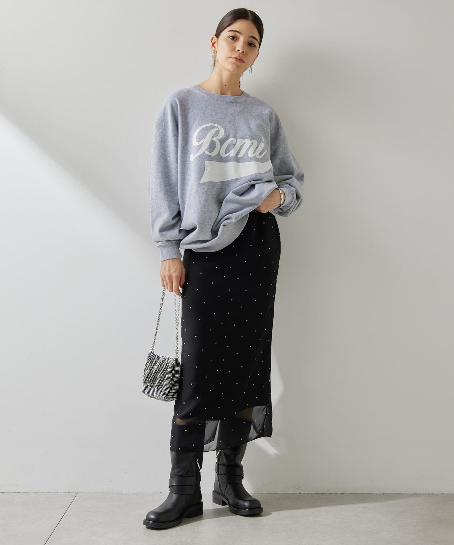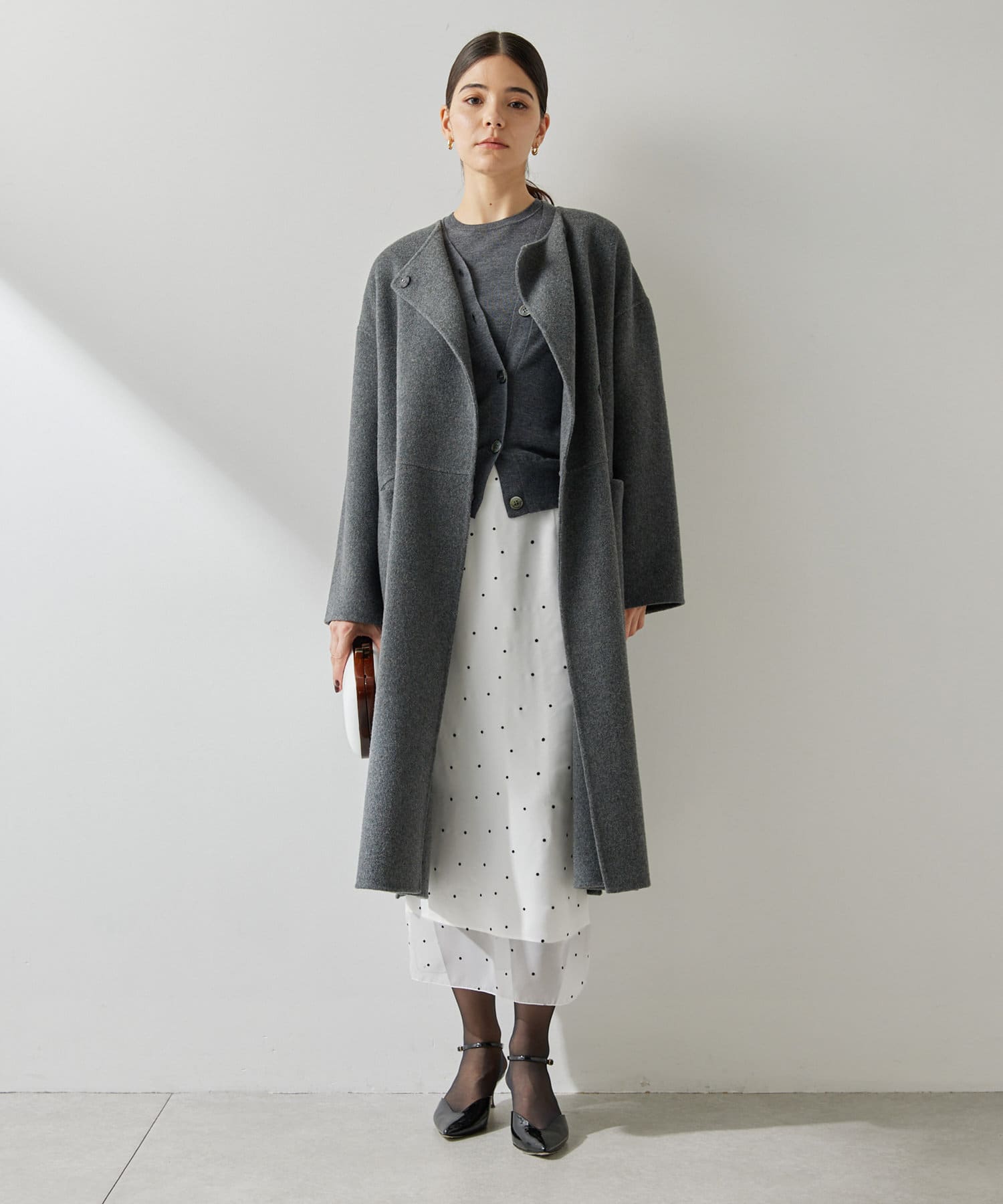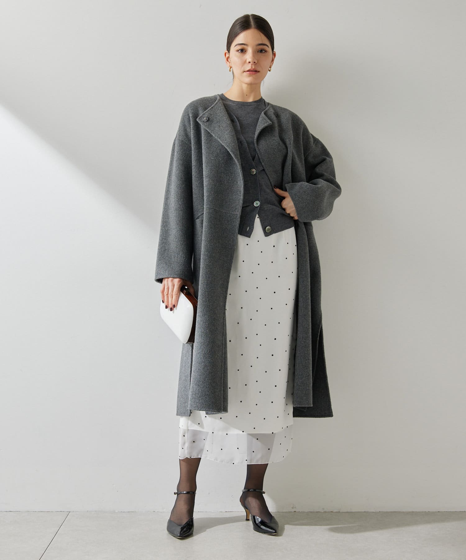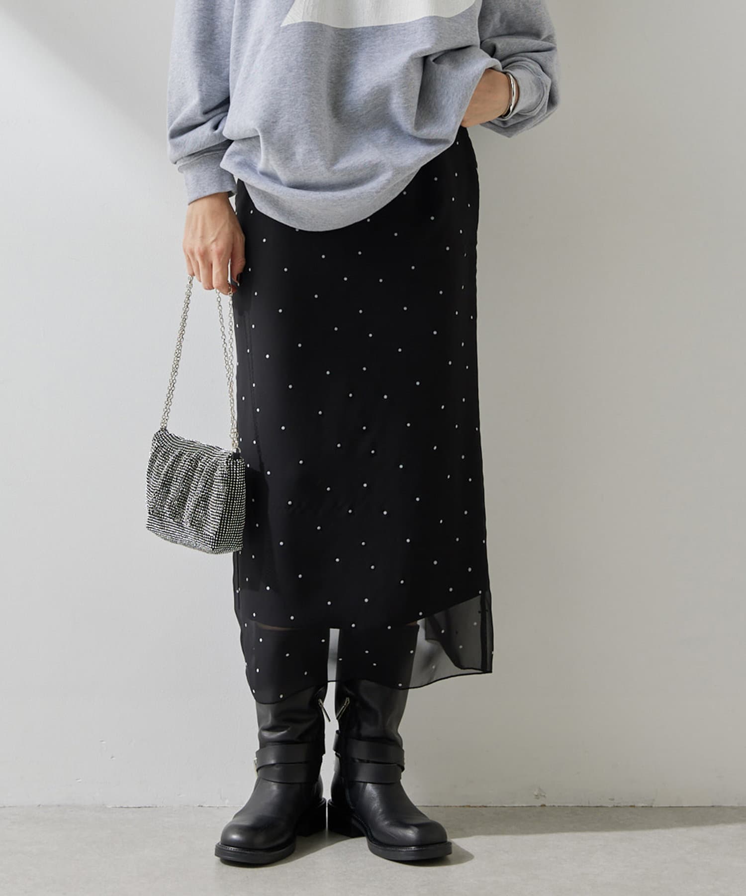スタイリングを軽やかに魅せる、大人のドットスカート