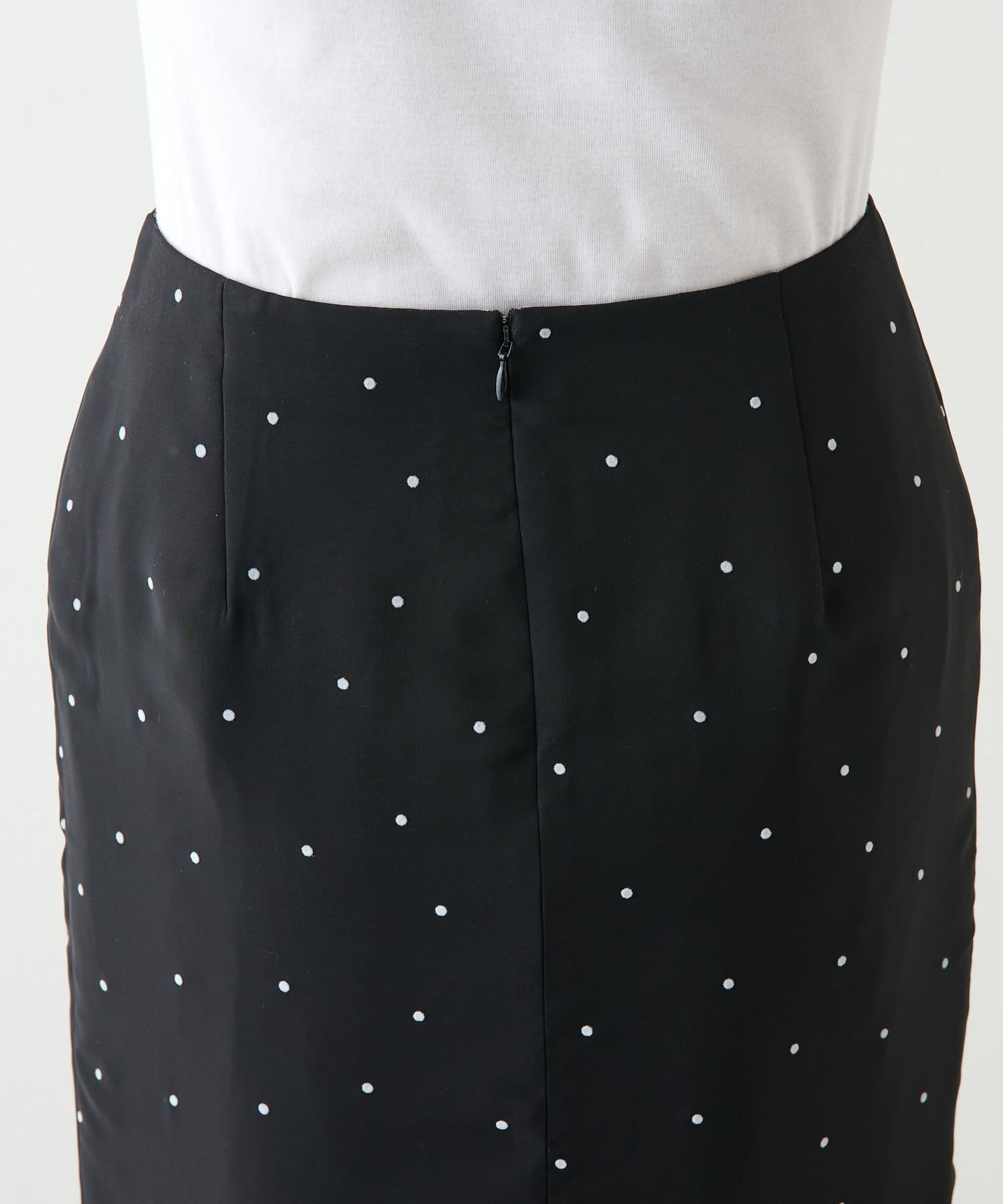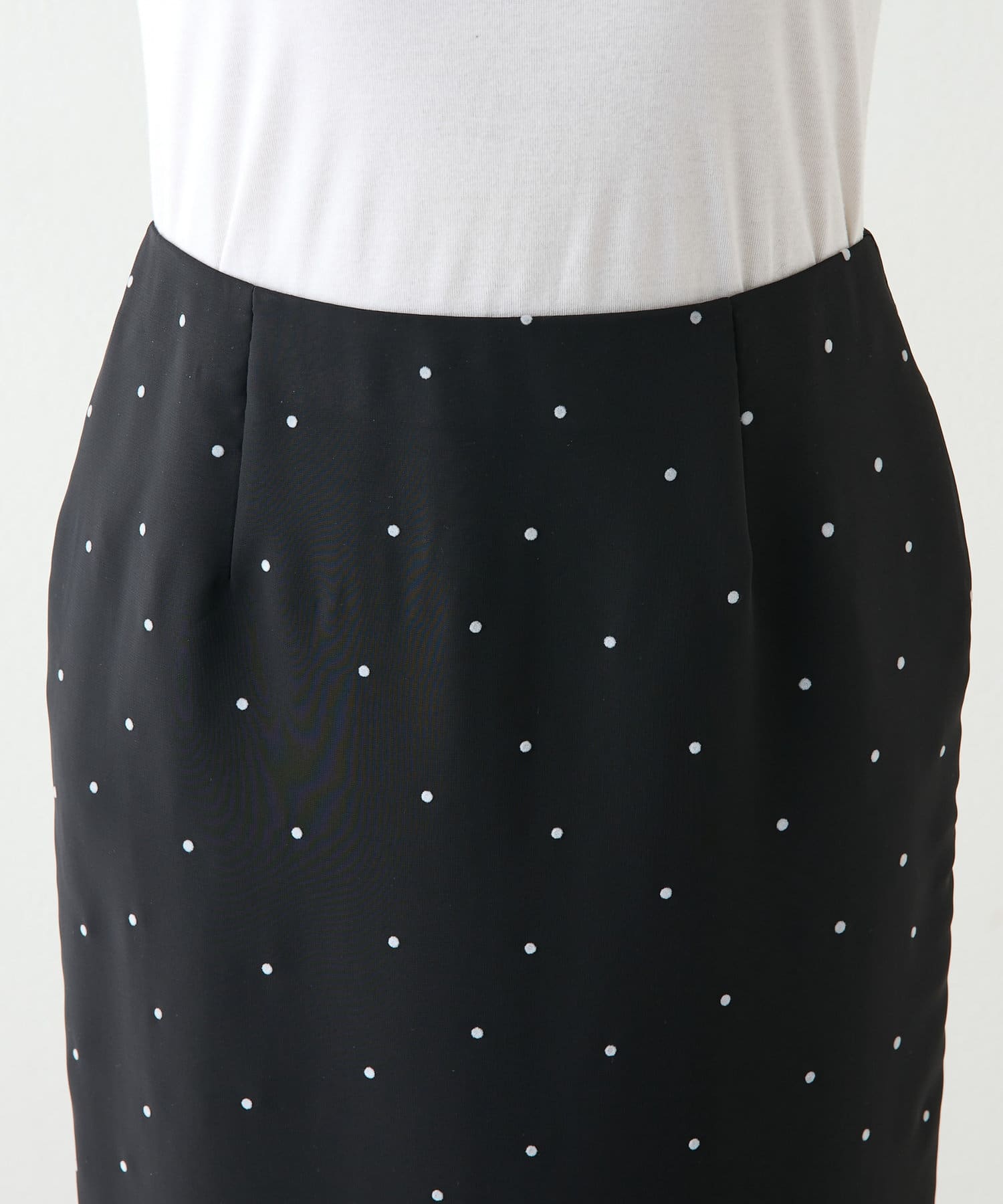 ■繊細なドット柄が大人っぽく上品な印象のタイトスカート。