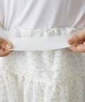 切り替えと裾部分にはソフトなワイヤーが入っているのでとてもきれいなふんわり感が出ますよ。ウエストはゴム仕様で程よくゆとりもあり、ノンストレスで着用出来ました。
