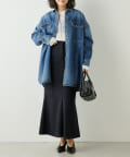 オーバーなサイズ感とシルエットがお洒落見えし、シンプルなタートルやTシャツに羽織るだけで雰囲気の出る一着。157cmが羽織って後ろの裾が膝裏までくる長さですが、シャツに着られてしまう心配はありませんでした。