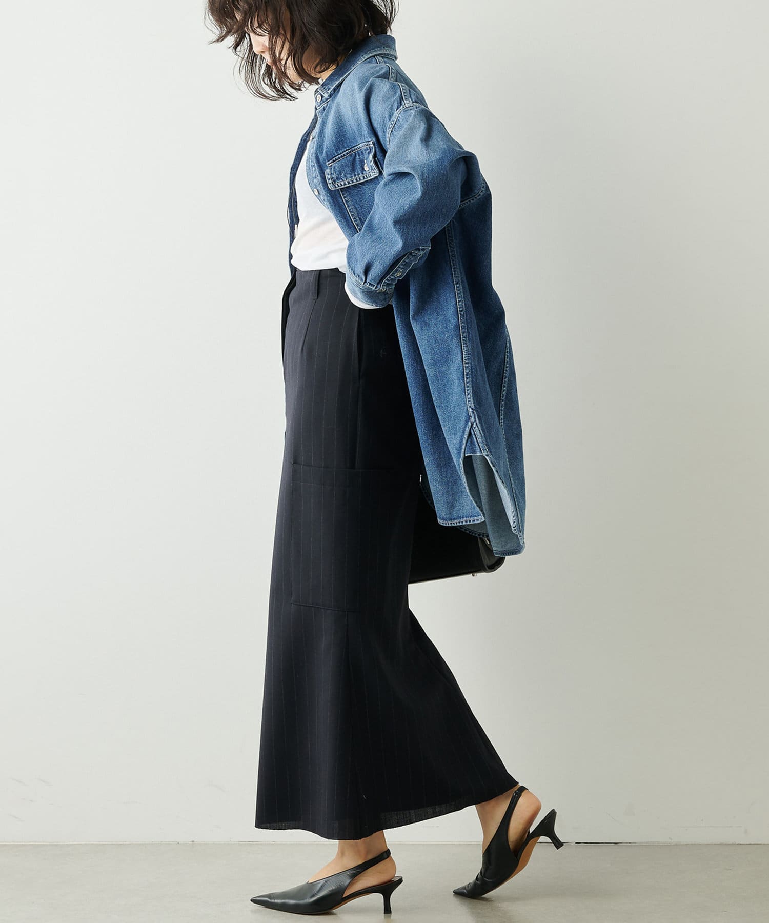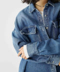 ■肩を落としたメンズライクなオーバーシルエットに、胸元の大きめのフラップポケットがアクセントに。