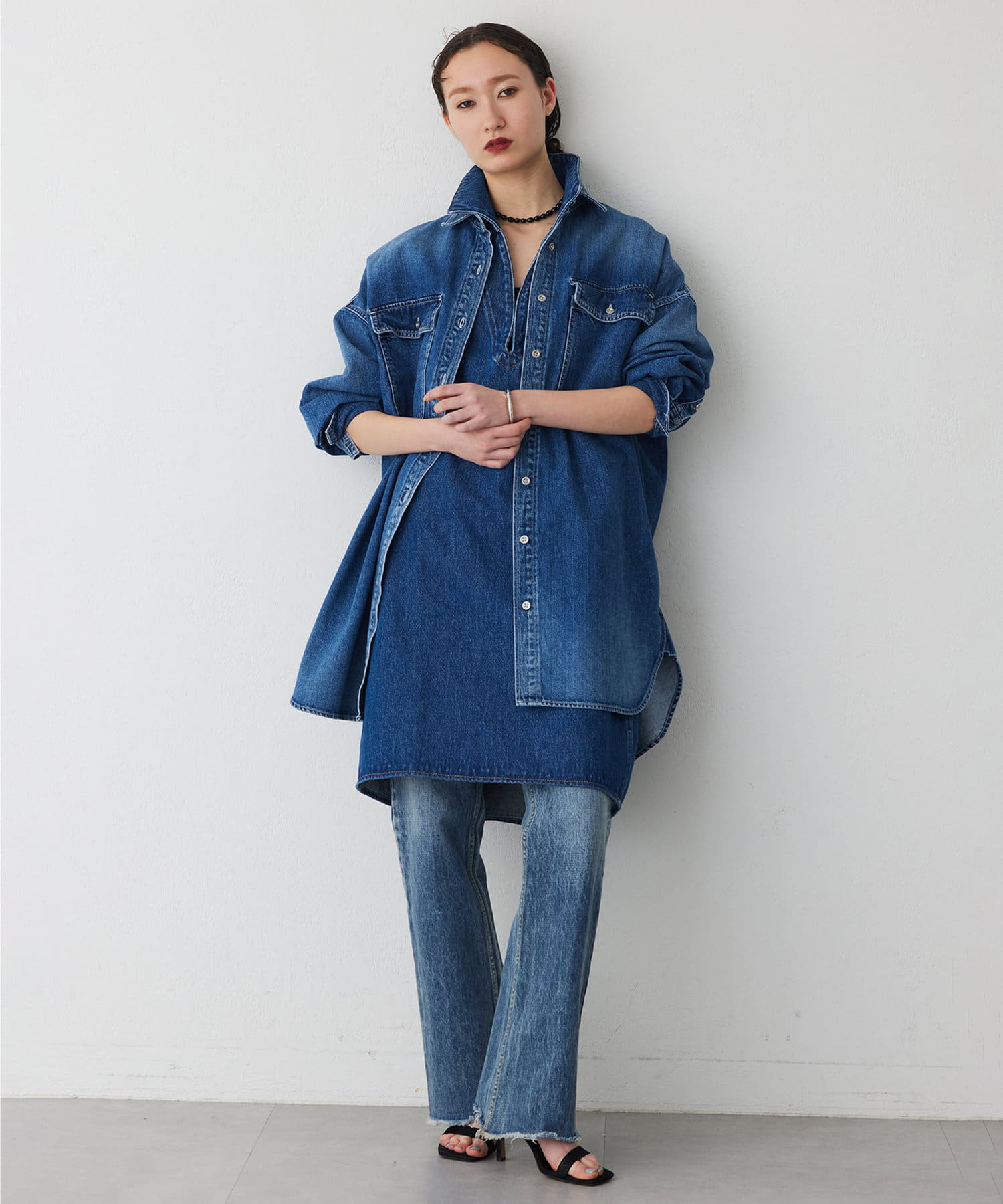 大人気のスタッフコラボシャツ。ゆったりな形が可愛く、袖のロゴがポイントです。たっぷり生地を使っていますが、軽くて着心地も◎デニム好きにはたまらない一着です。