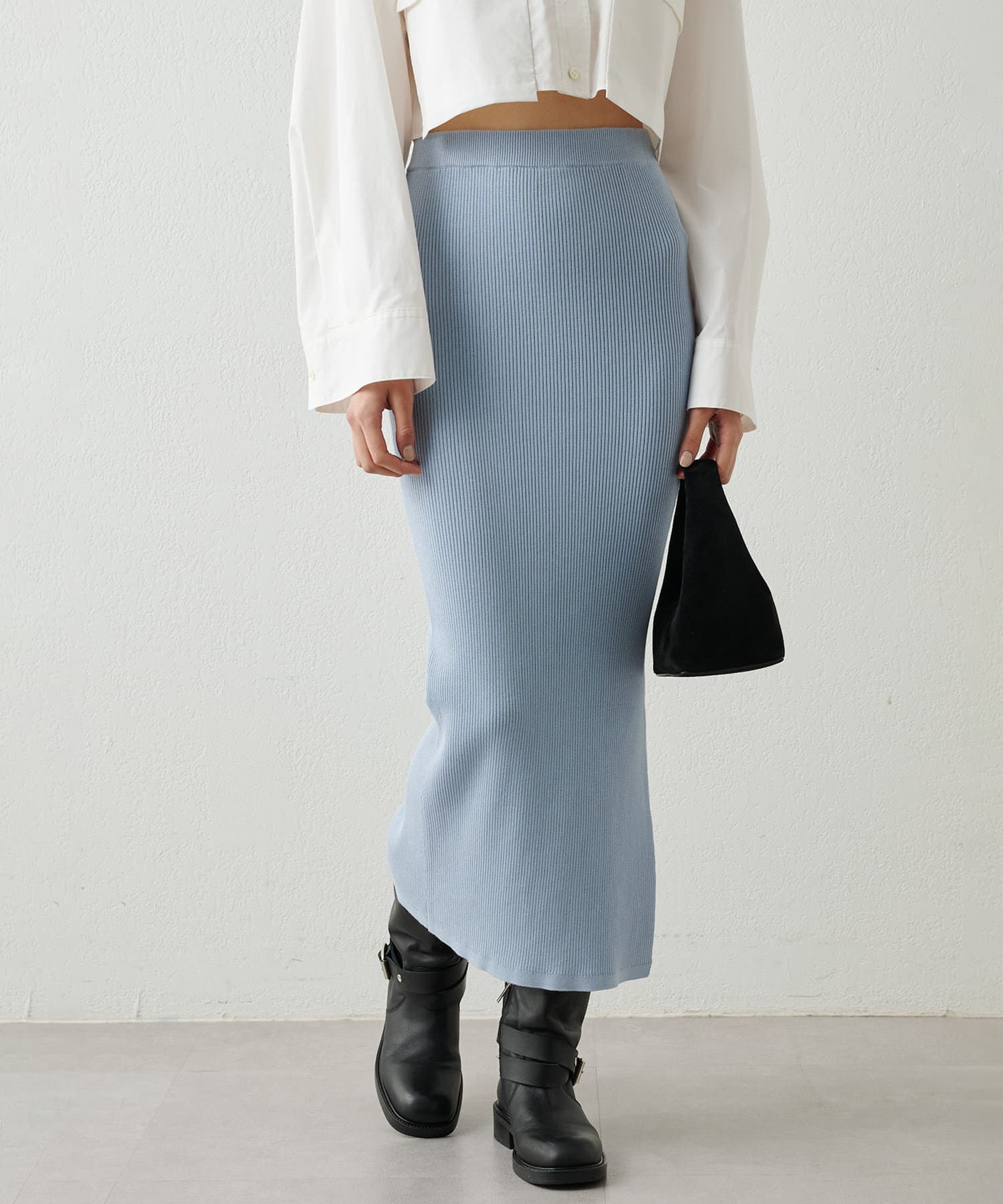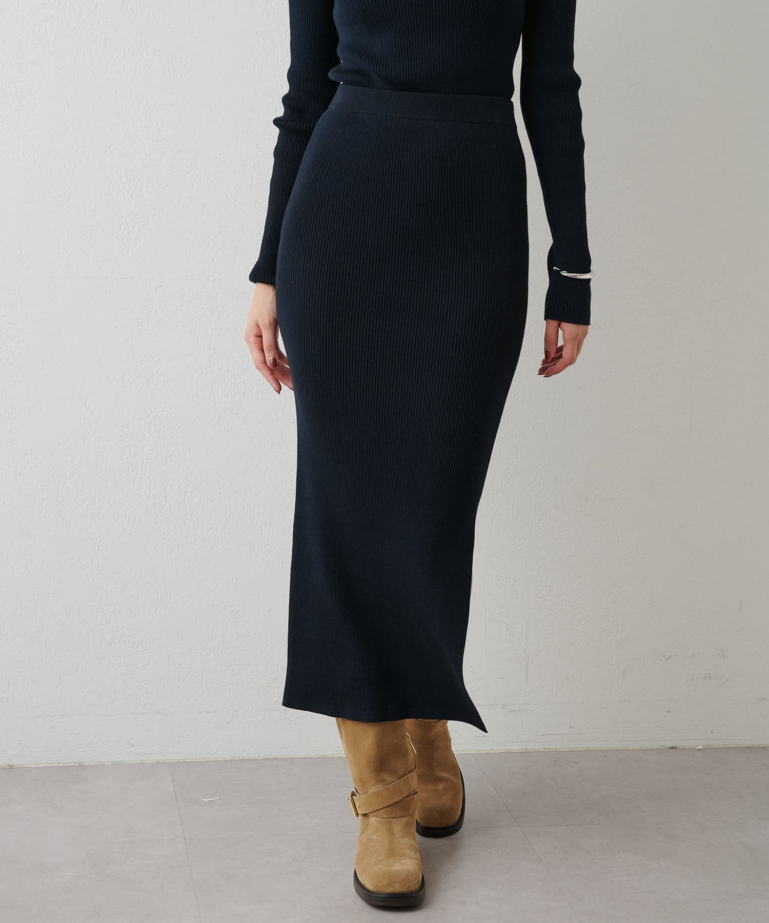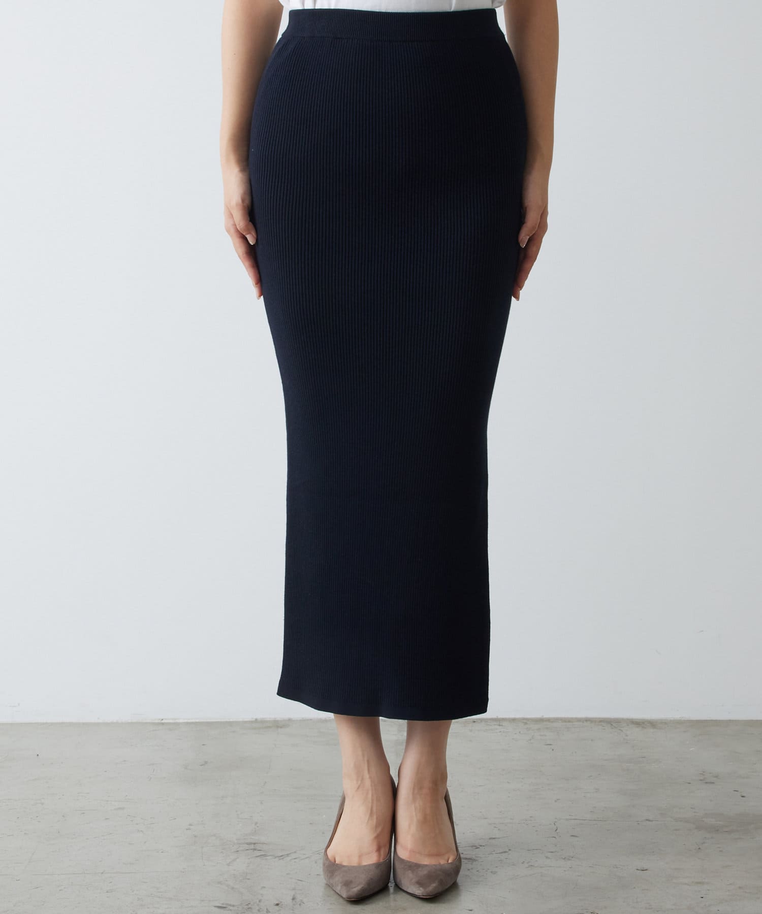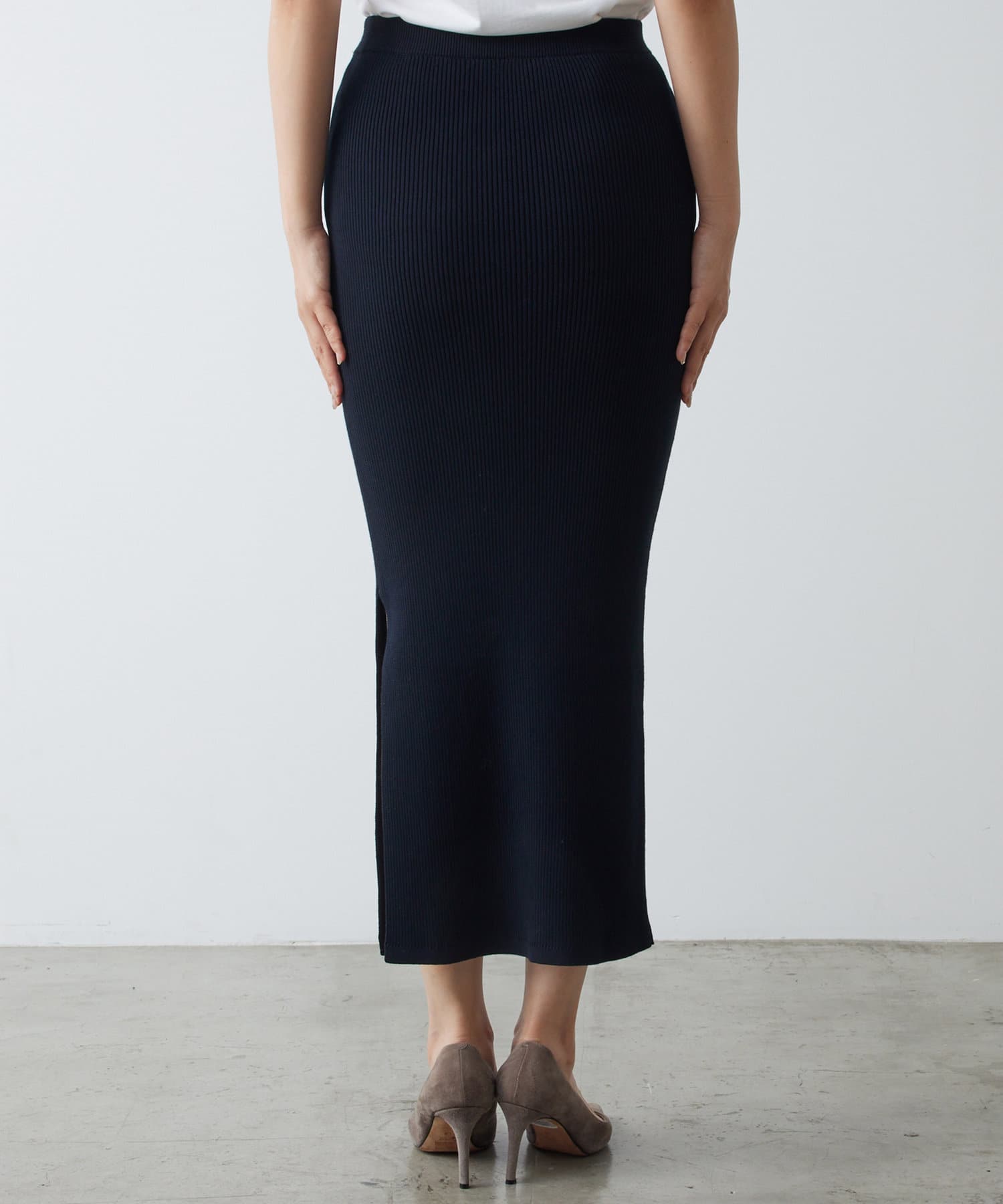 ■すっきりとしたタイトシルエットが女性らしいリブニットスカート。