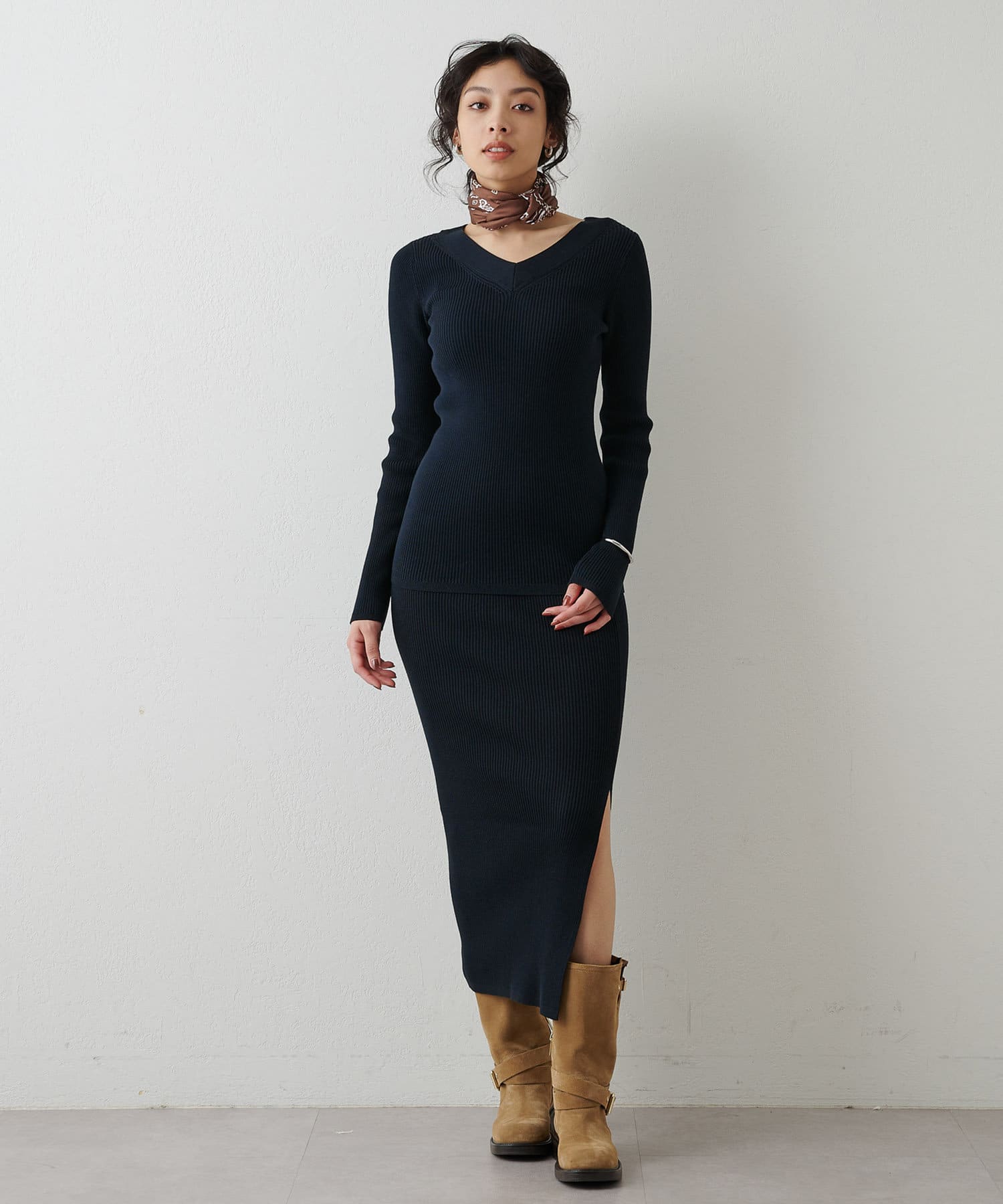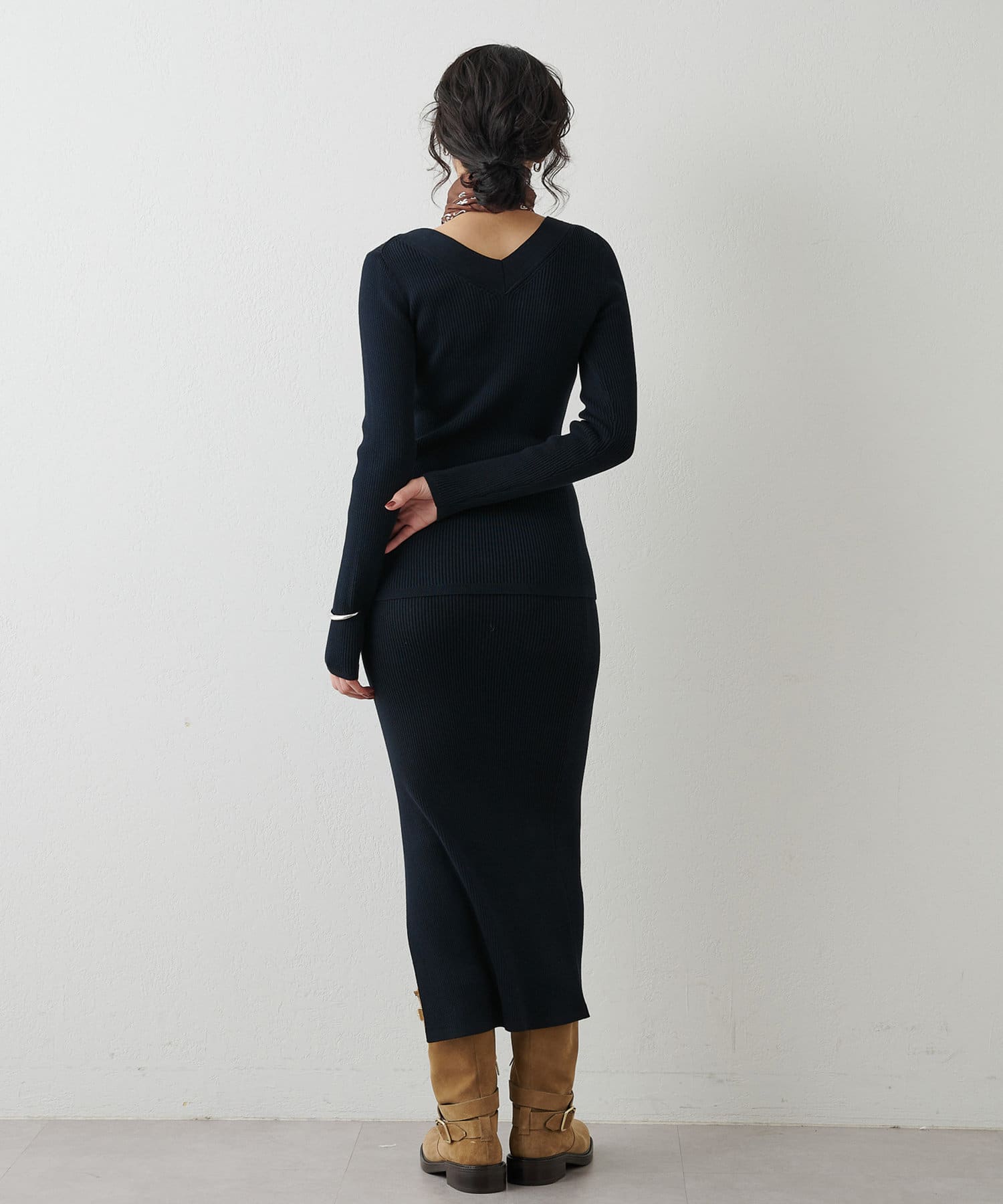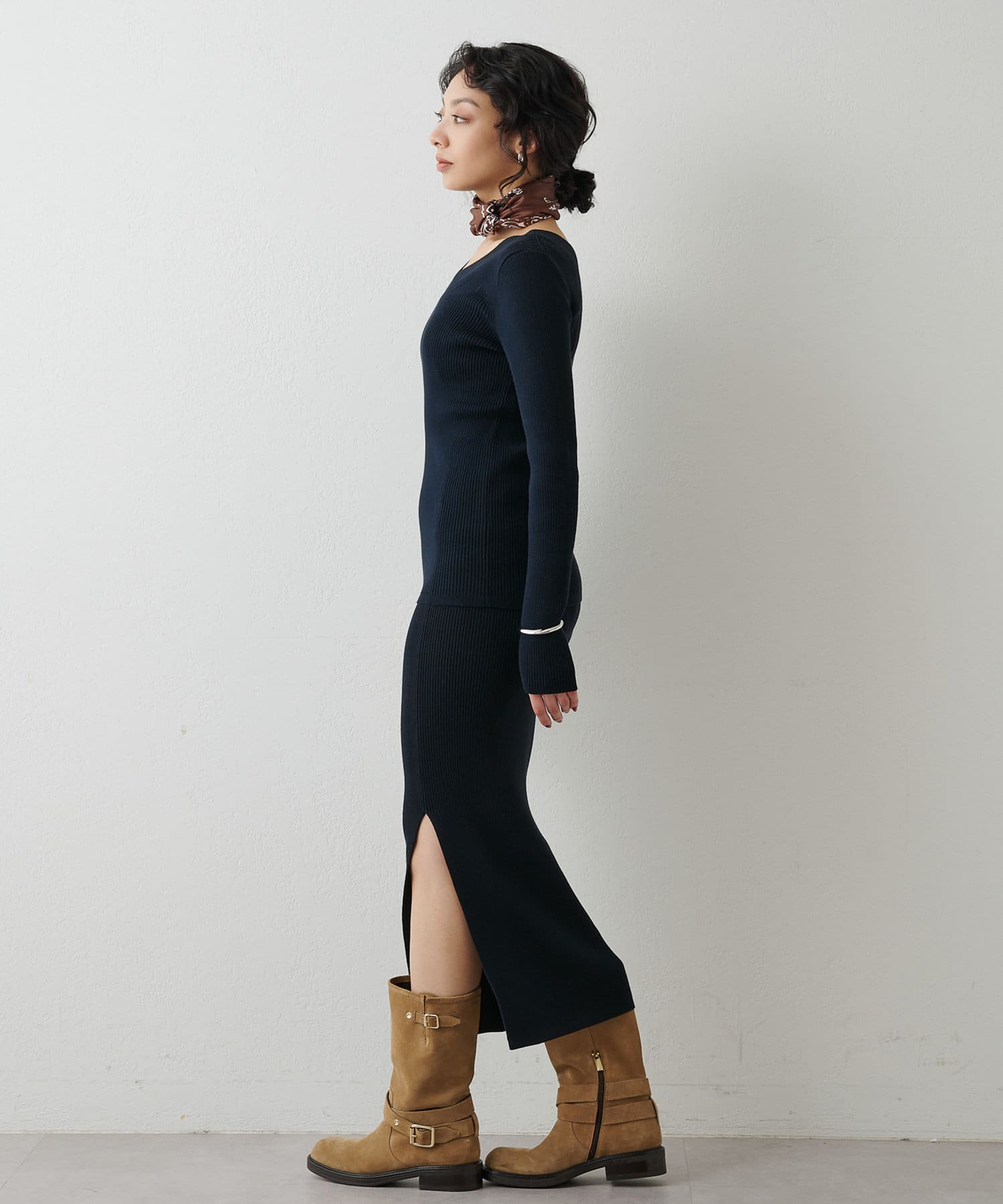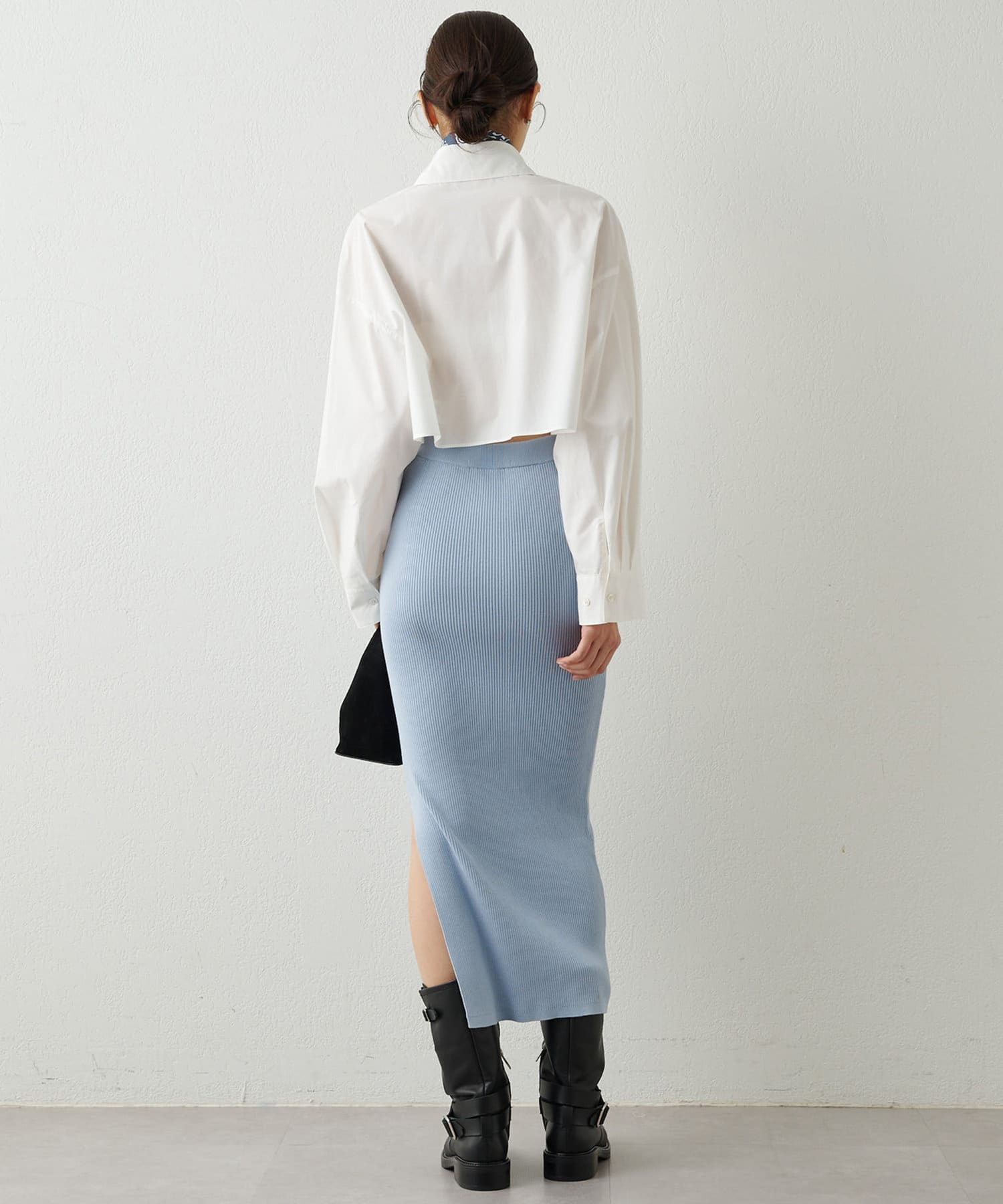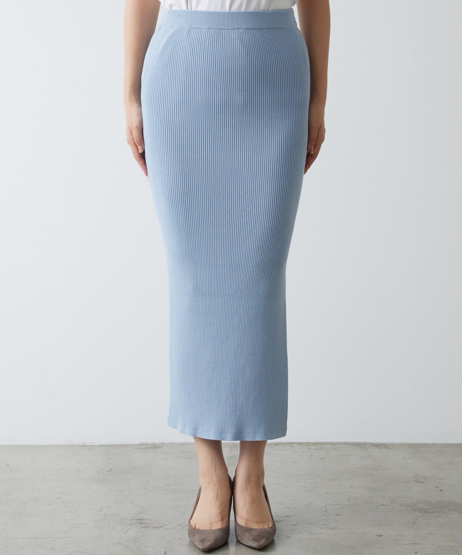 ■すっきりとしたタイトシルエットが女性らしいリブニットスカート。