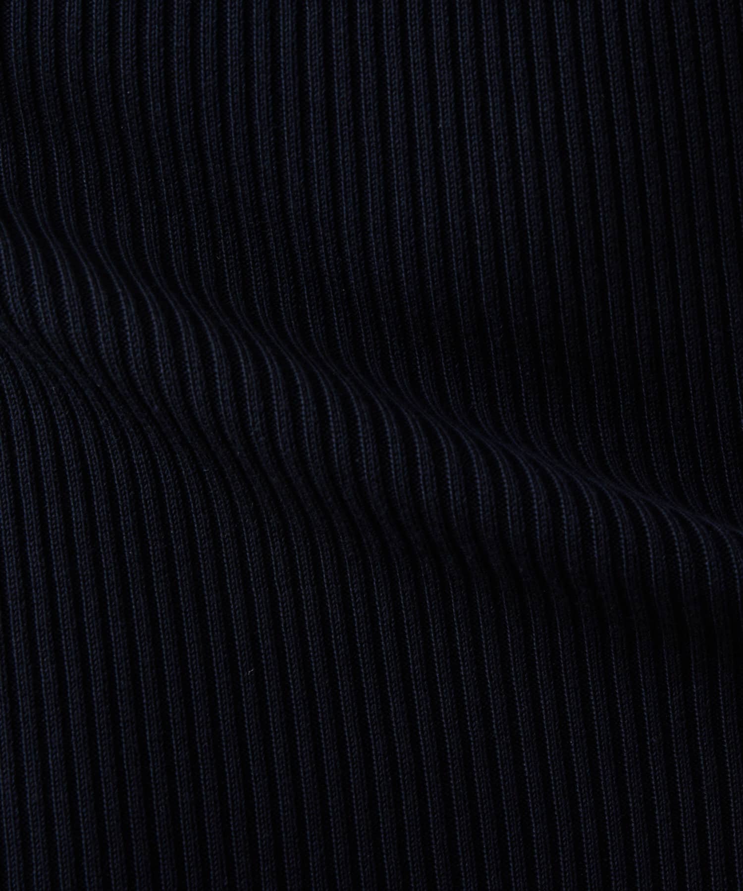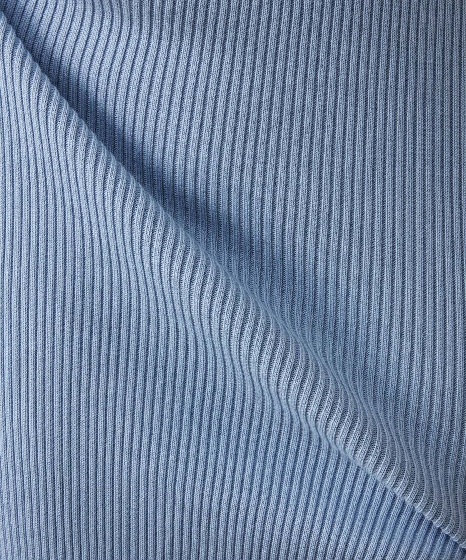 超長綿とSUPN SILKを混紡した、光沢感が出て肌触りが良く、清涼感があり通気性も良いリブニット。