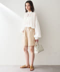 短すぎない大人のショートパンツ。ニットやジャケット合わせなど、オシャレな着こなしを楽しめる一枚。同素材とのセットアップ着用がシルエットが美しいのでオススメです。