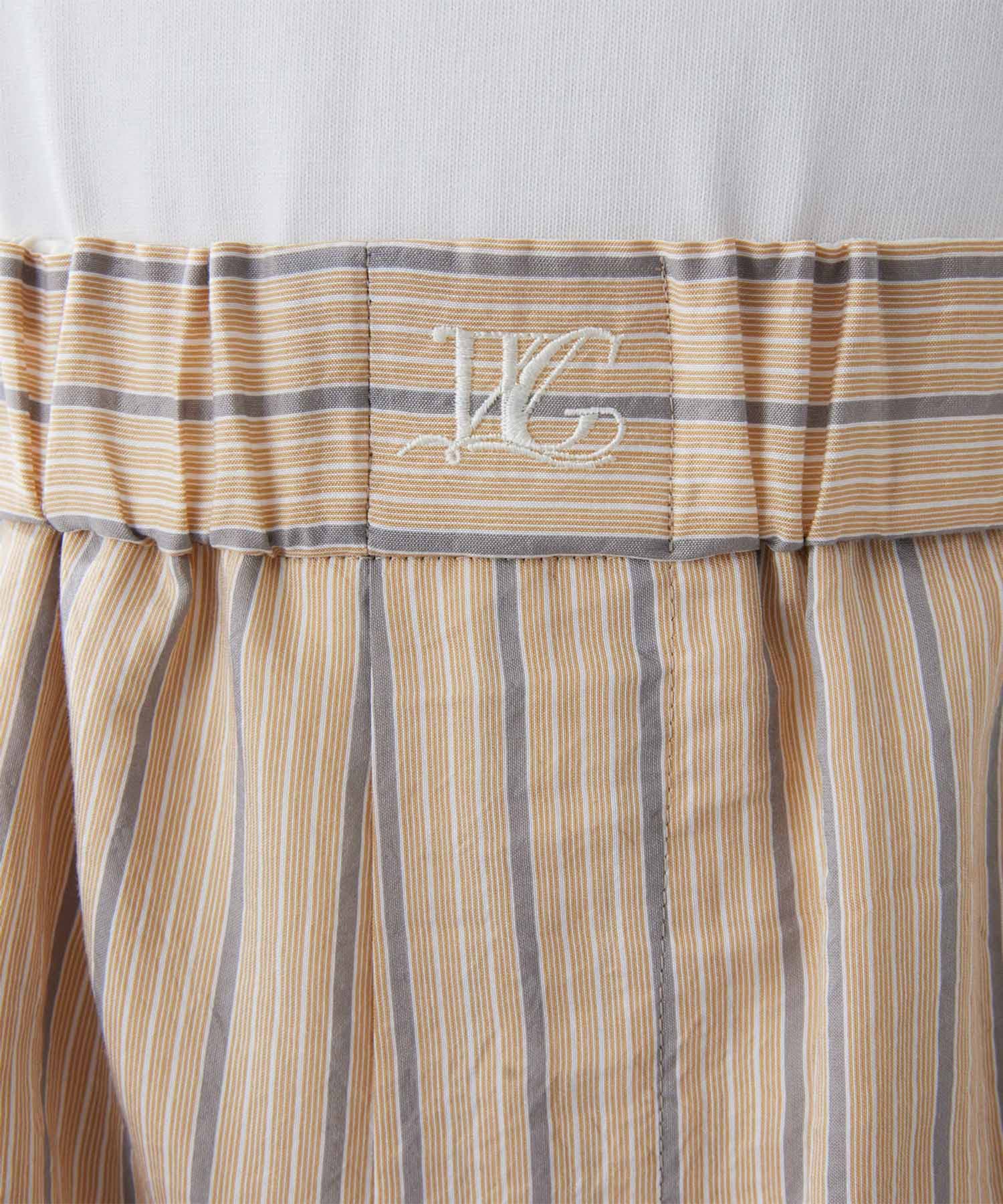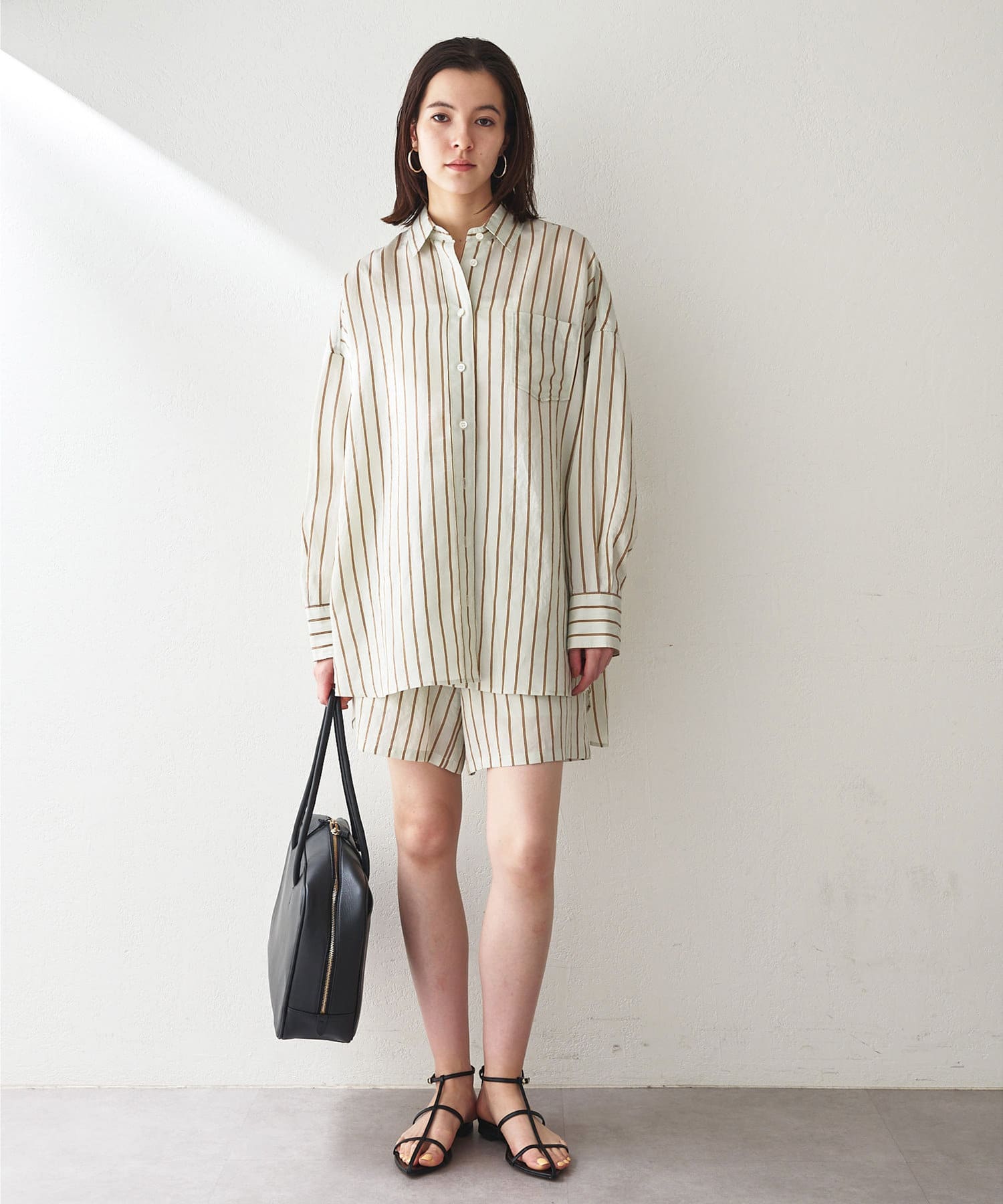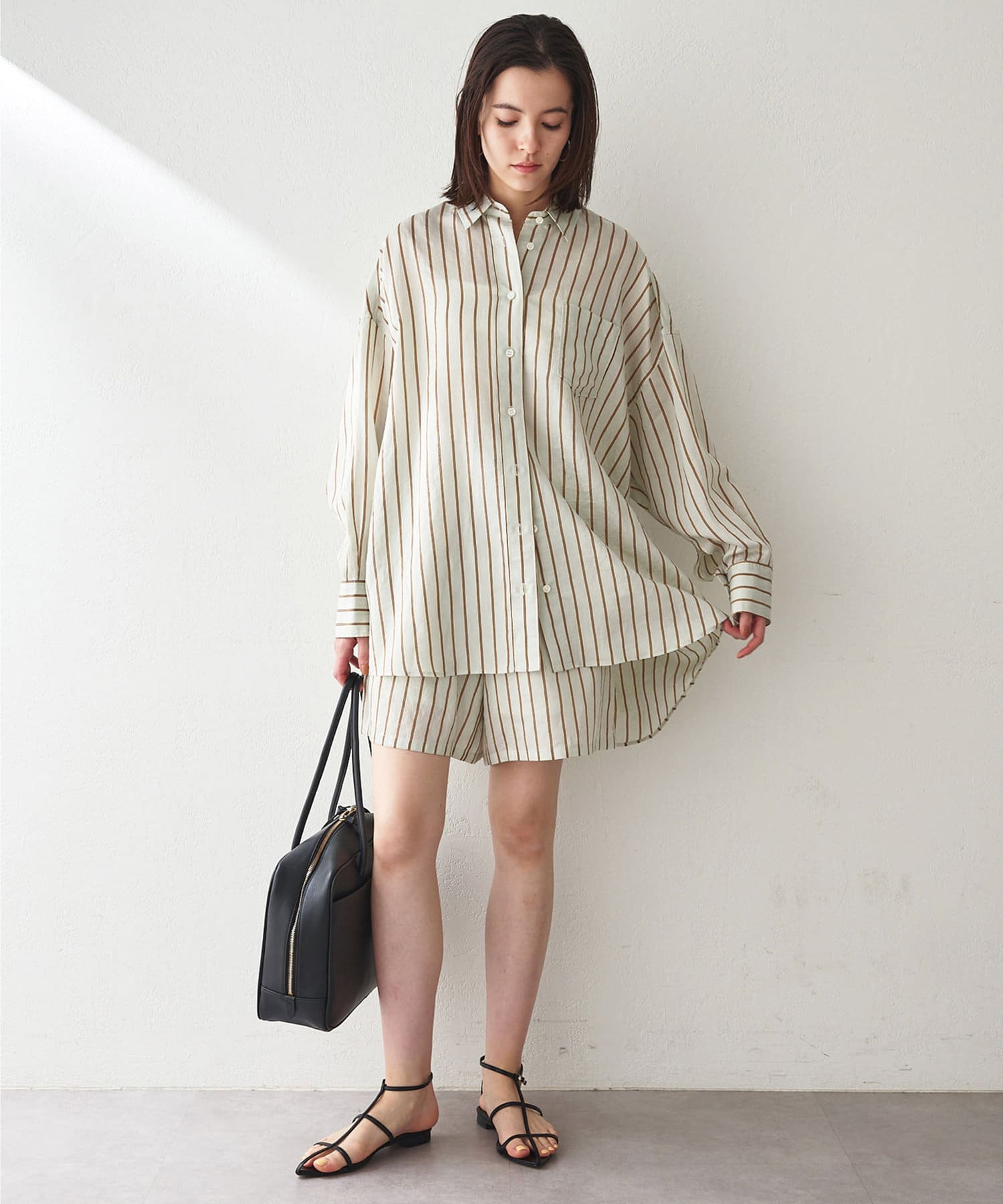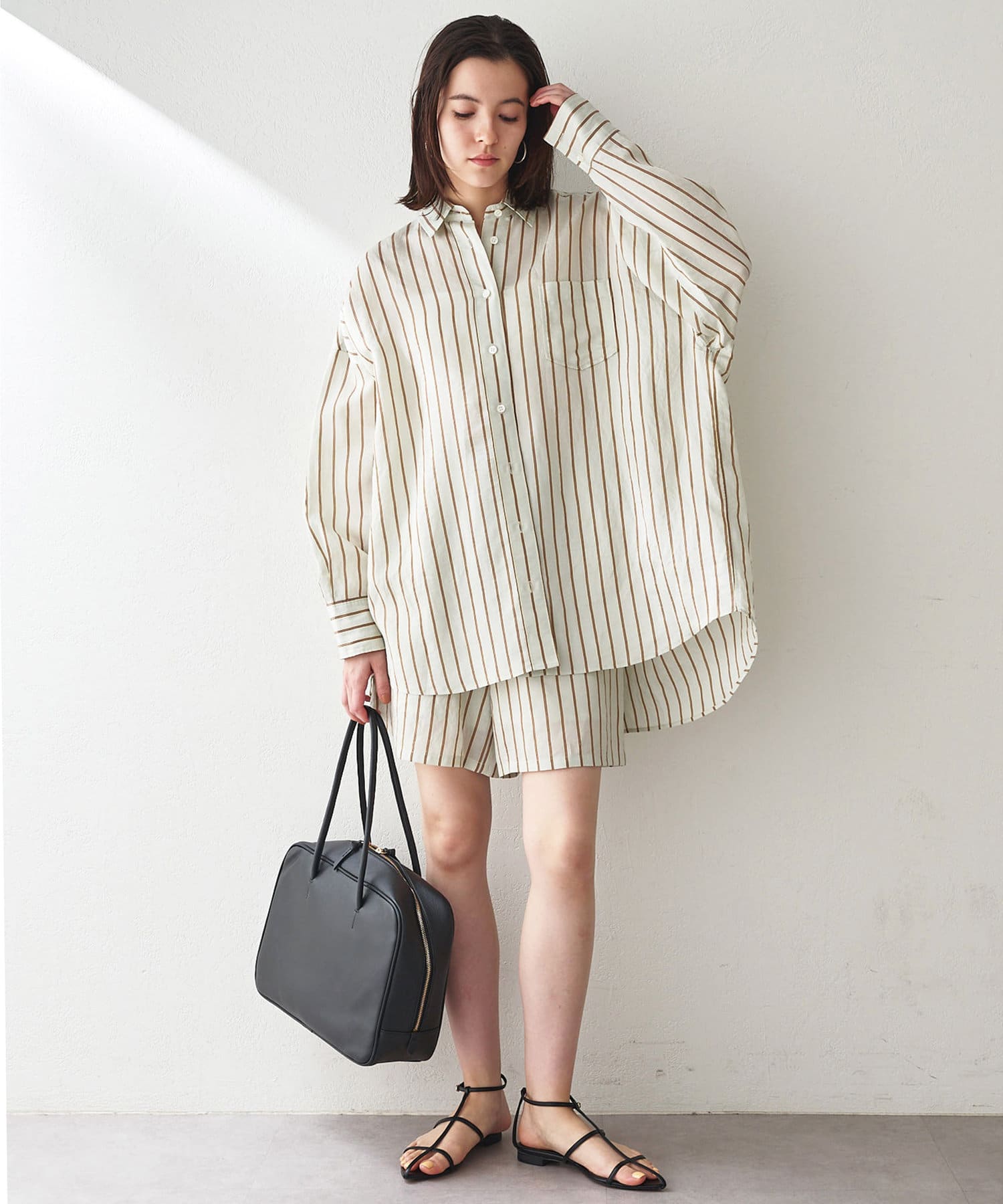 ■同素材のストライプシャツ(ブランド品番:WGZ1041104A0003)とのセットアップスタイルもおすすめ。