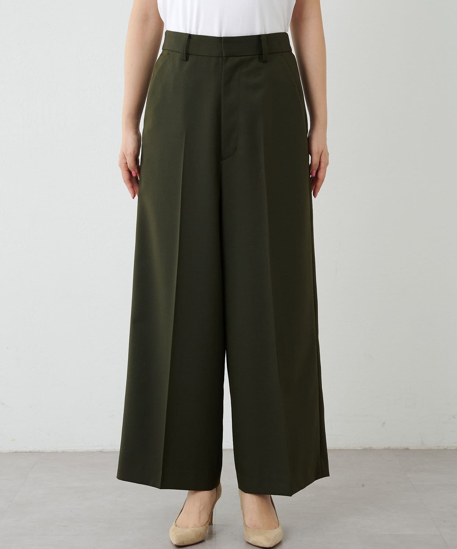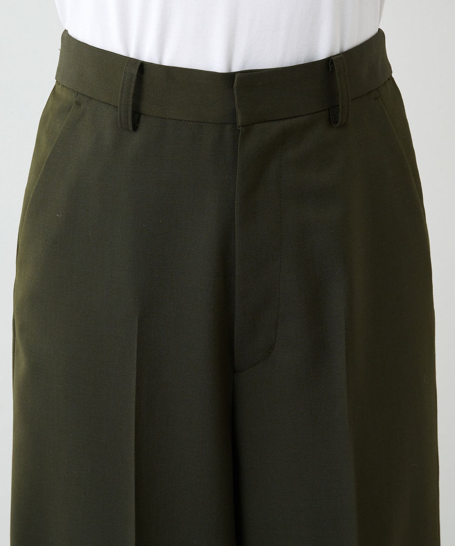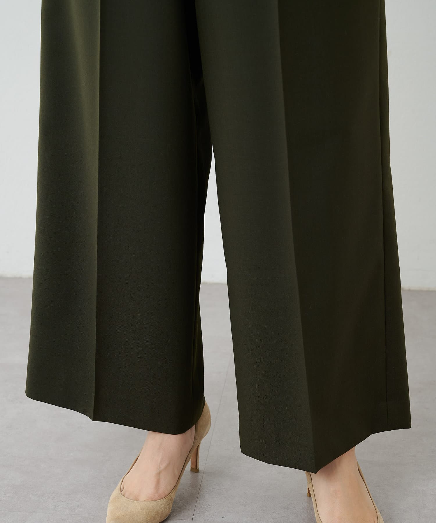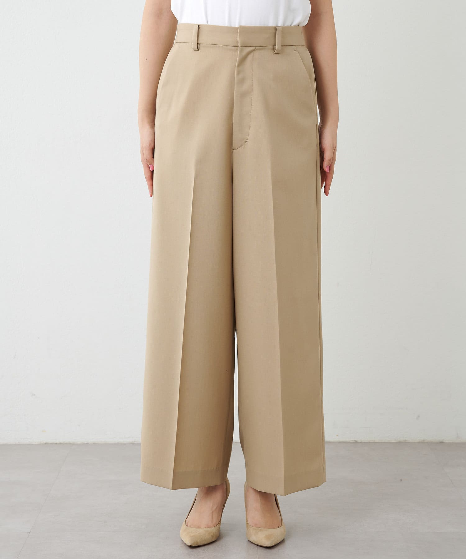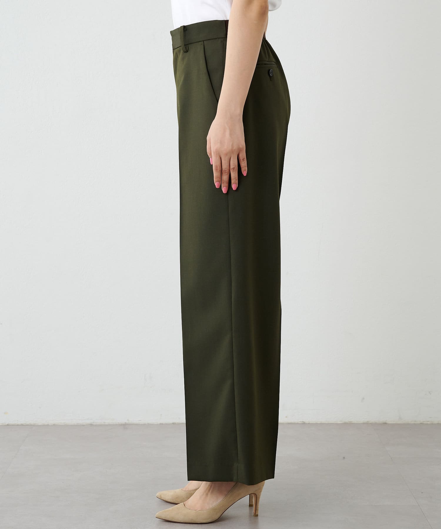 ■防シワ加工を施したウールポリエステル素材を使用したストレートパンツ。