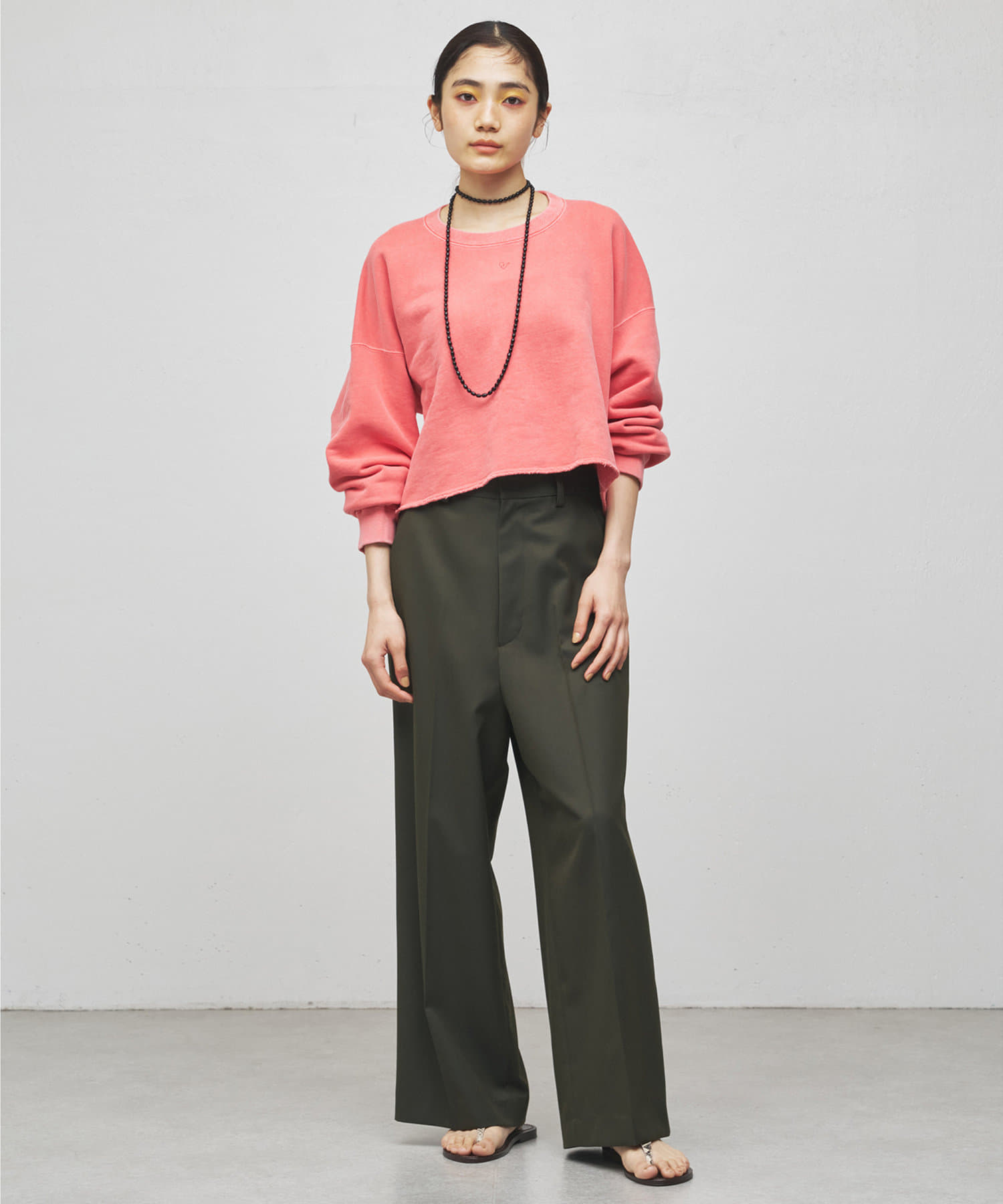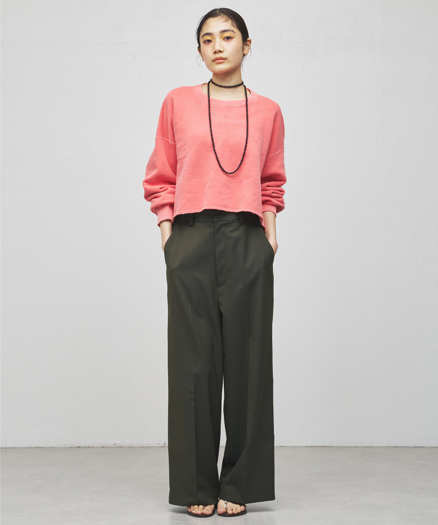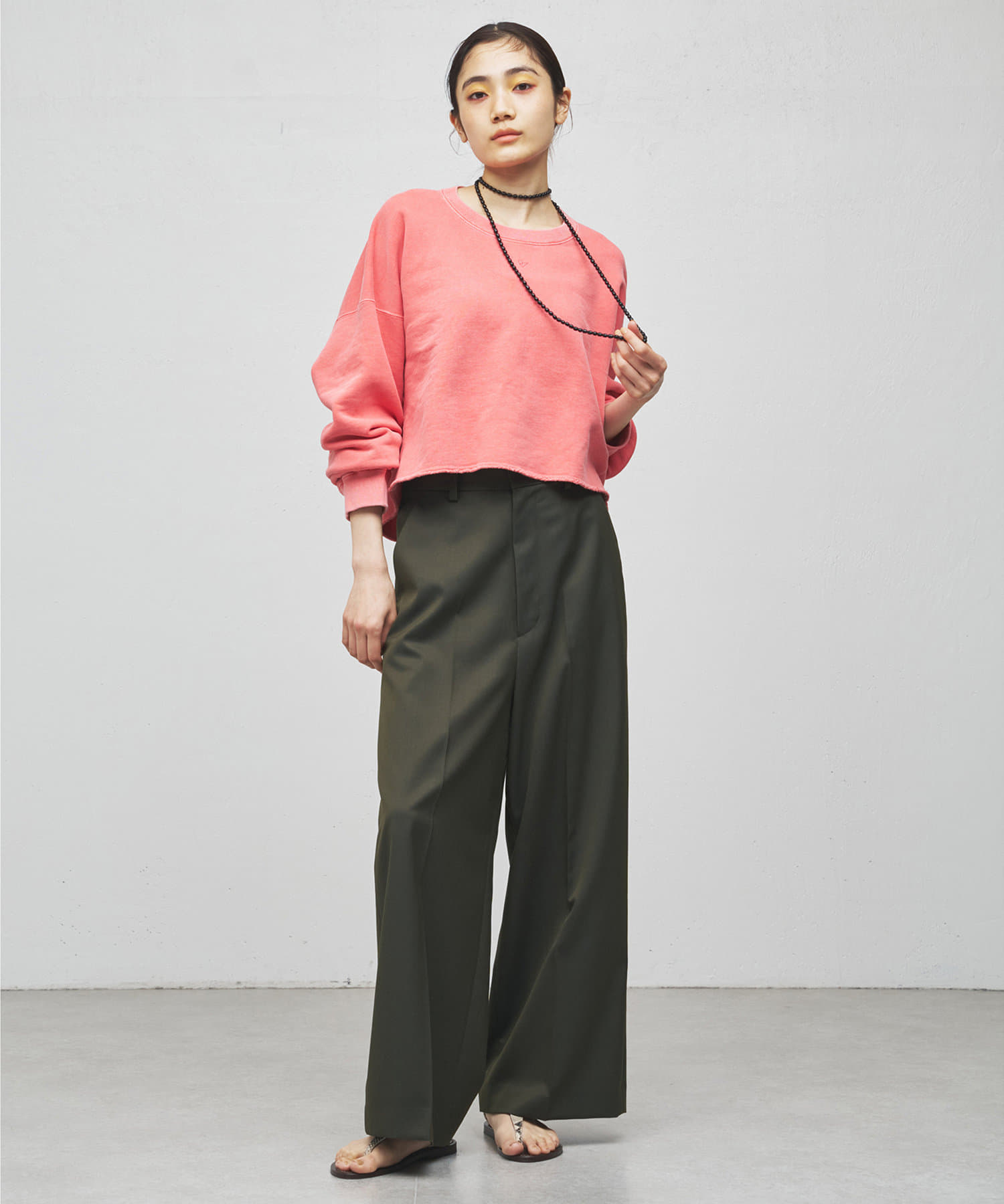股下が長めのシルエットがお洒落なパンツ。タックがないので横膨れせず綺麗に穿ける。店頭でもとても人気のパンツです。購入の決め手は皆さん穿き心地の良さに魅了されています。