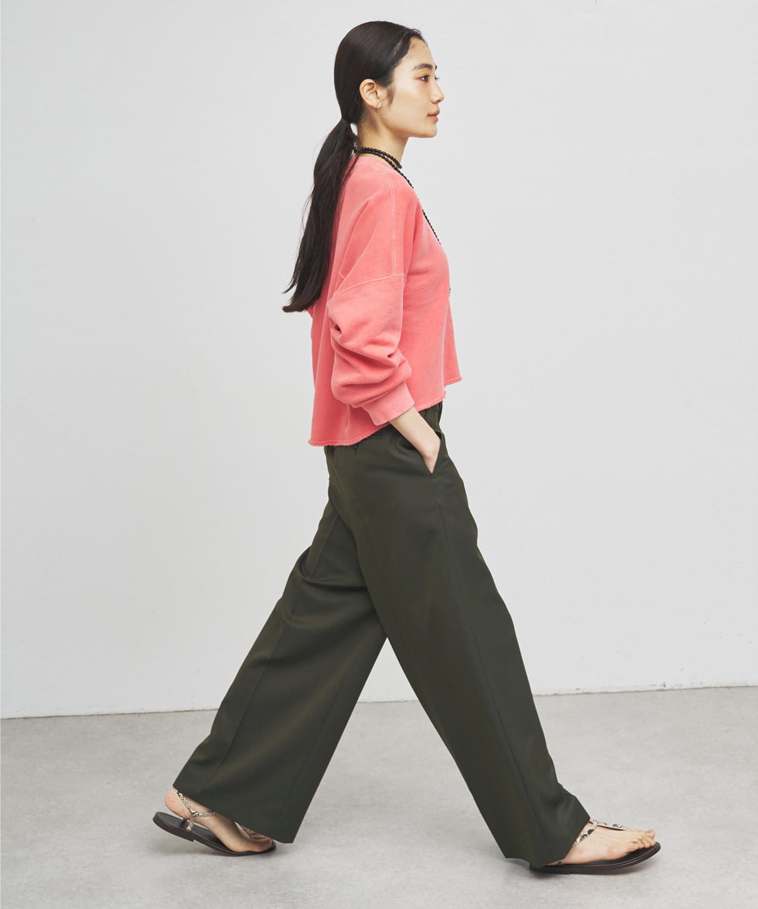 ■ウエストゴムの伸縮性を生かして、ヒップハングのスタイルを楽しむのも◎。