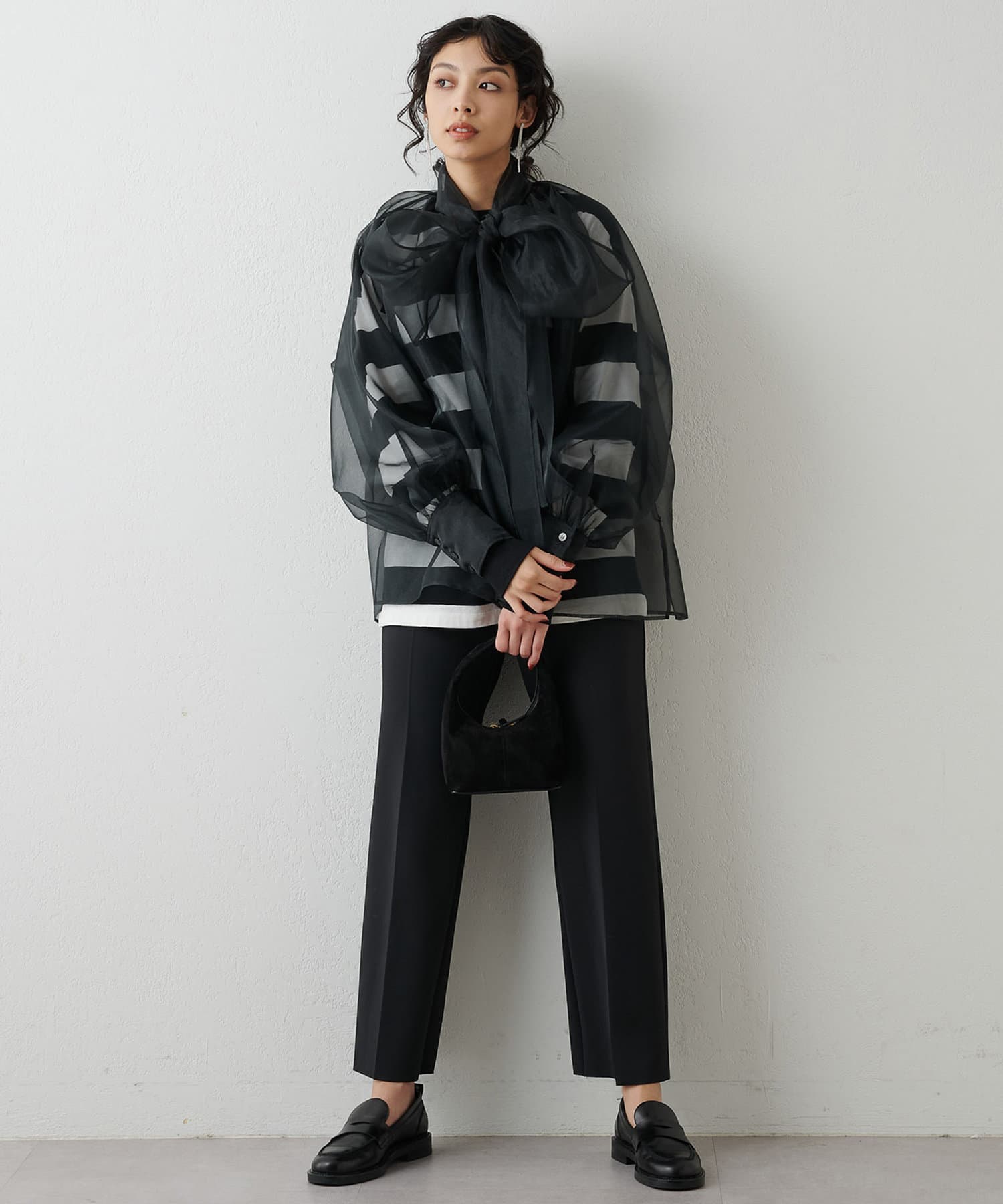 ■大きなリボンタイが特徴的なシアーボウタイブラウス。