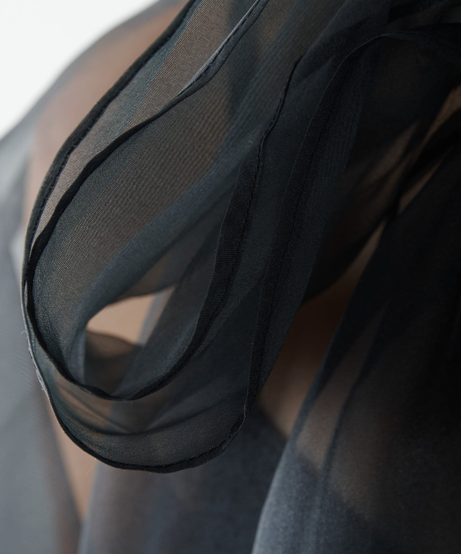 ■大胆に透けるオーガンジーを使用し、立体的なボウタイの存在感が際立つデザイン。
