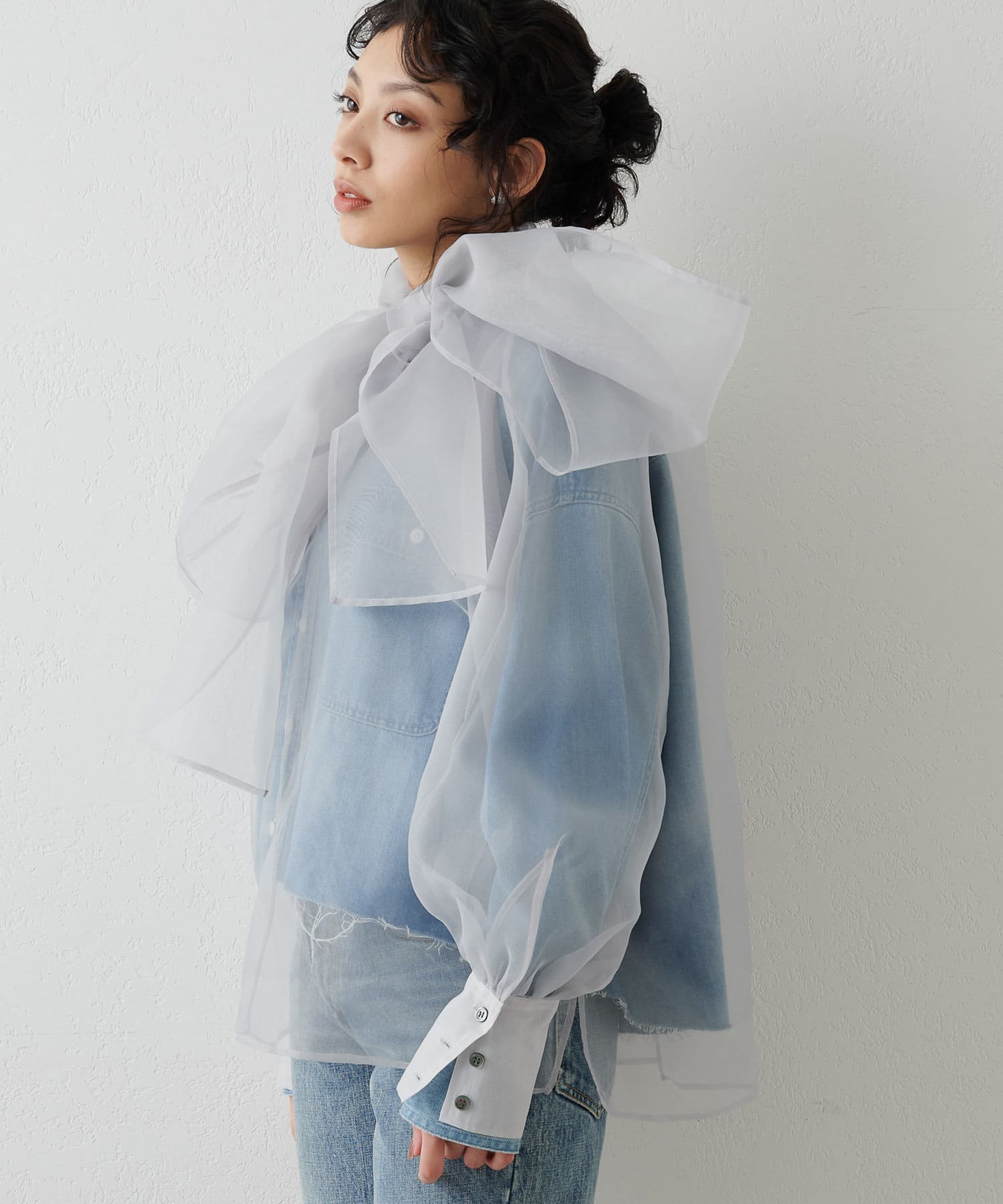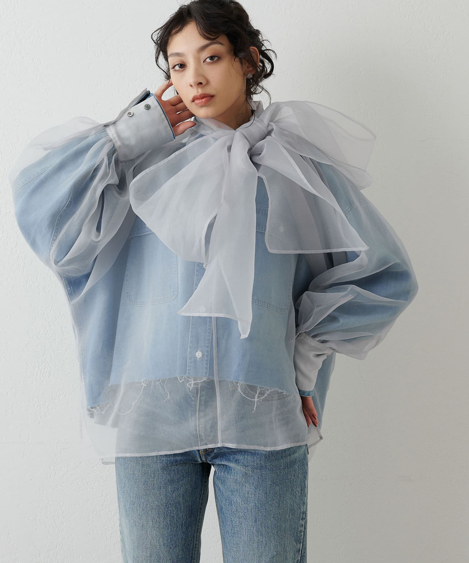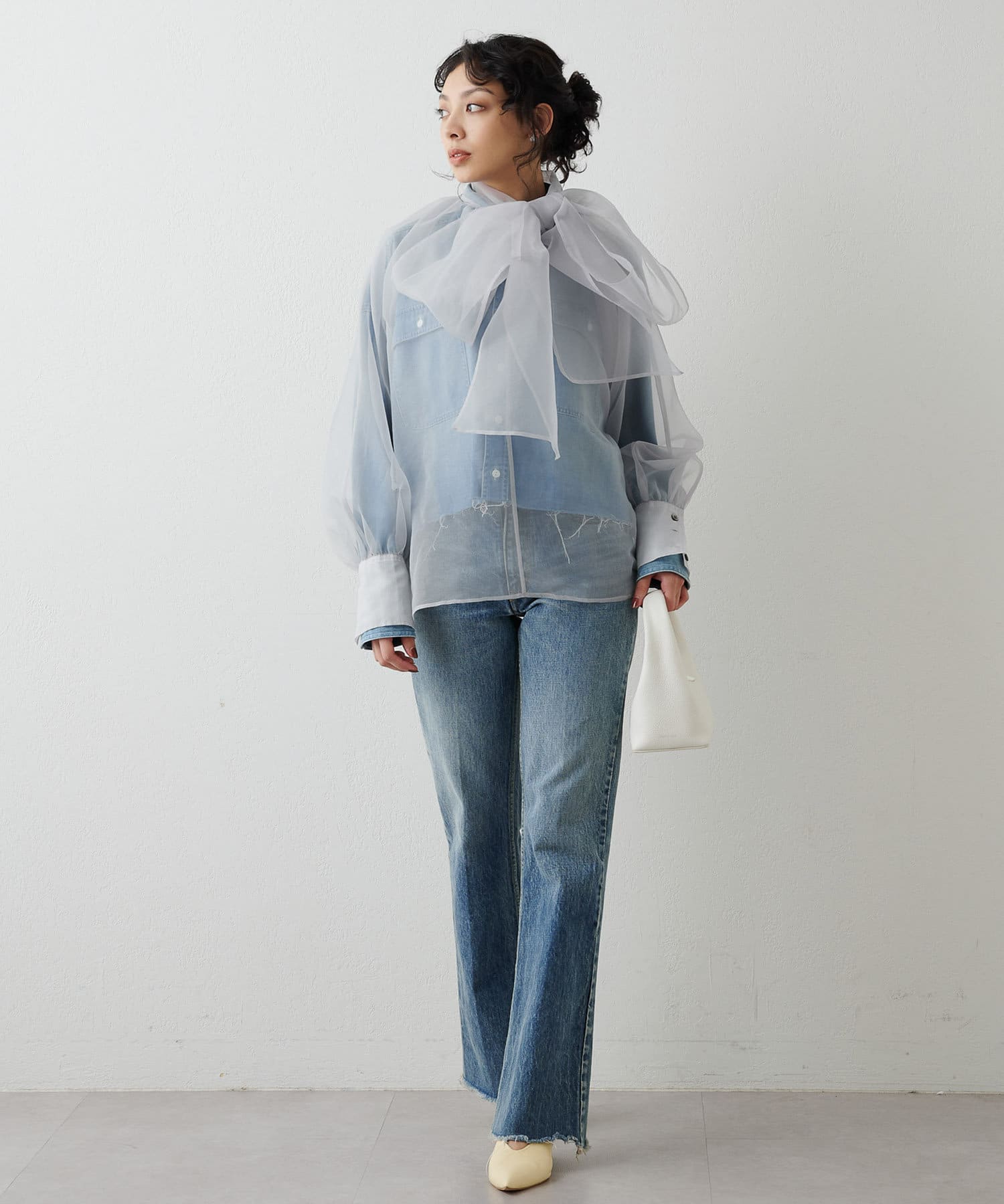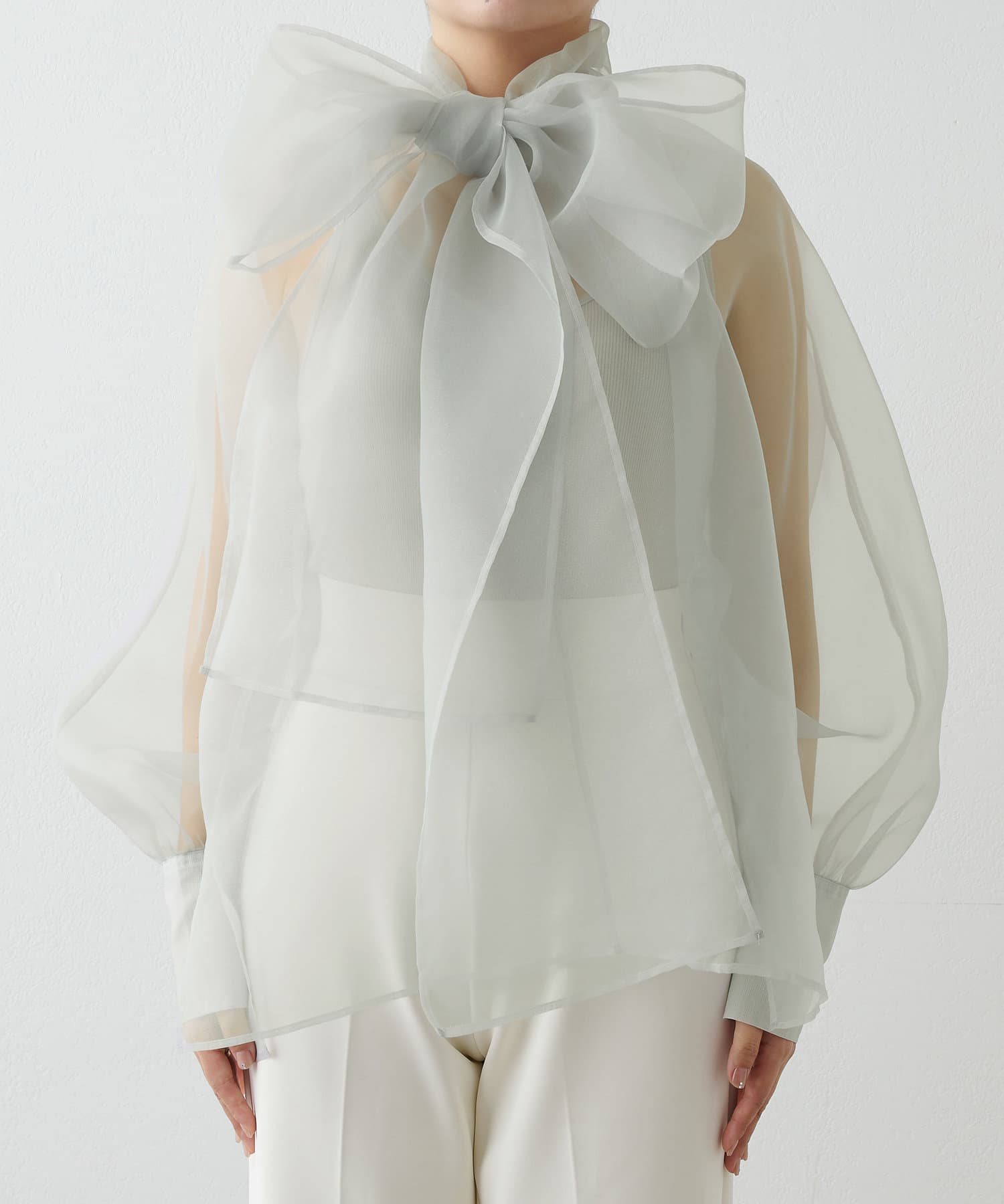 Whim Gazette(ウィム ガゼット) オーガンジーボウブラウス
