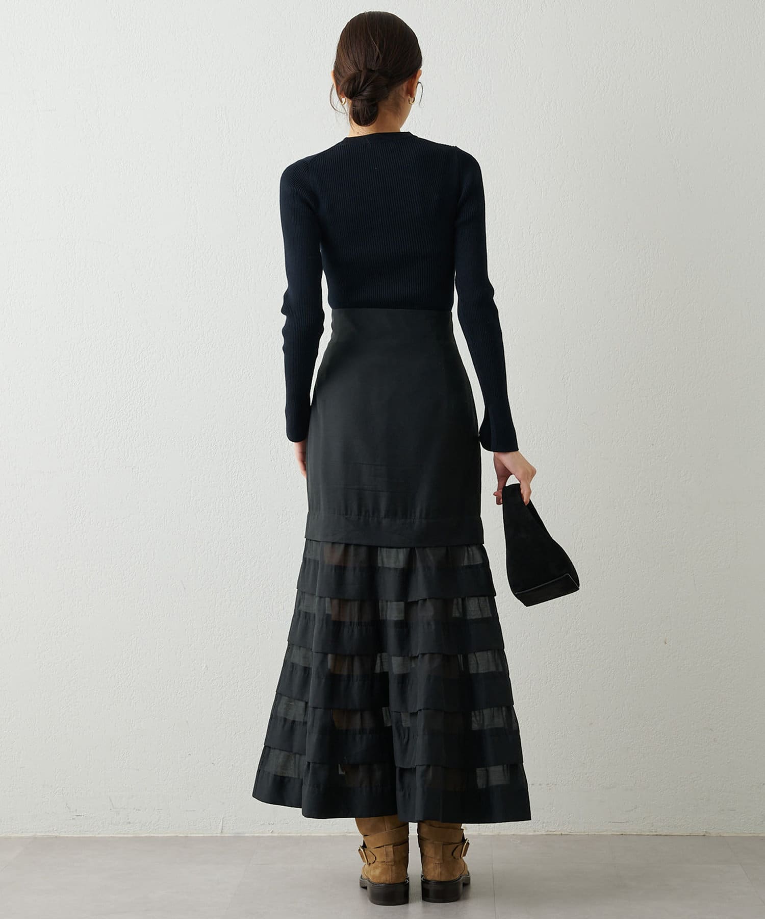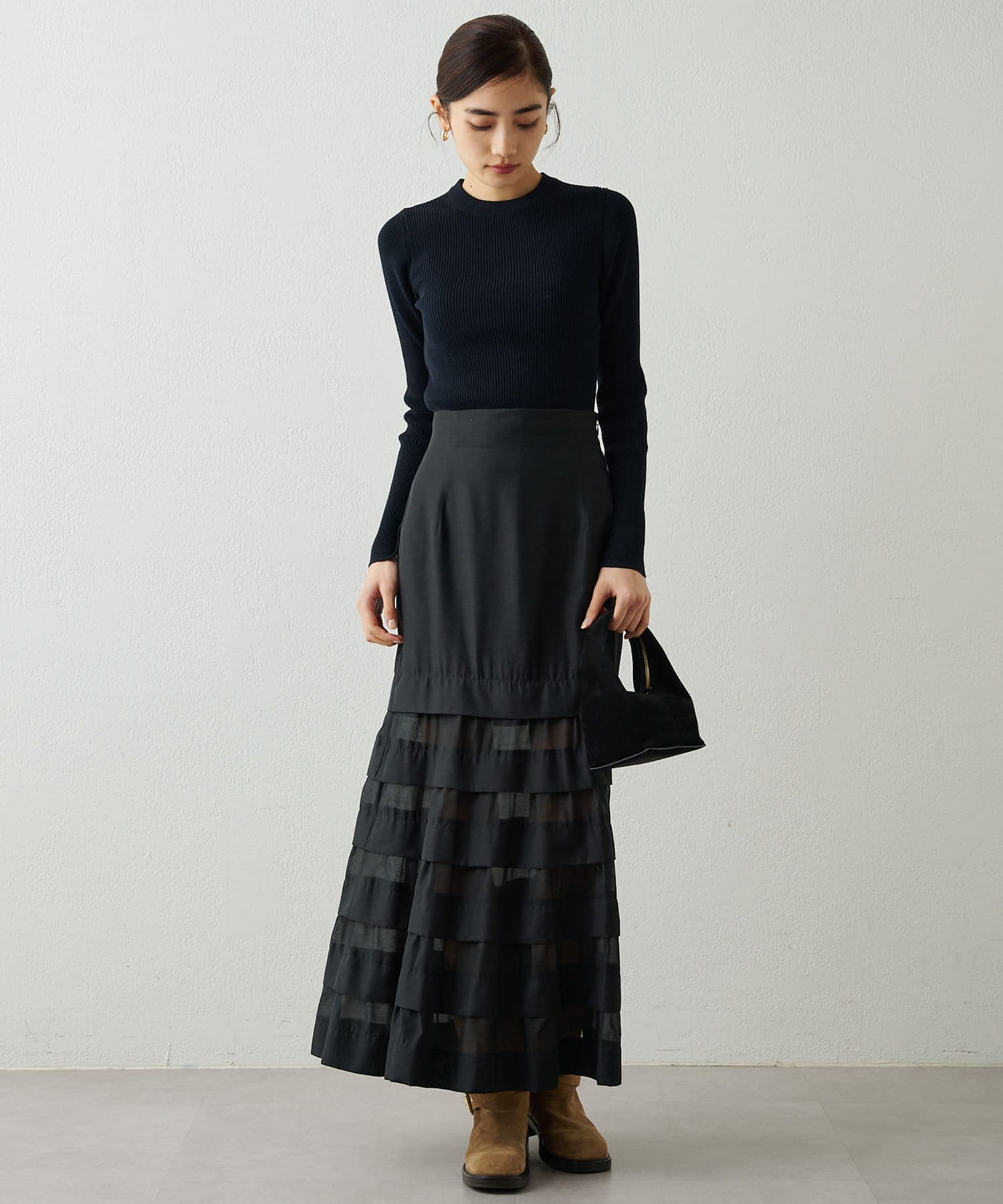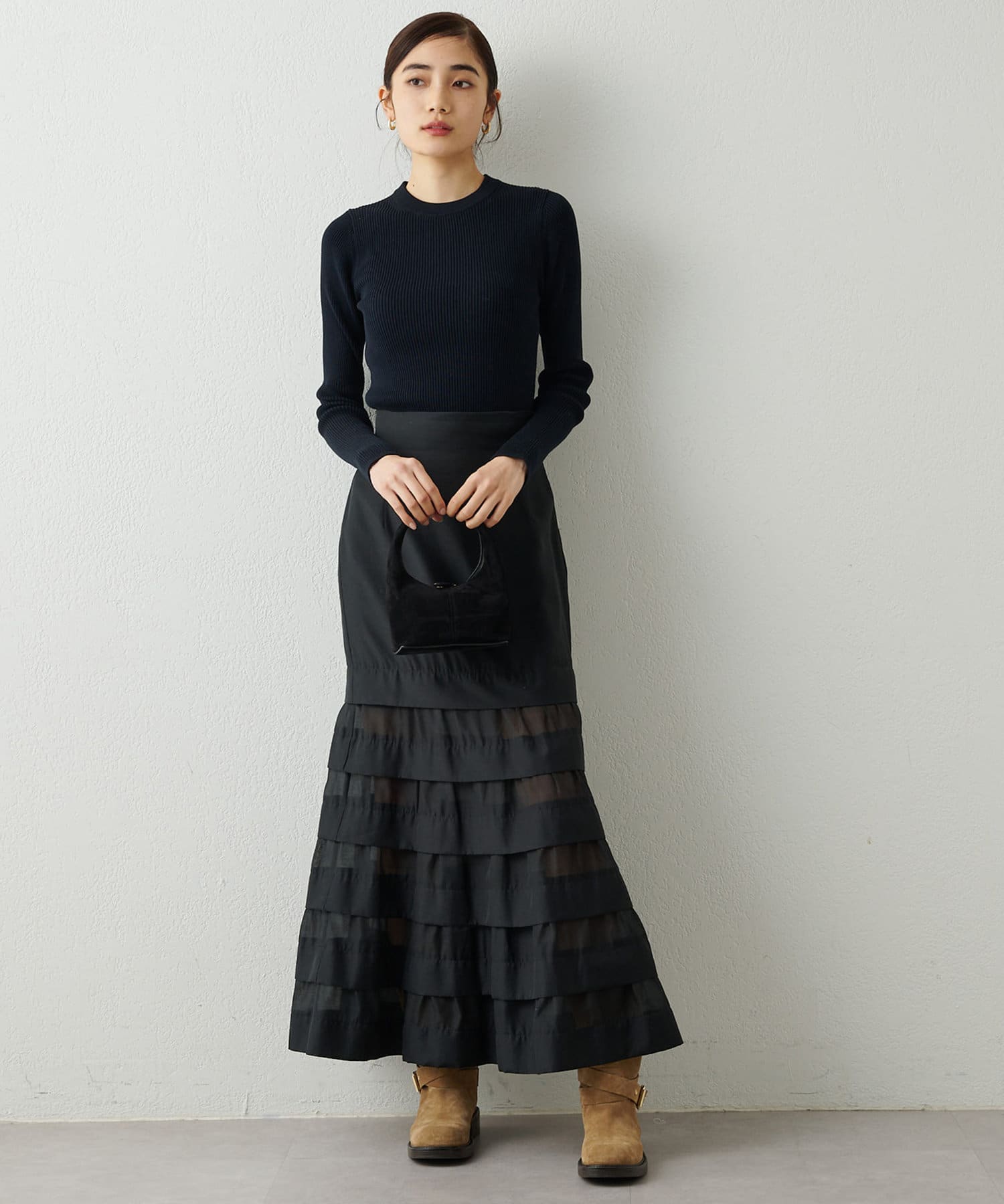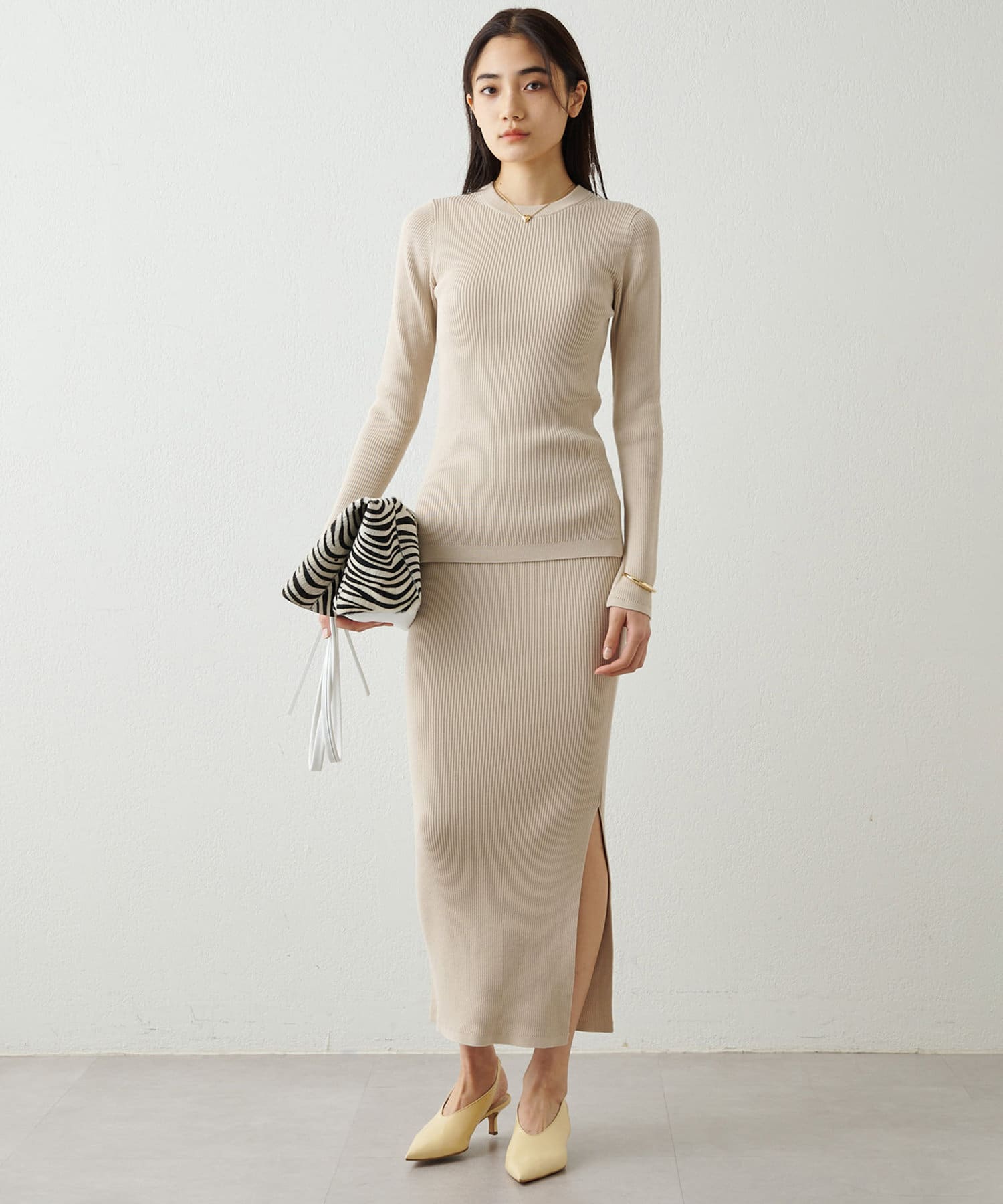 ■同素材のリブニットスカート(ブランド品番:WGZ1041101A0008)とのセットアップもおすすめ。