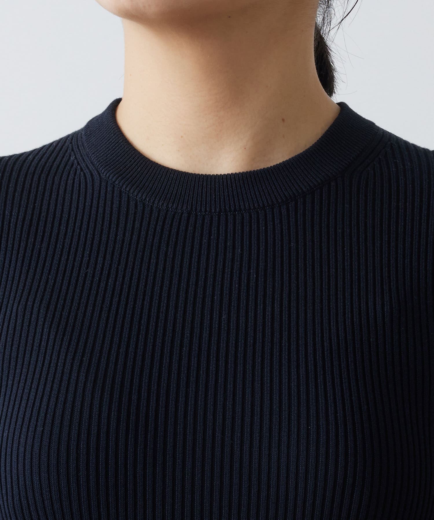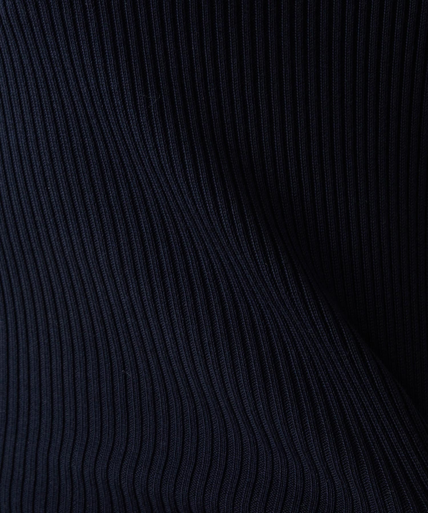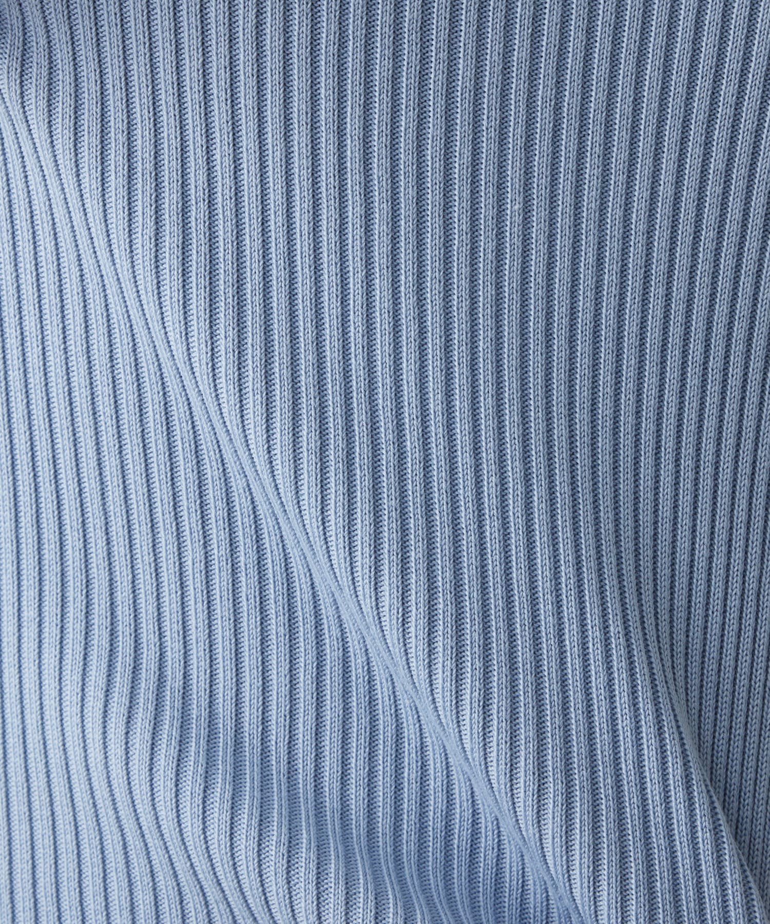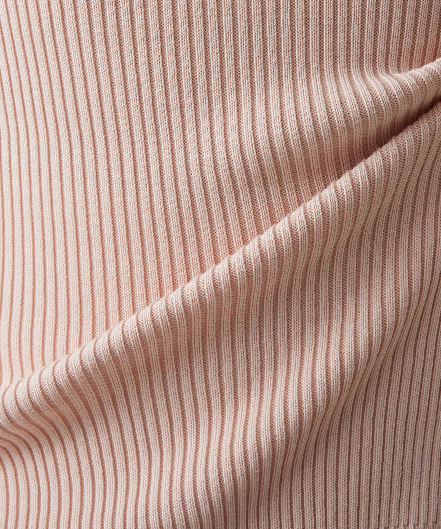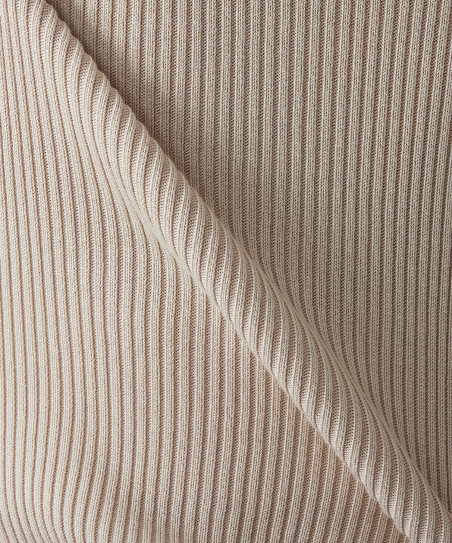 超長綿とSUPN SILKを混紡した、光沢感が出て肌触りが良く、清涼感があり通気性も良いリブニット。