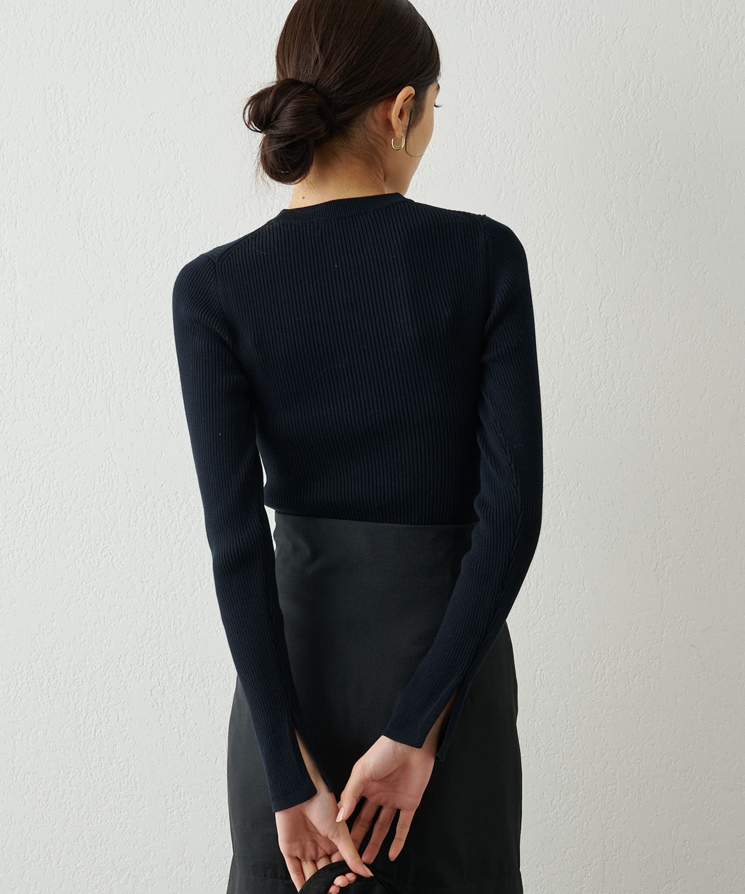 ■程よい肉感のリブ編みにして、身体のラインをスッキリ見えるタイトなラインに。