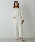 ■ゆったりとしたドルマンシルエットながら、ボートネックがデコルテをきれいに演出。