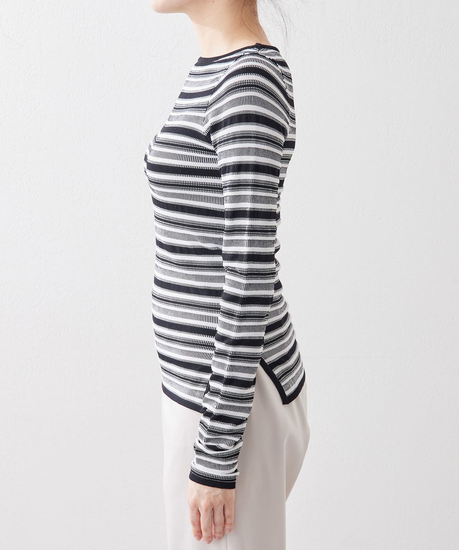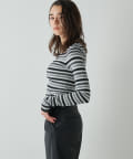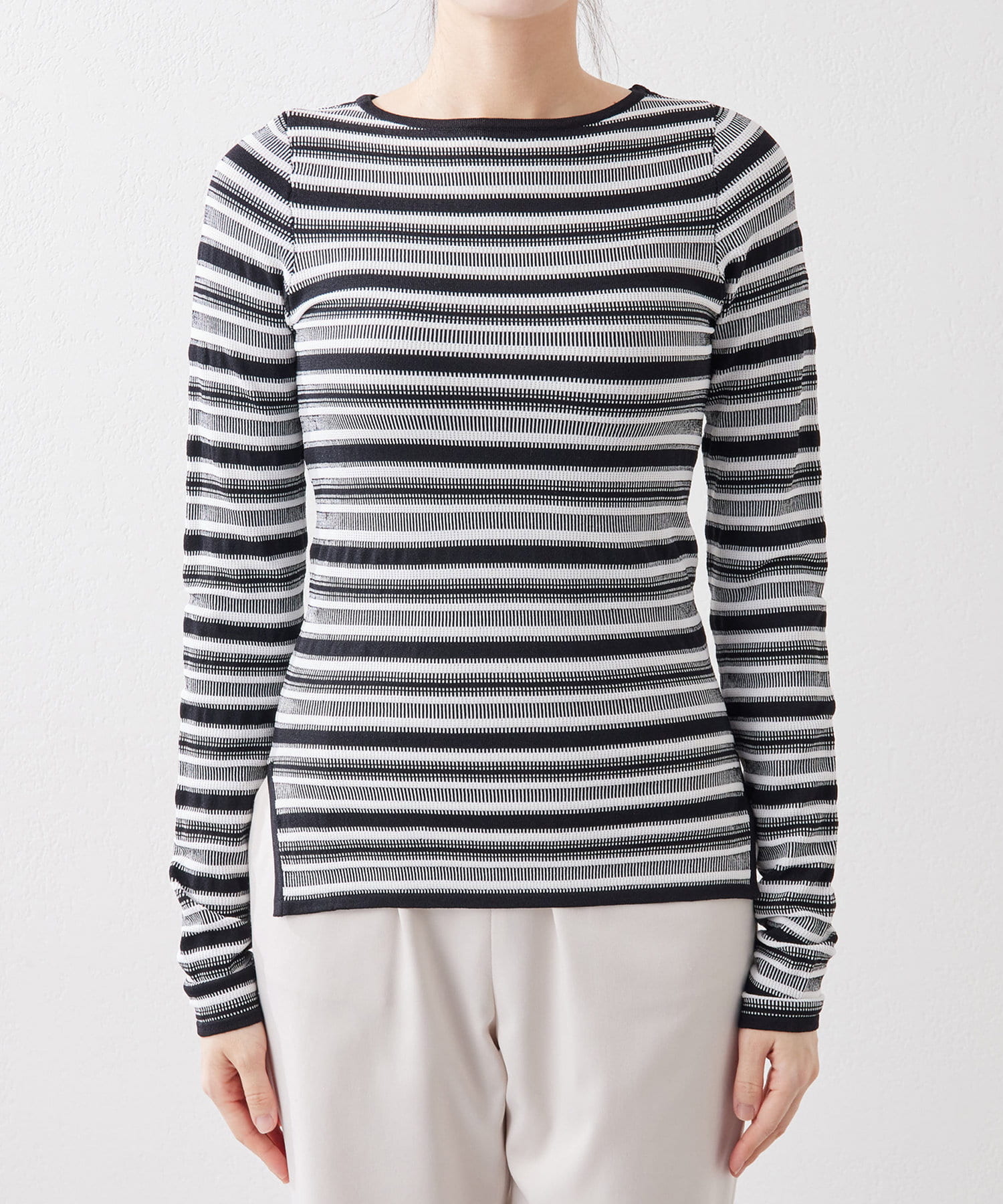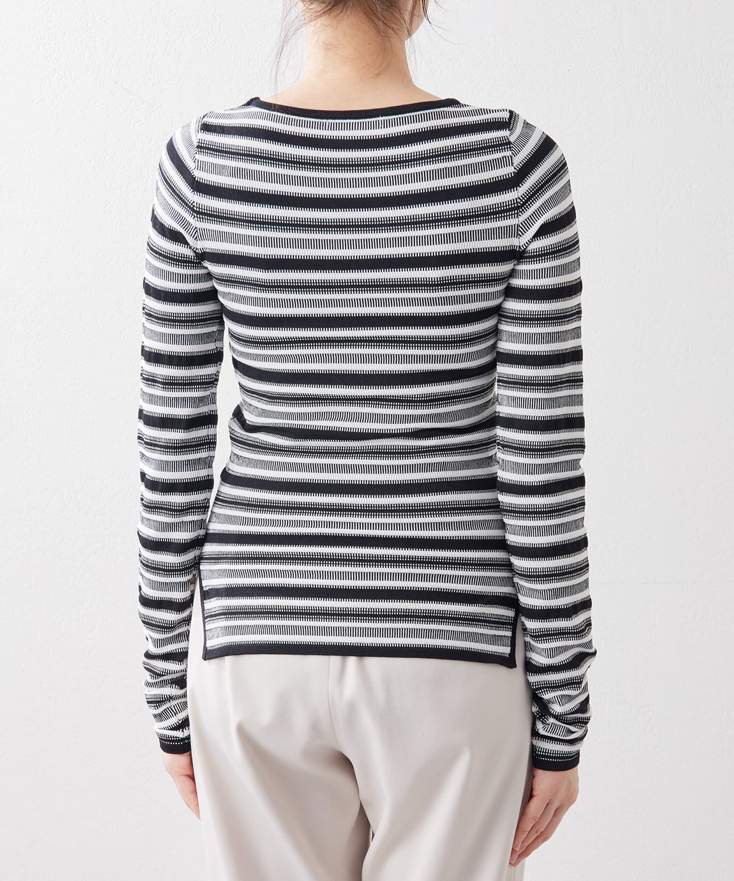 ■ランダムなボーダー柄がポイントのニットプルオーバー。
