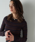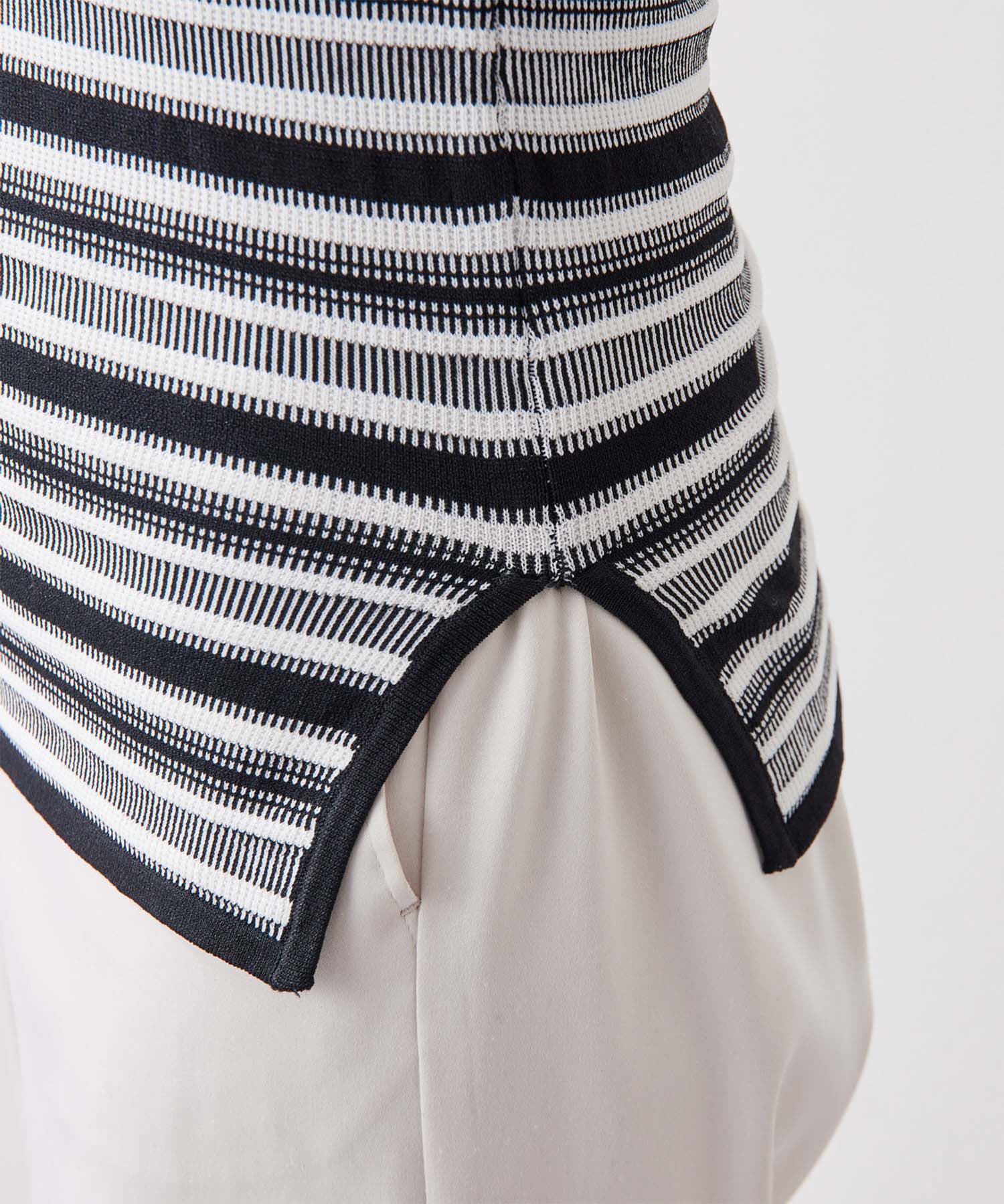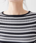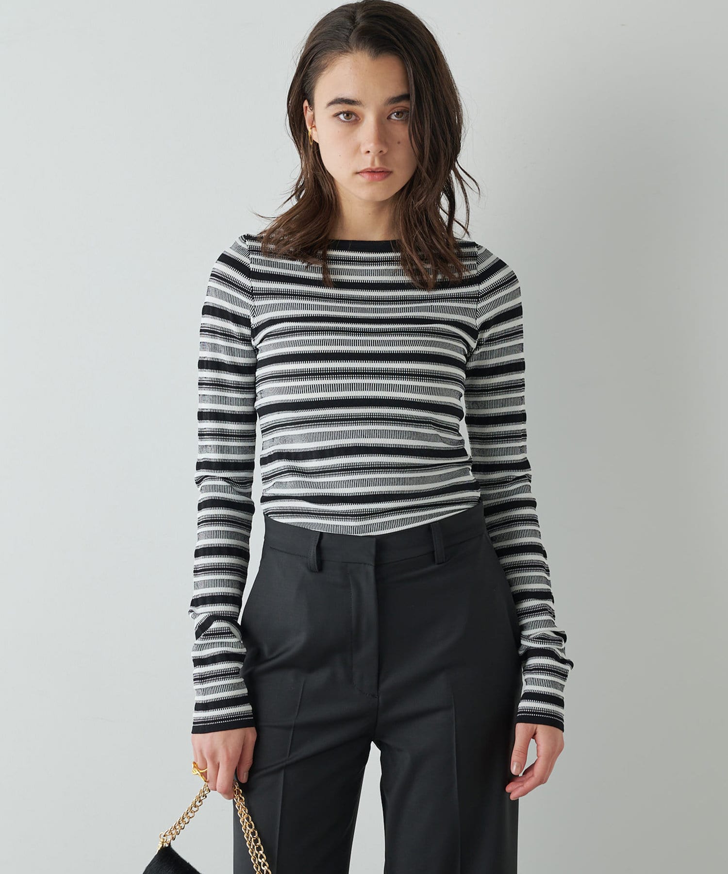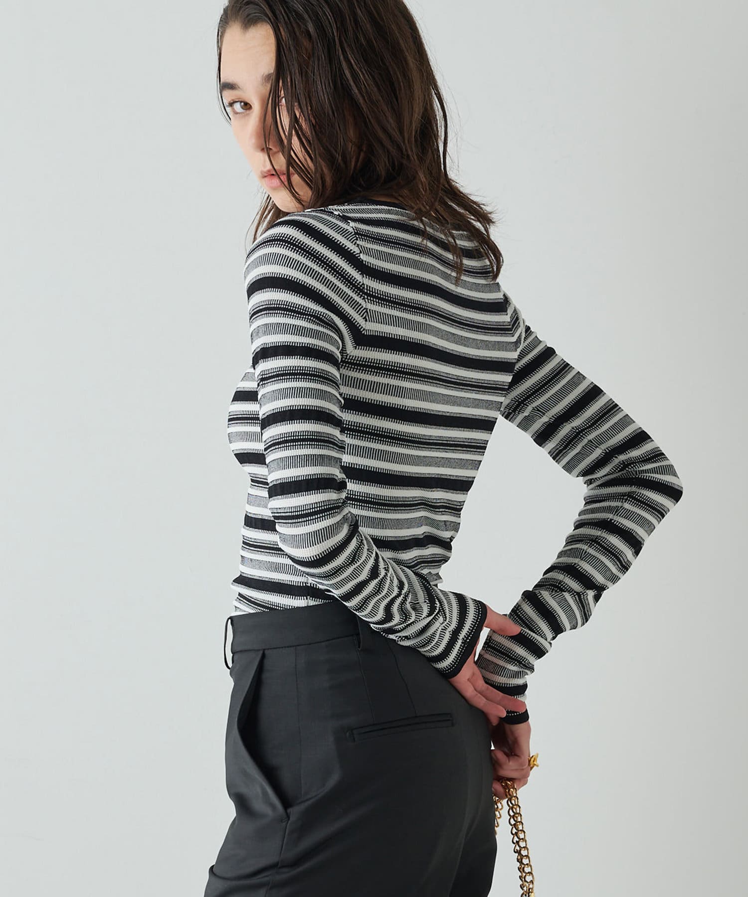 ■ランダムなボーダー柄がポイントのニットプルオーバー。
