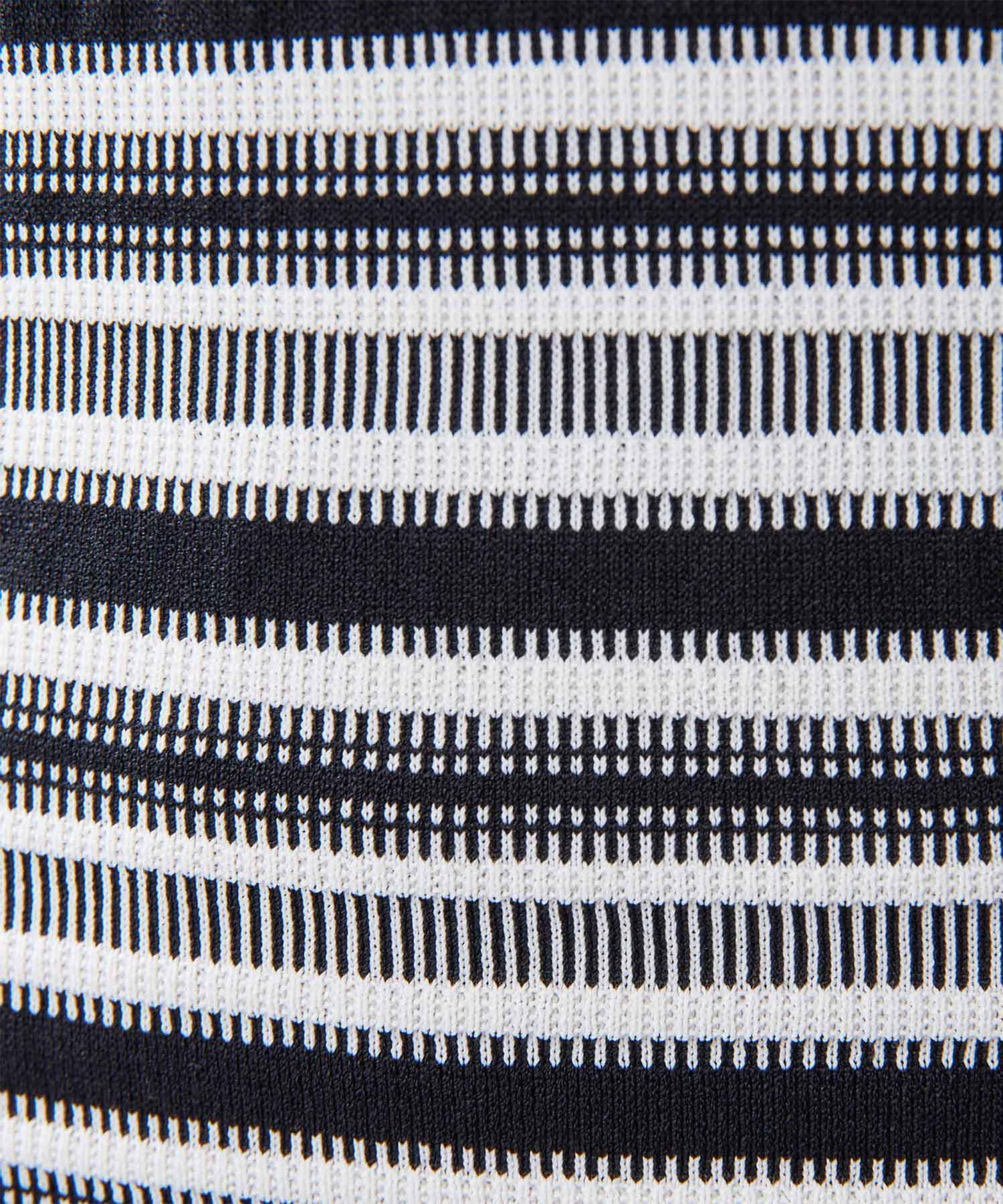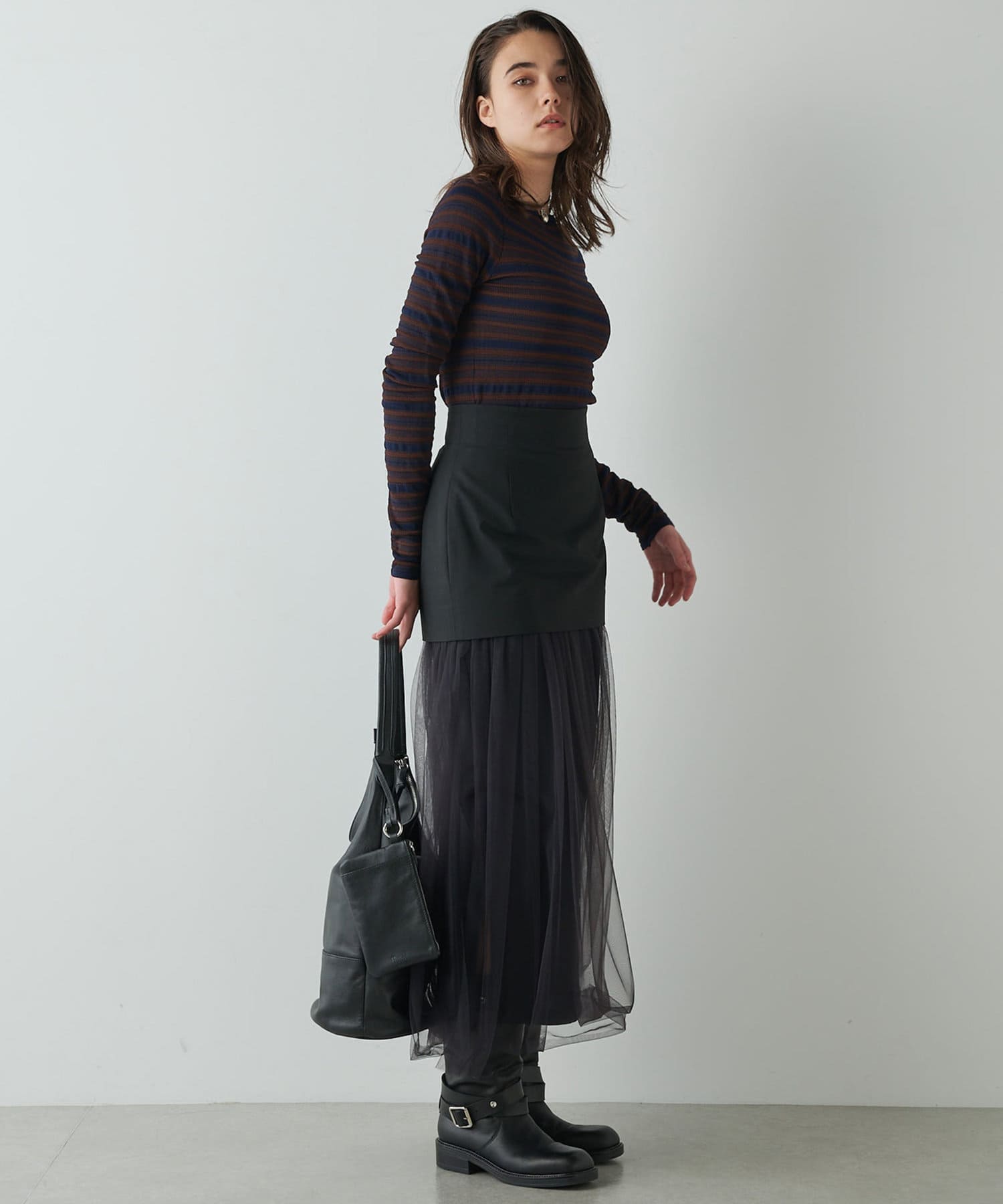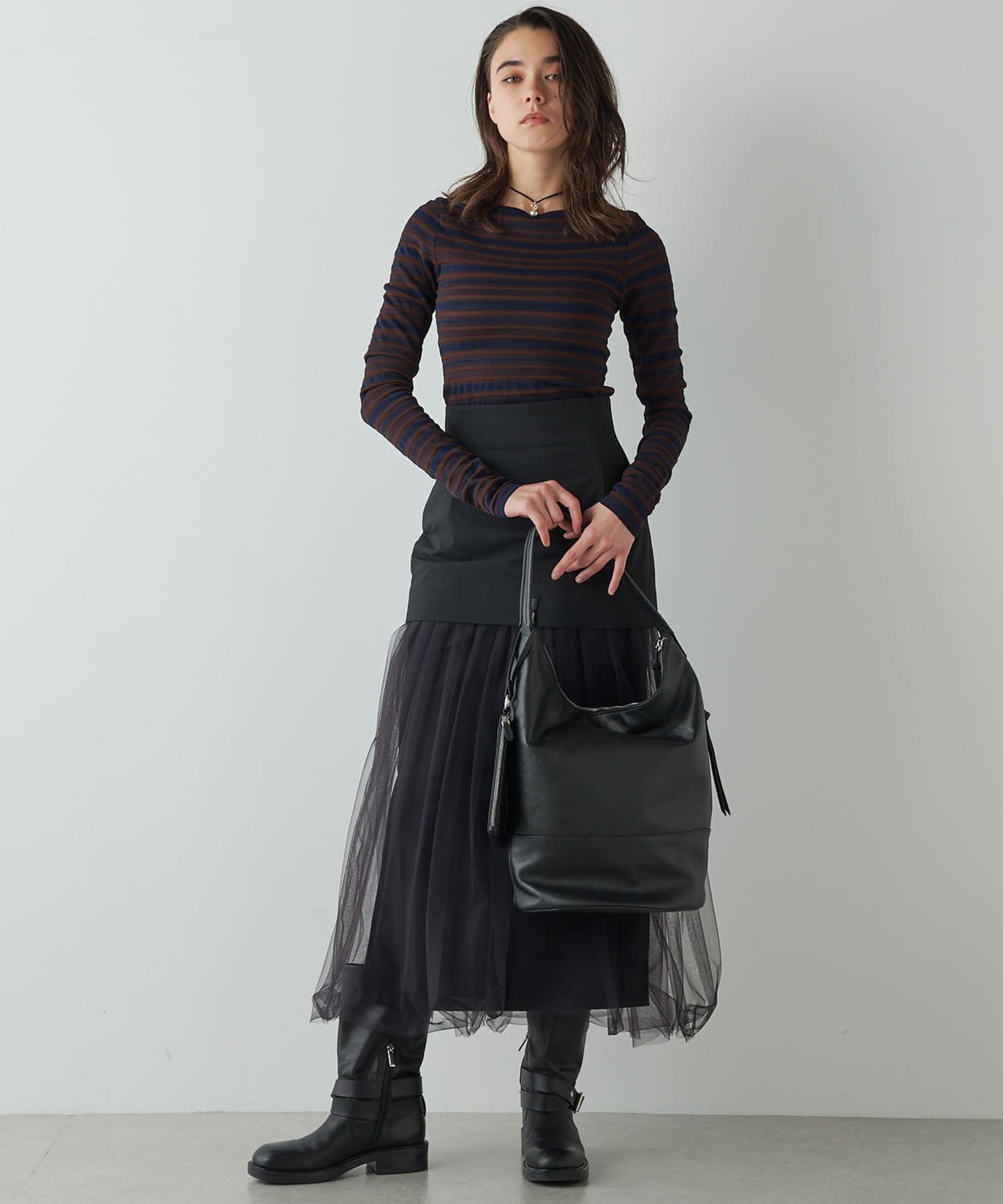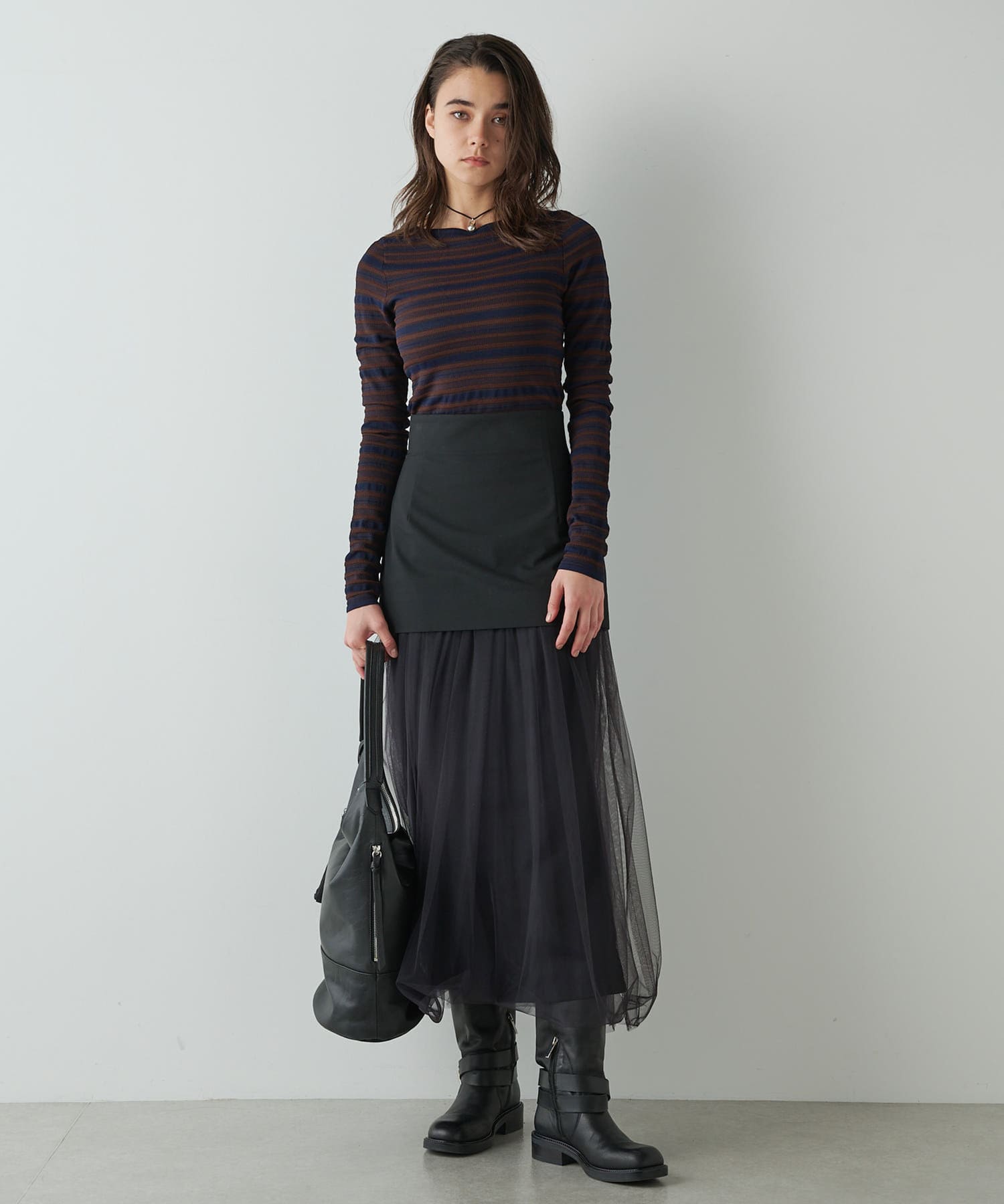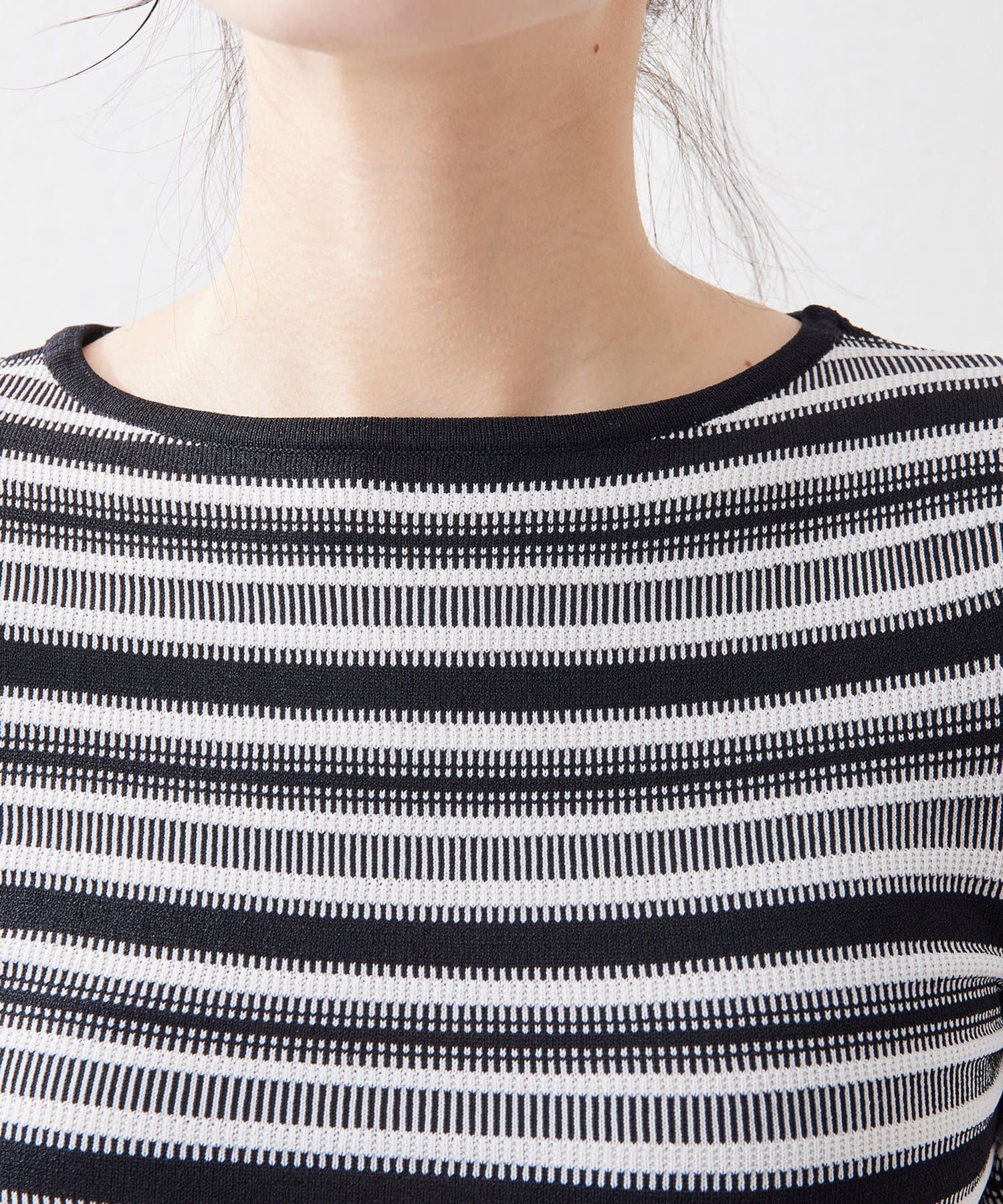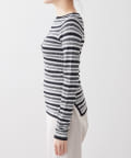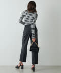 ボーダーというとカジュアルに見えがちですが、こちらなら上品さも感じられます。投入するだけで、大人カジュアルな雰囲気になるアイテムです。タイトめなシルエットで女性らしさもありますよ。