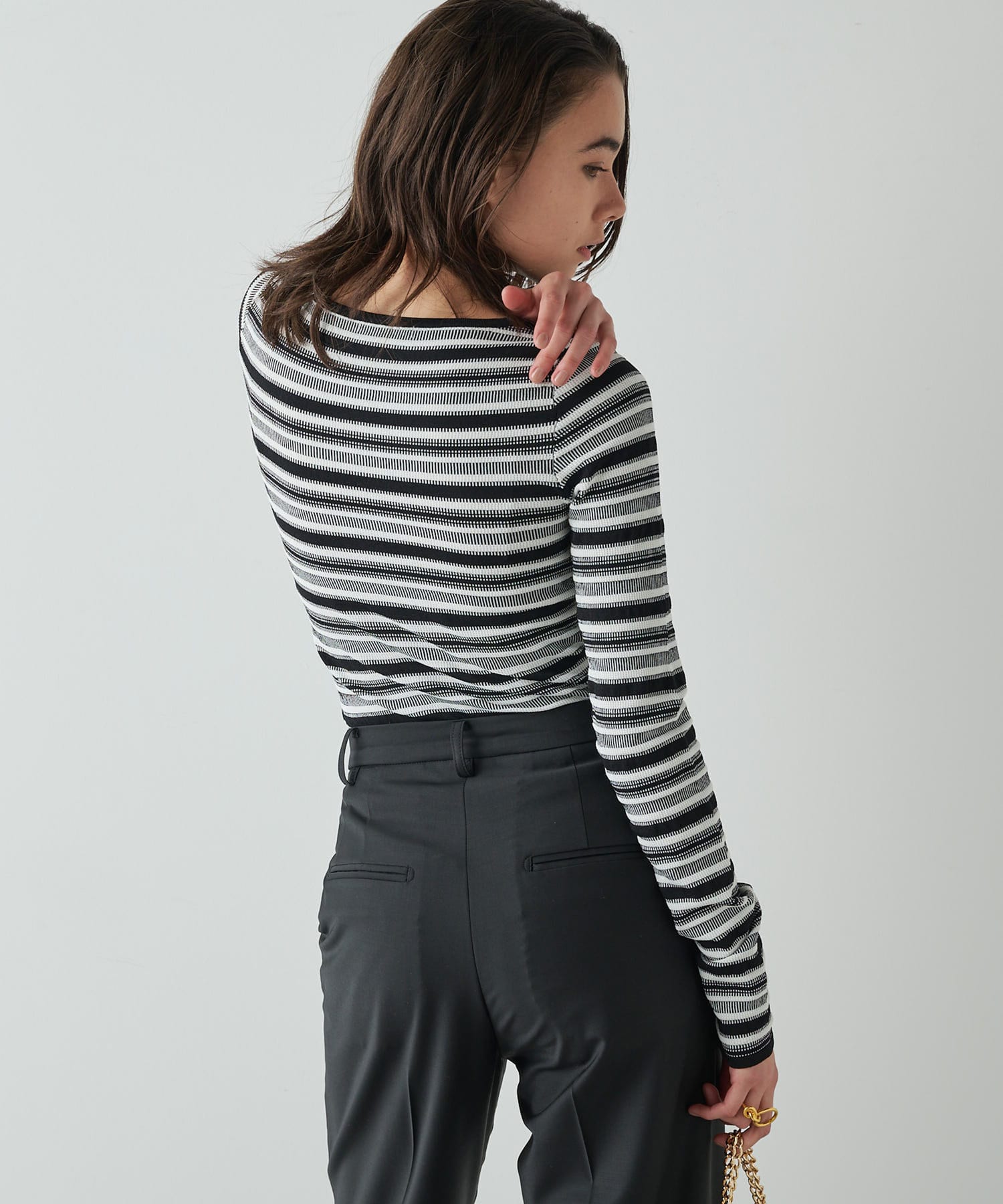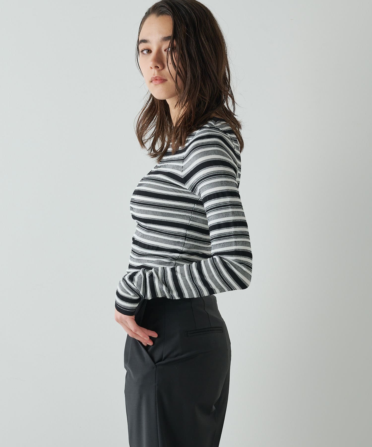 ■ストレッチの効いたフィット感のあるサイジングが女性らしい一枚。