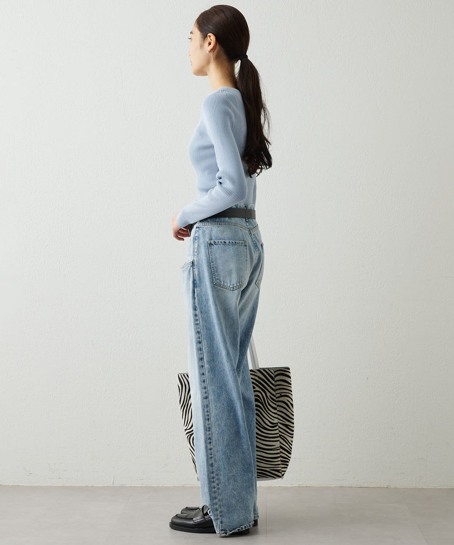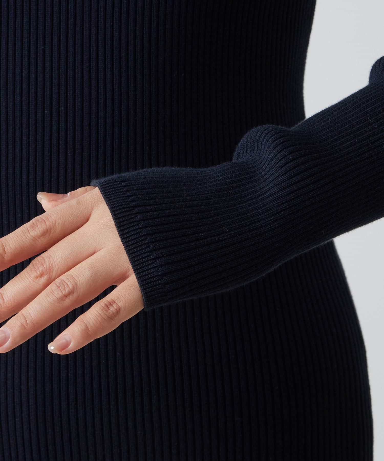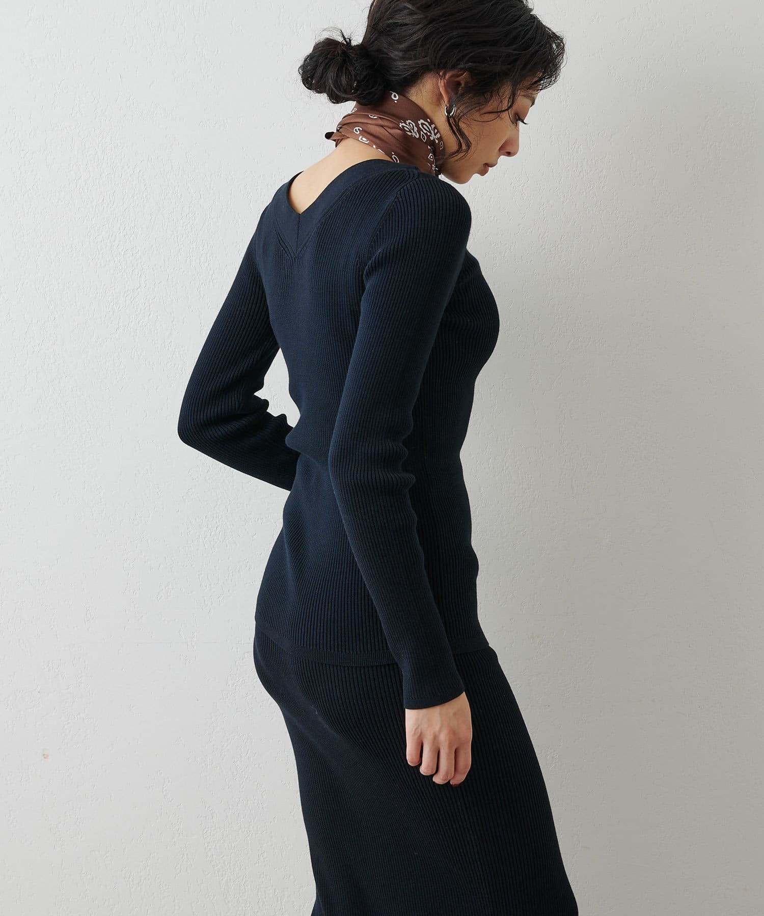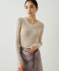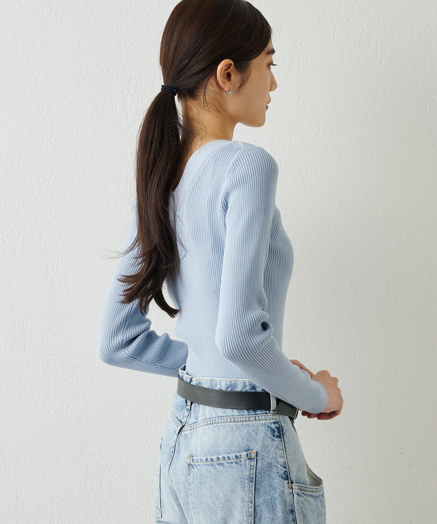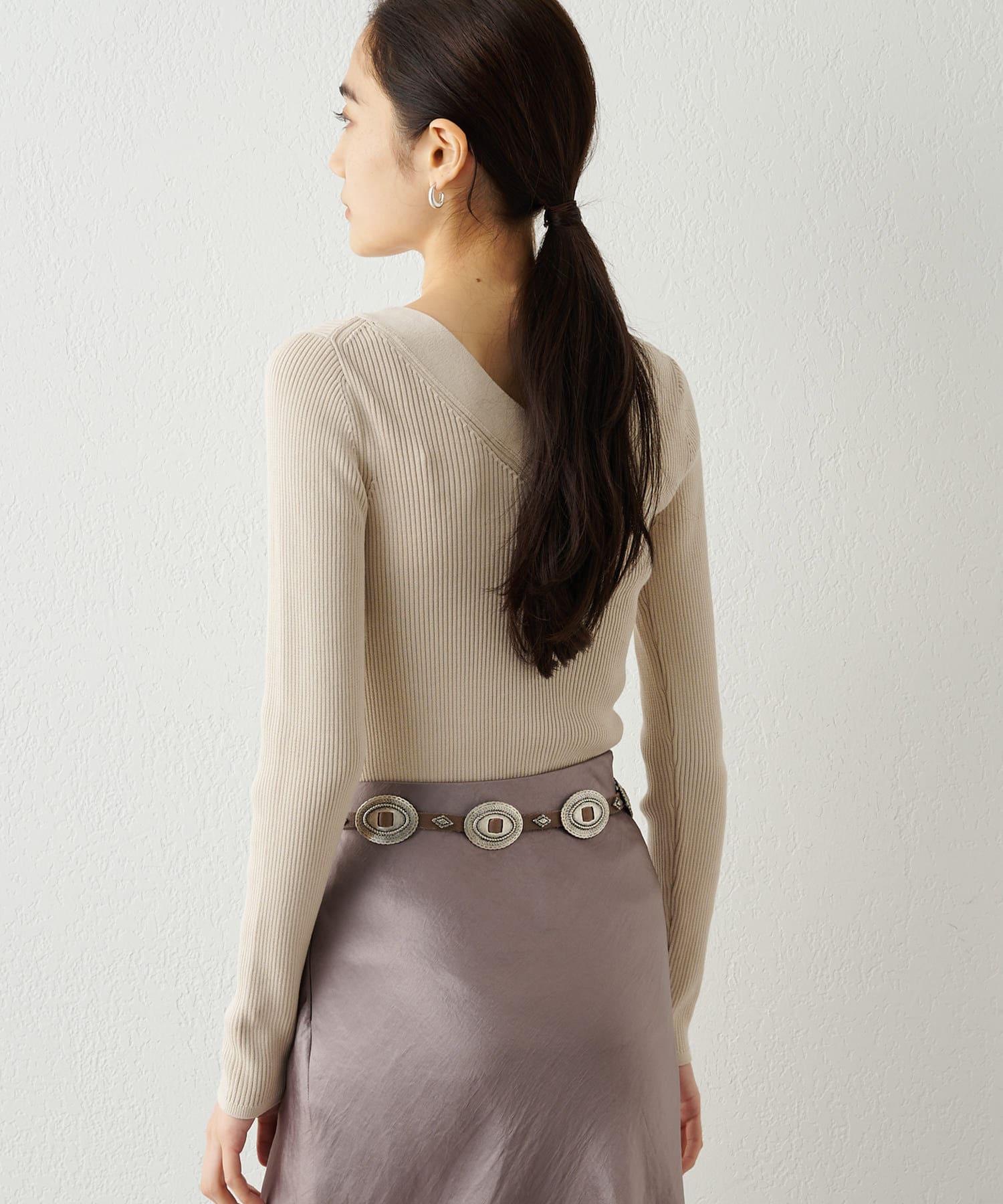 柔らかなタッチで着心地の良いリブニット。顔まわりがスッキリとした印象に。リブならではの女性らしさがあり、合わせるアイテムによっては雰囲気を変えられます。オンオフ活躍間違いなし。