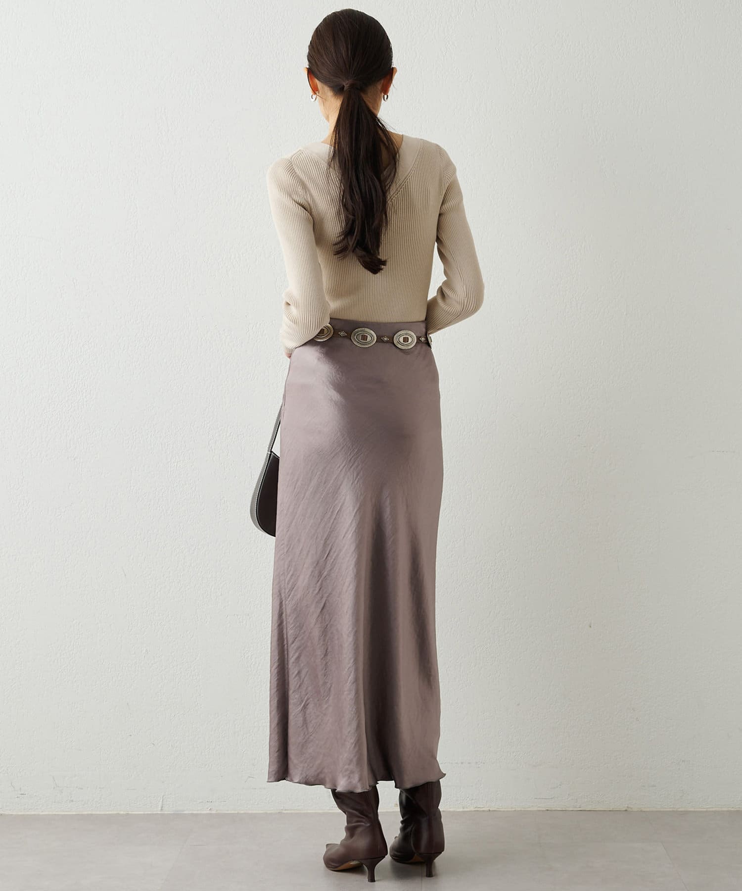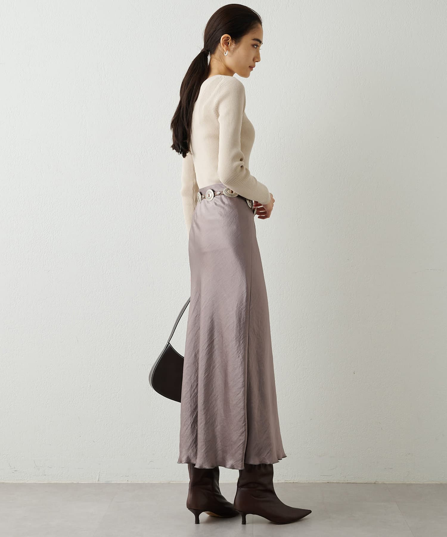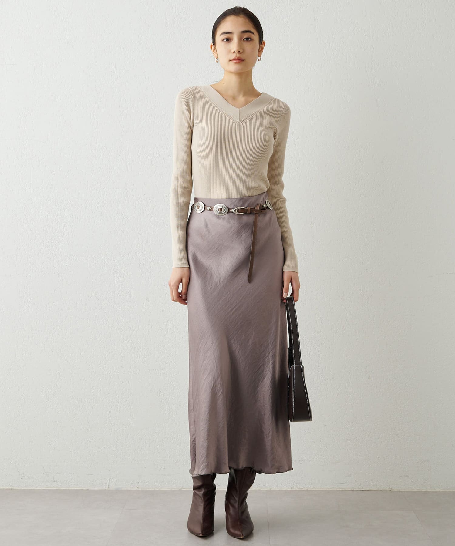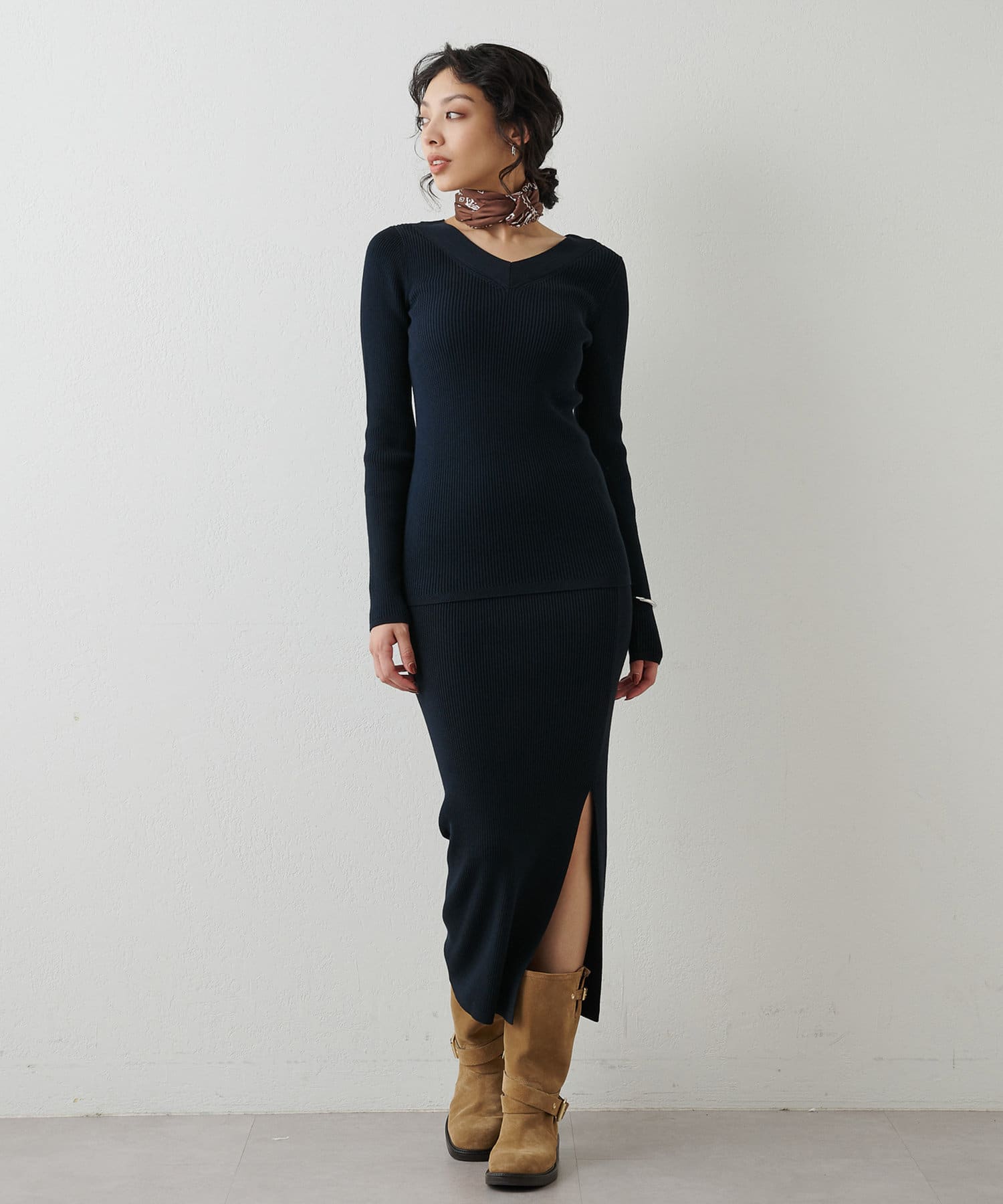 ■同素材のリブニットスカート(ブランド品番:WGZ1041101A0008)とのセットアップもおすすめ。