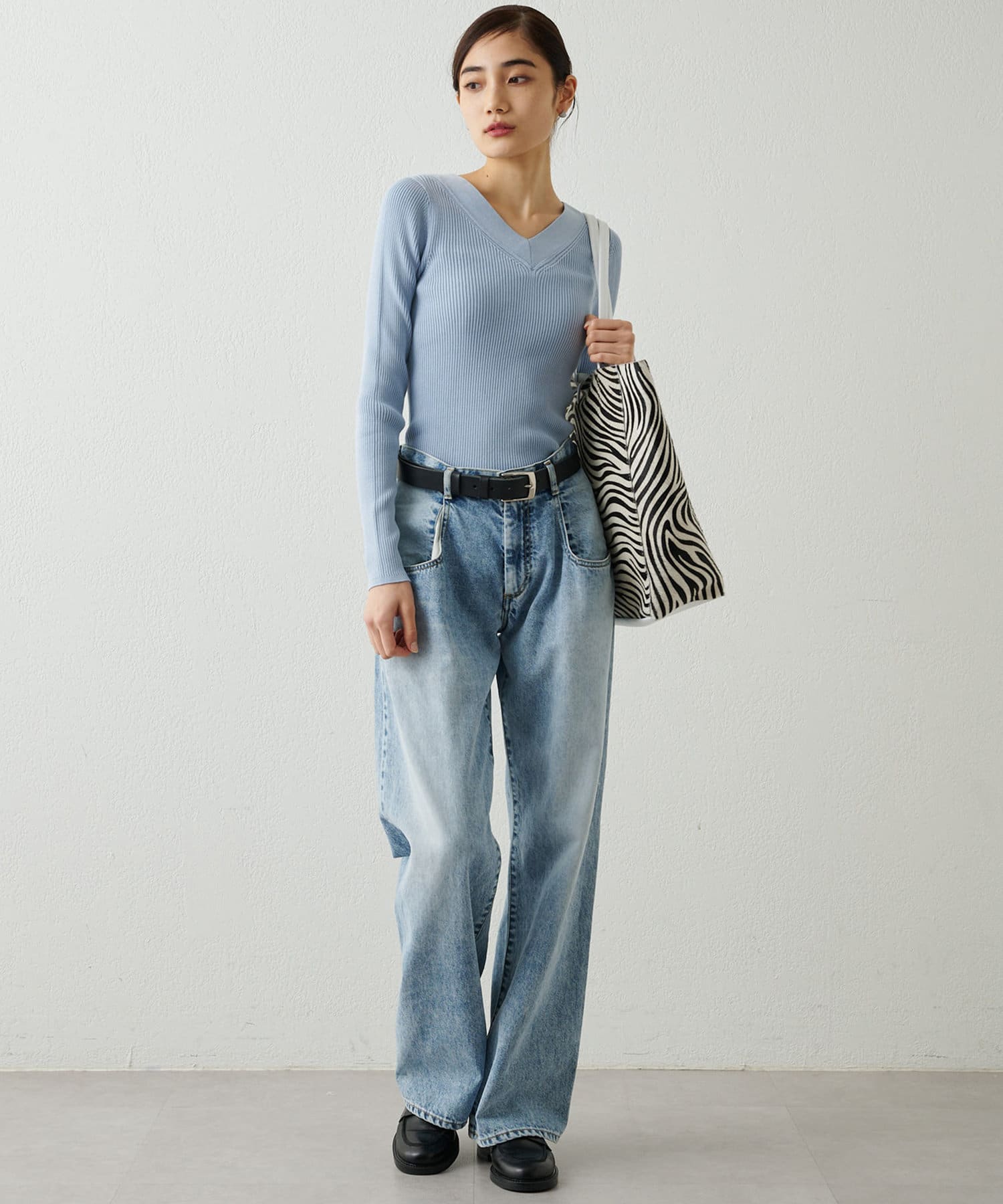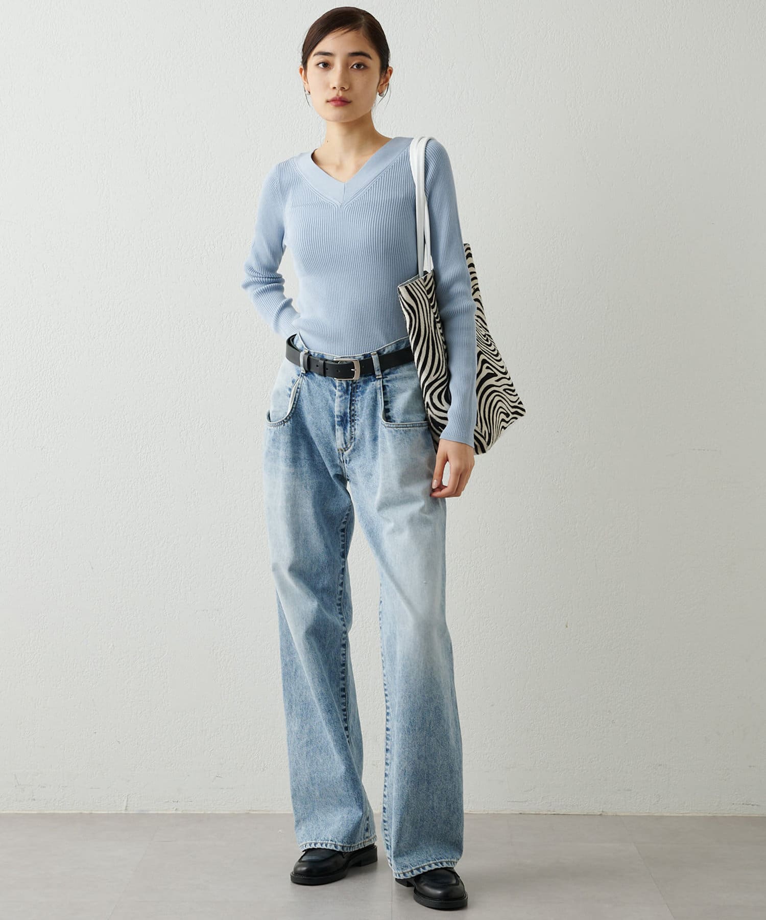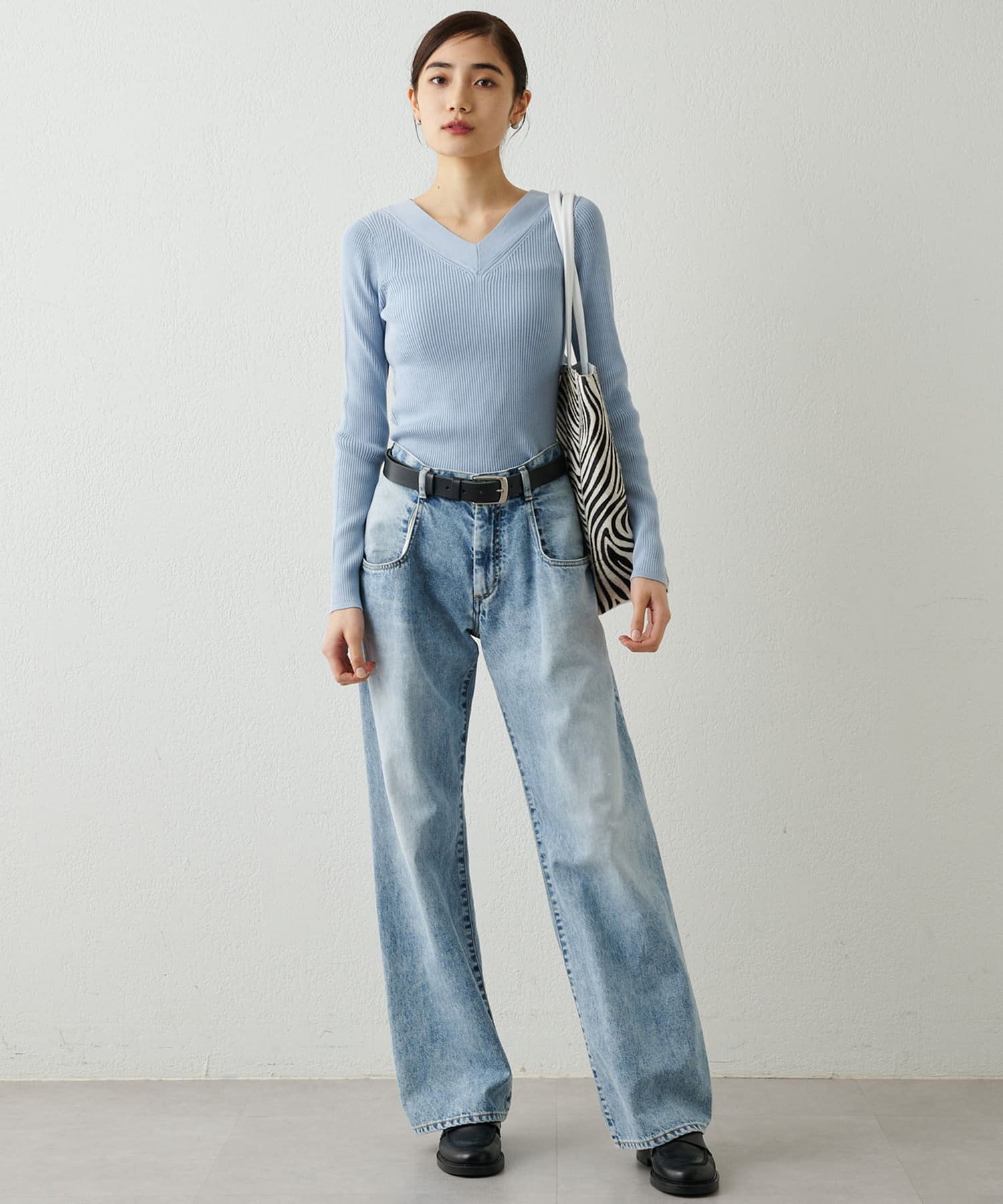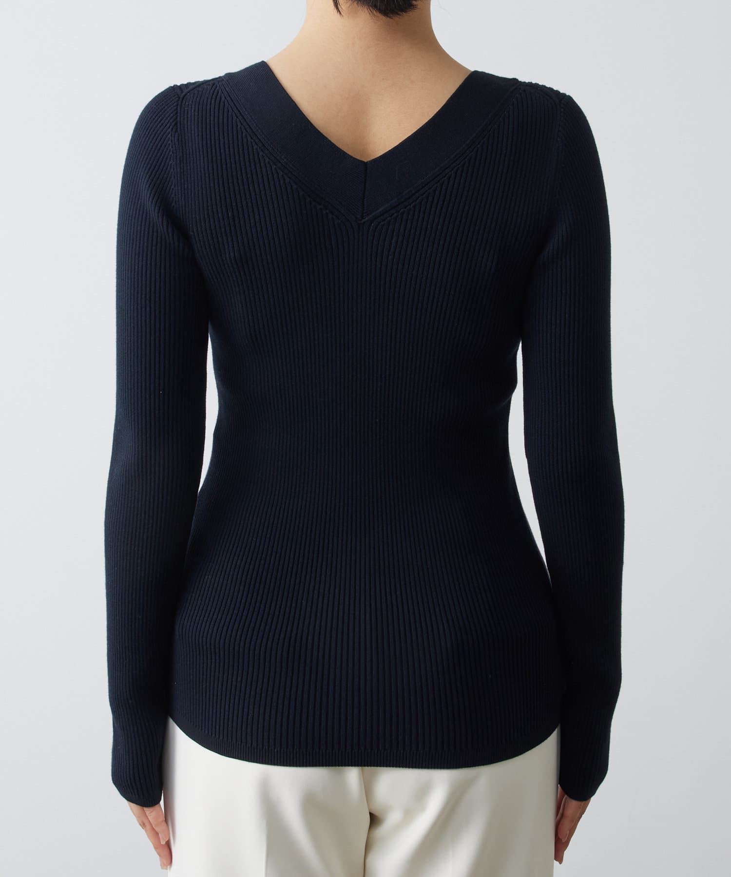 ■程よいデコルテの開き具合がすっきりと着こなせるVネックリブプルオーバー。