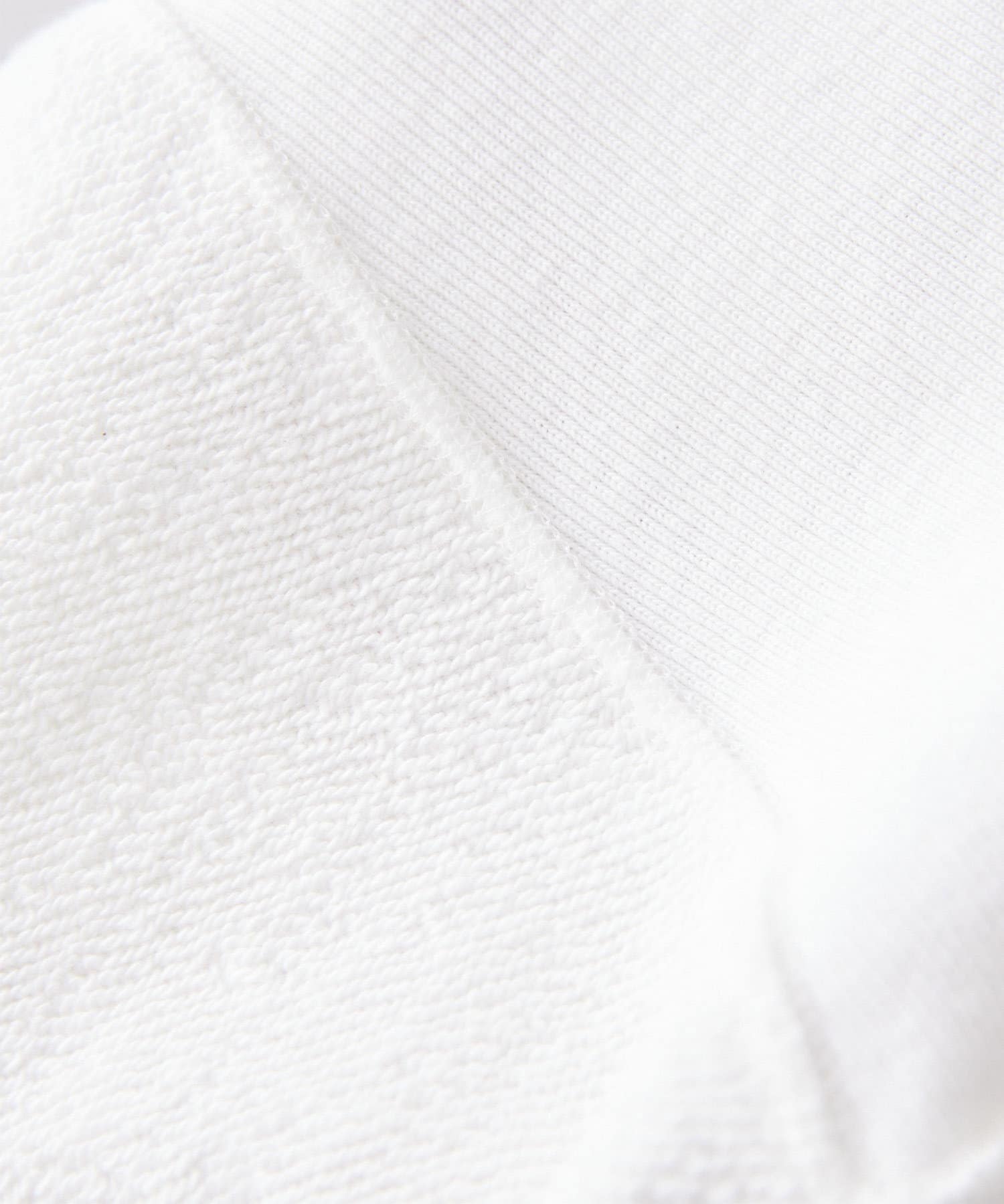 中肉厚の裏毛でまるでビンテージのような雰囲気を表現した生地。