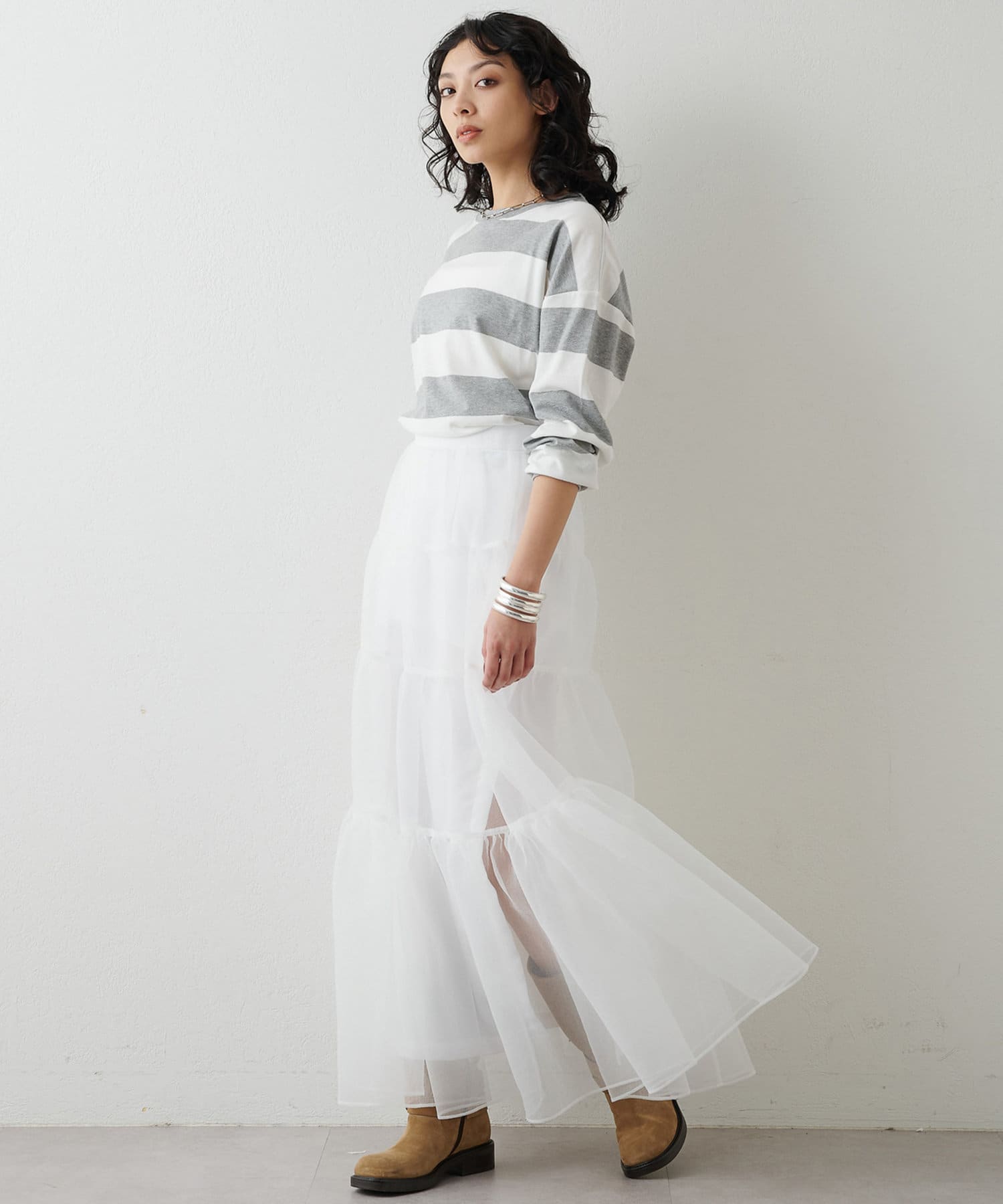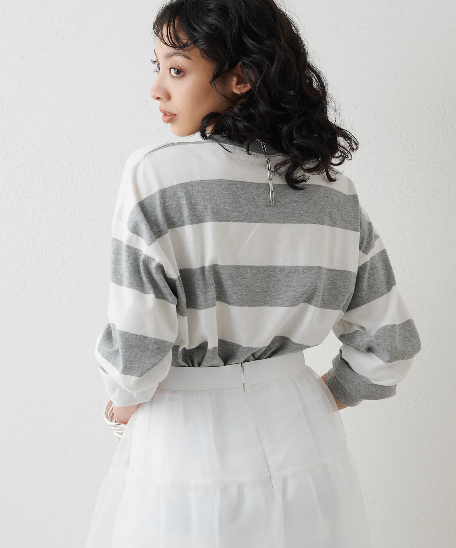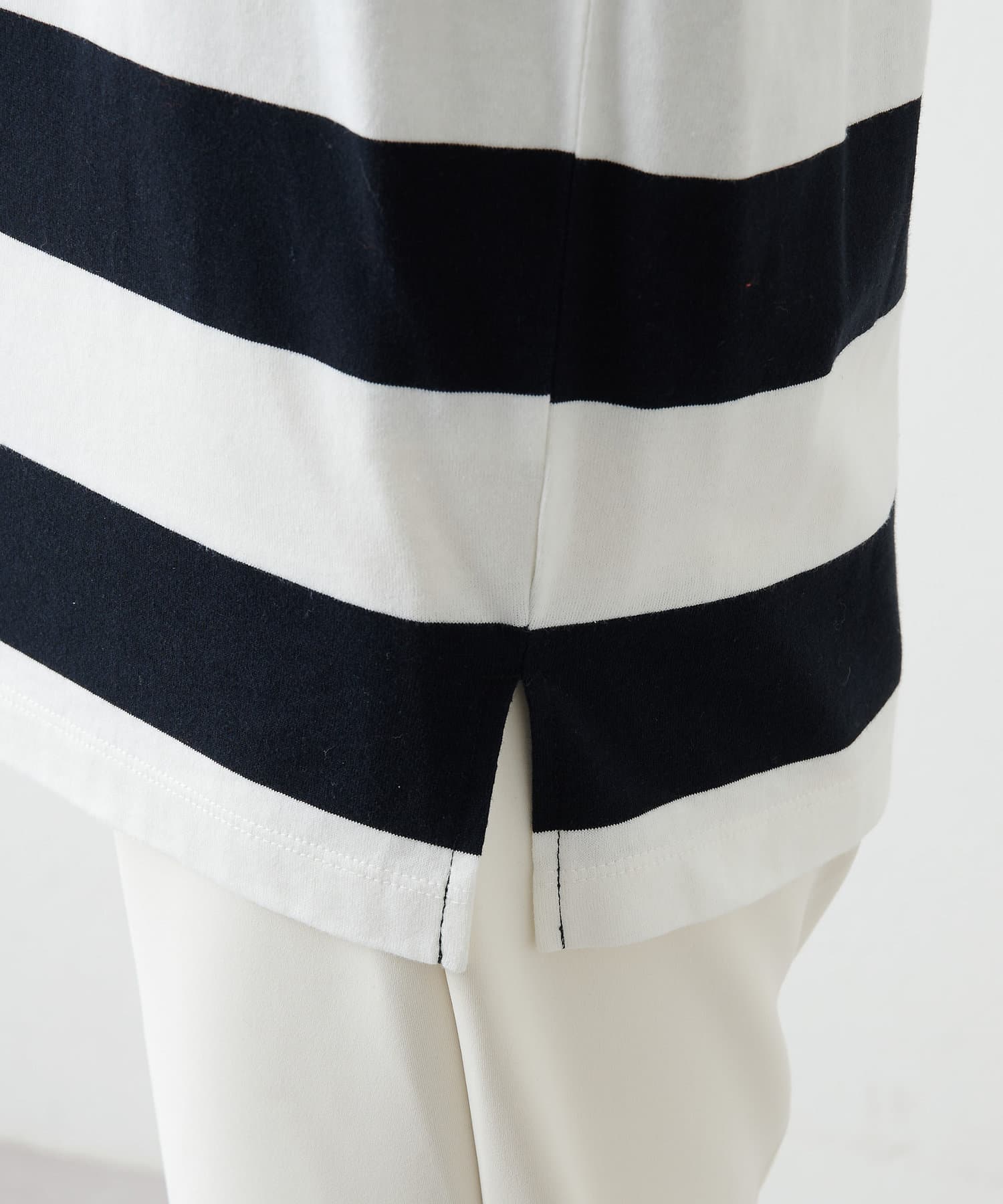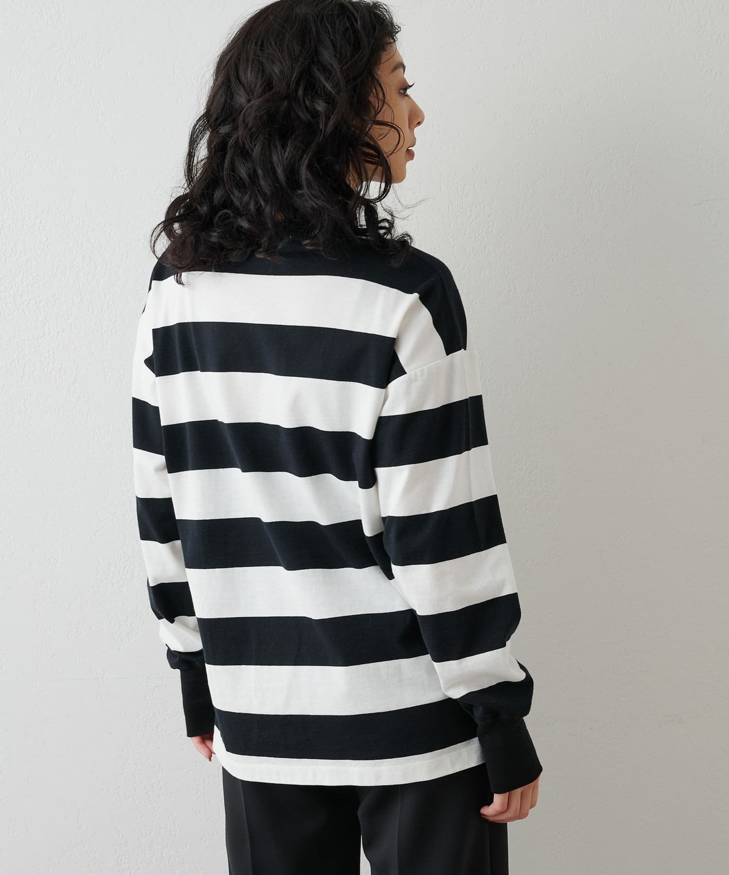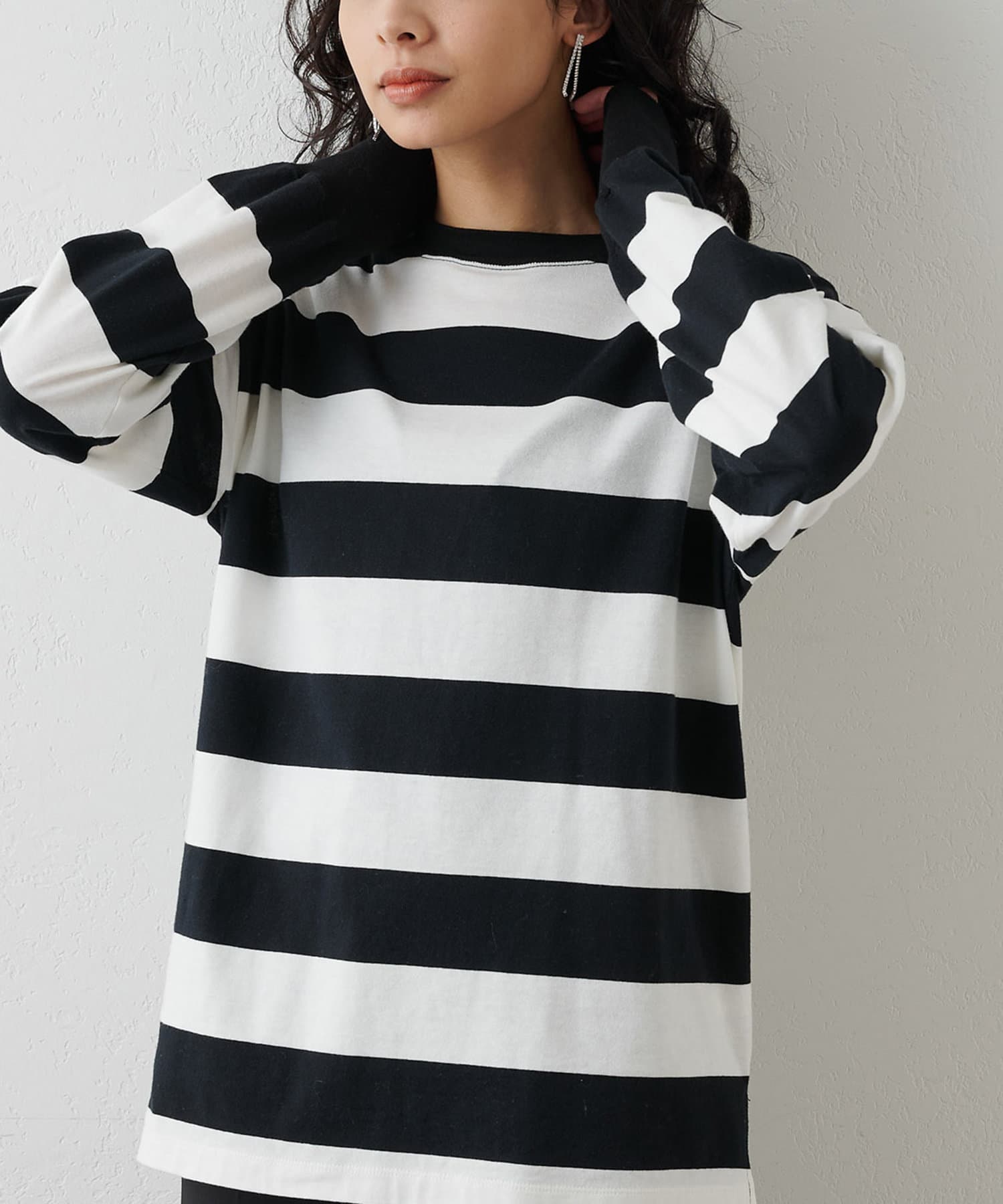 ■リラックス感のある程よいオーバーシルエットと太ボーダー柄がアクセントに。