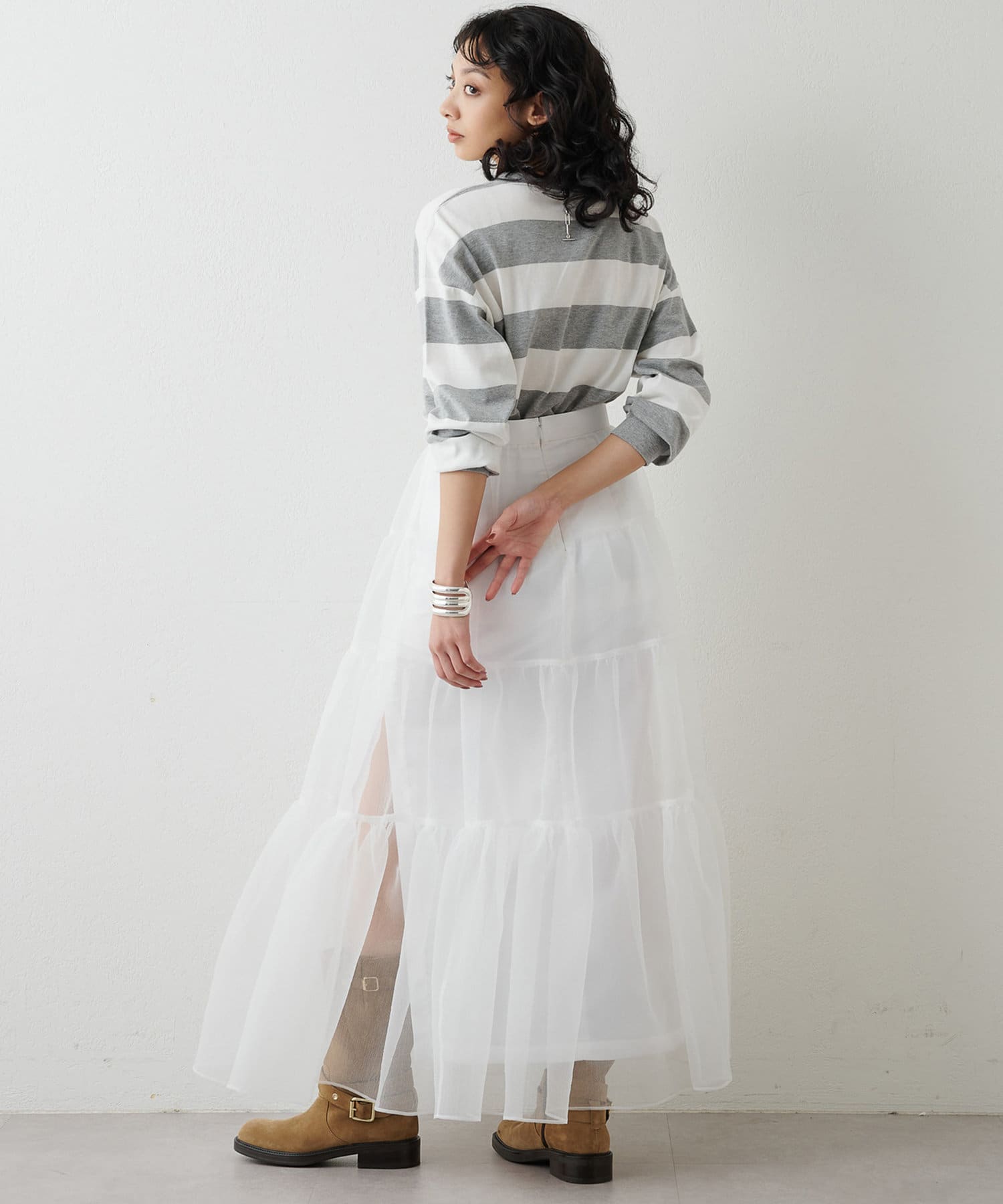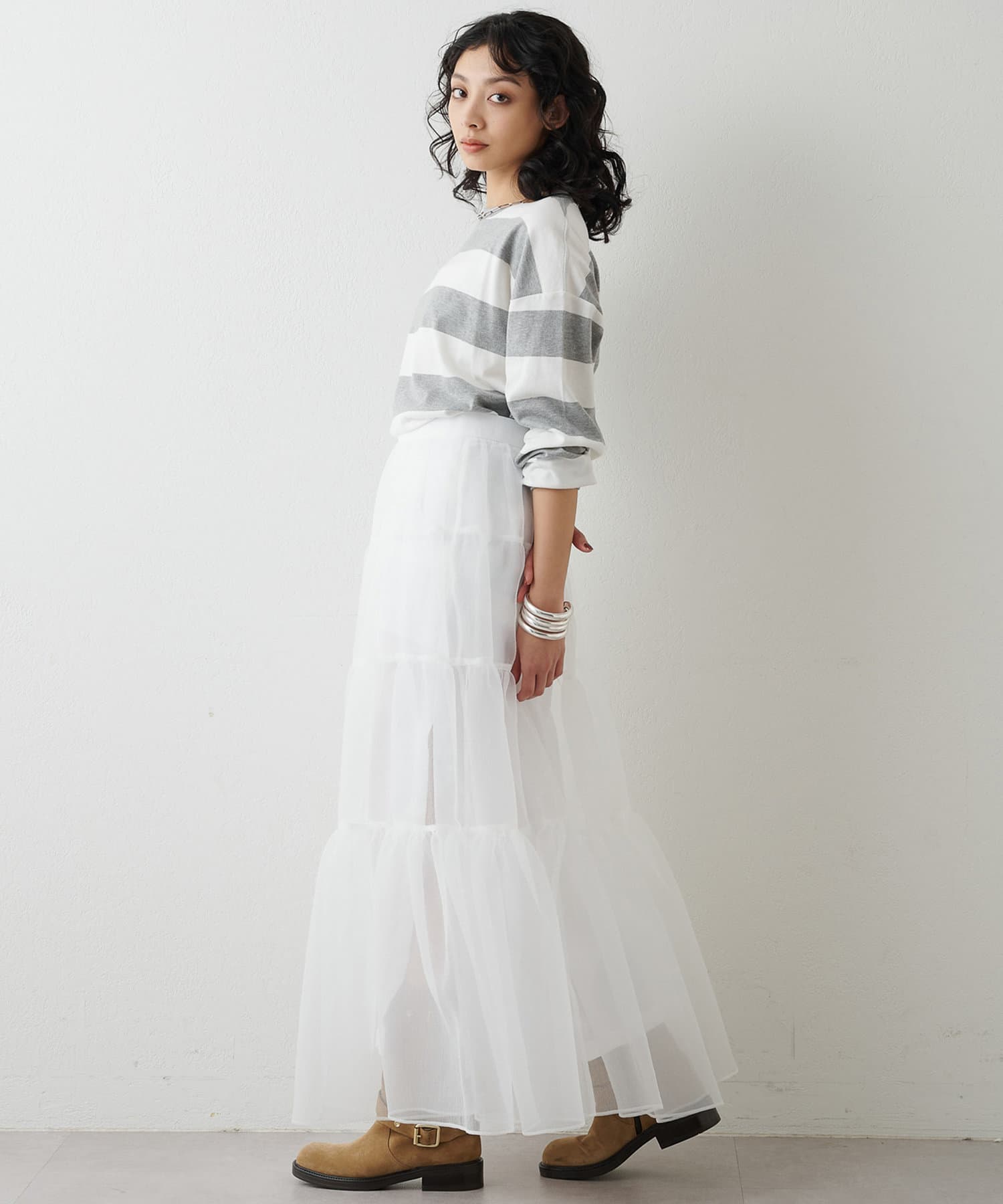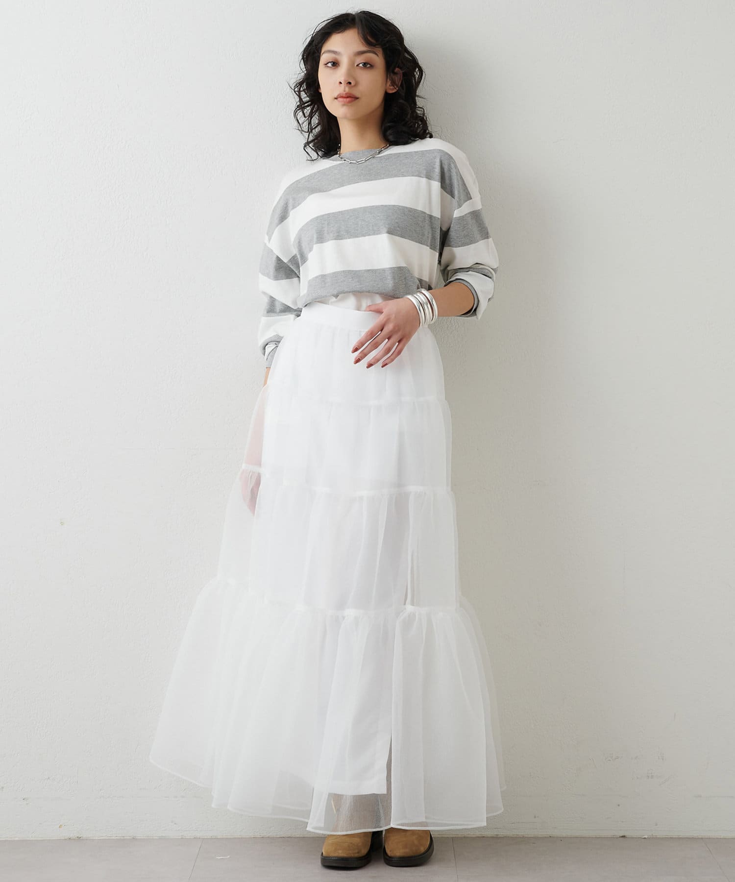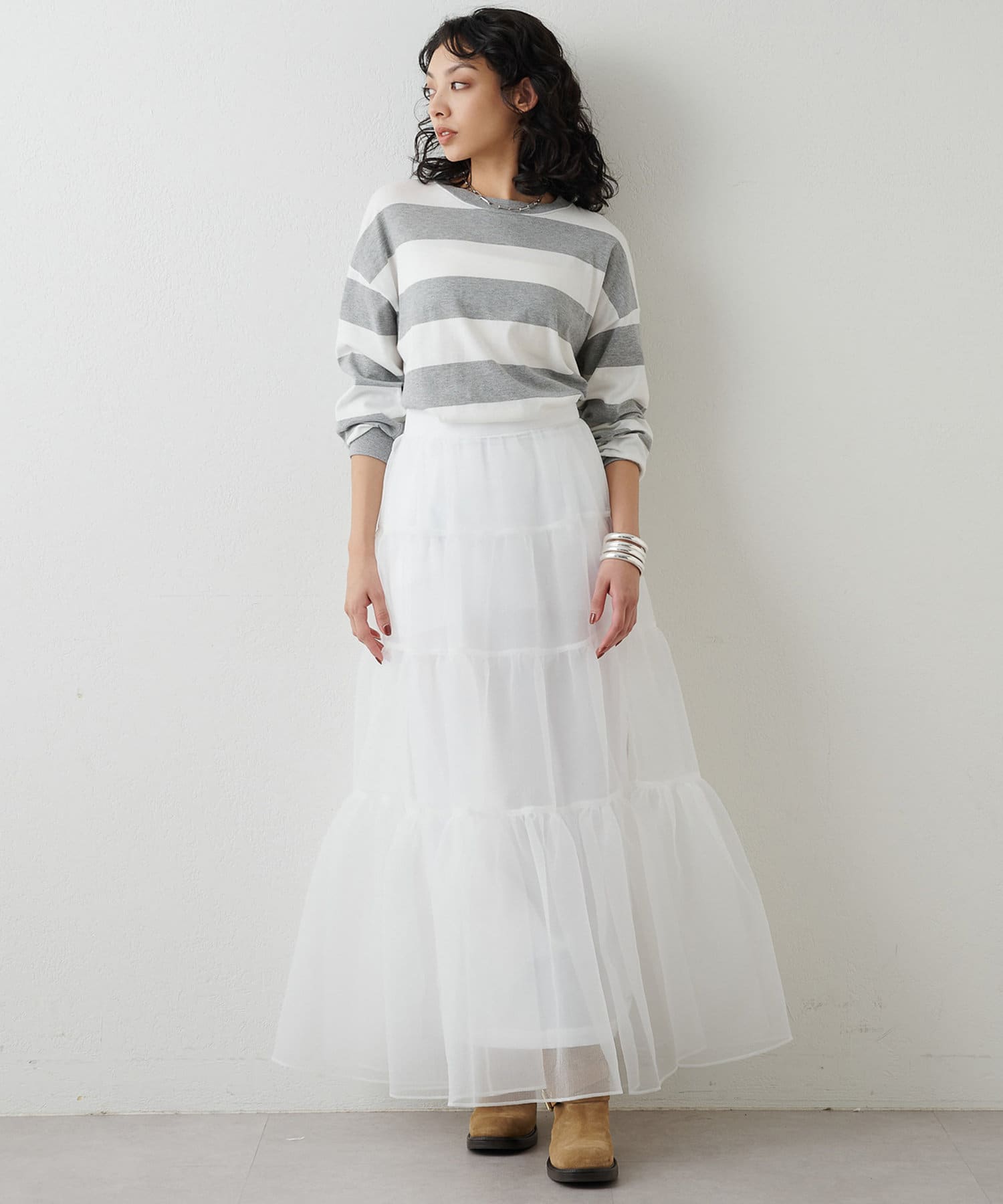 ■リラックス感のある程よいオーバーシルエットと太ボーダー柄がアクセントに。