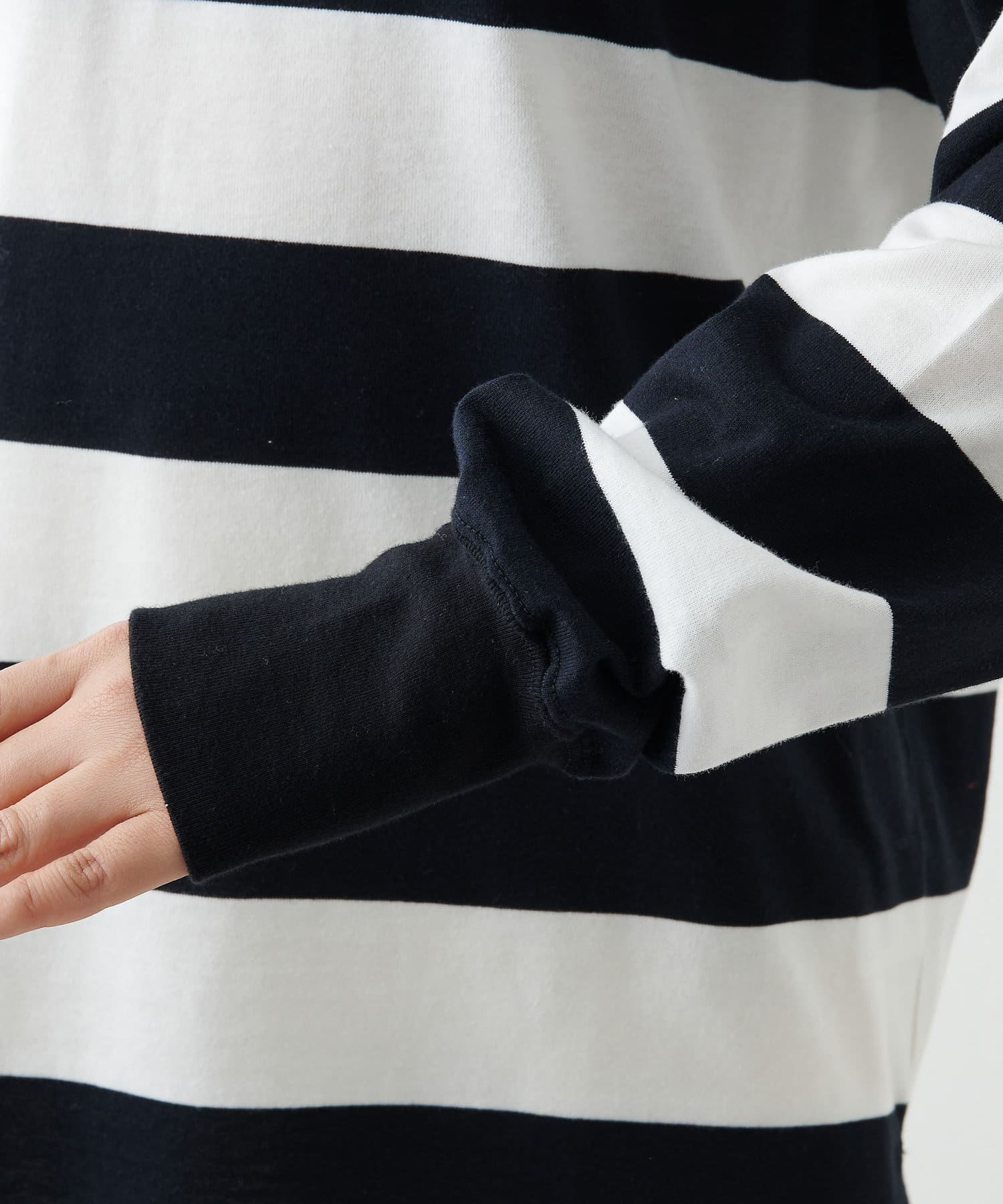 ※カラーによってボーダーの太さに若干の差がある為、柄の入り方がグレーとブラックで異なります。予めご了承ください。