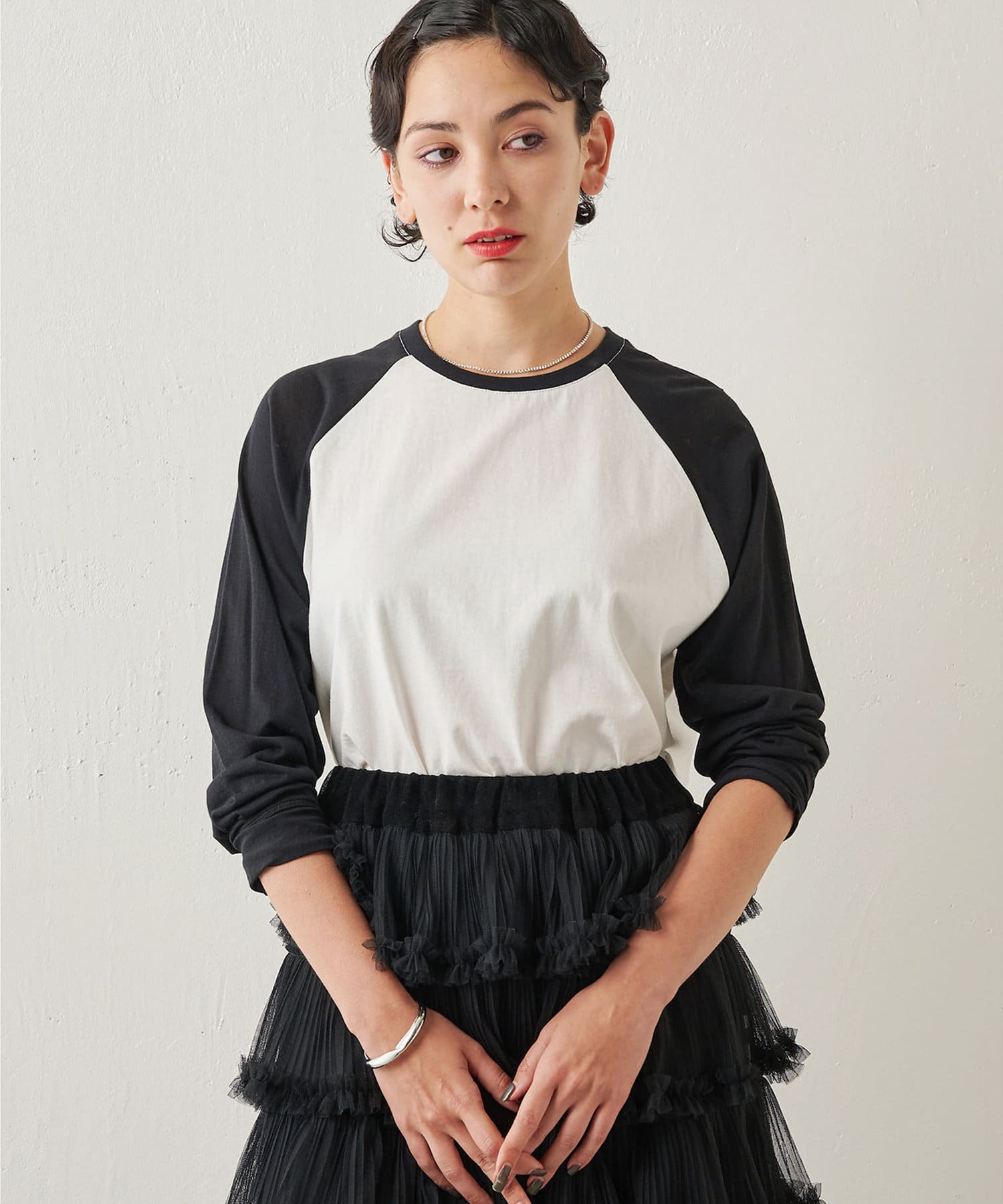 定番カジュアルを女性らしく楽しめるラグランロンT