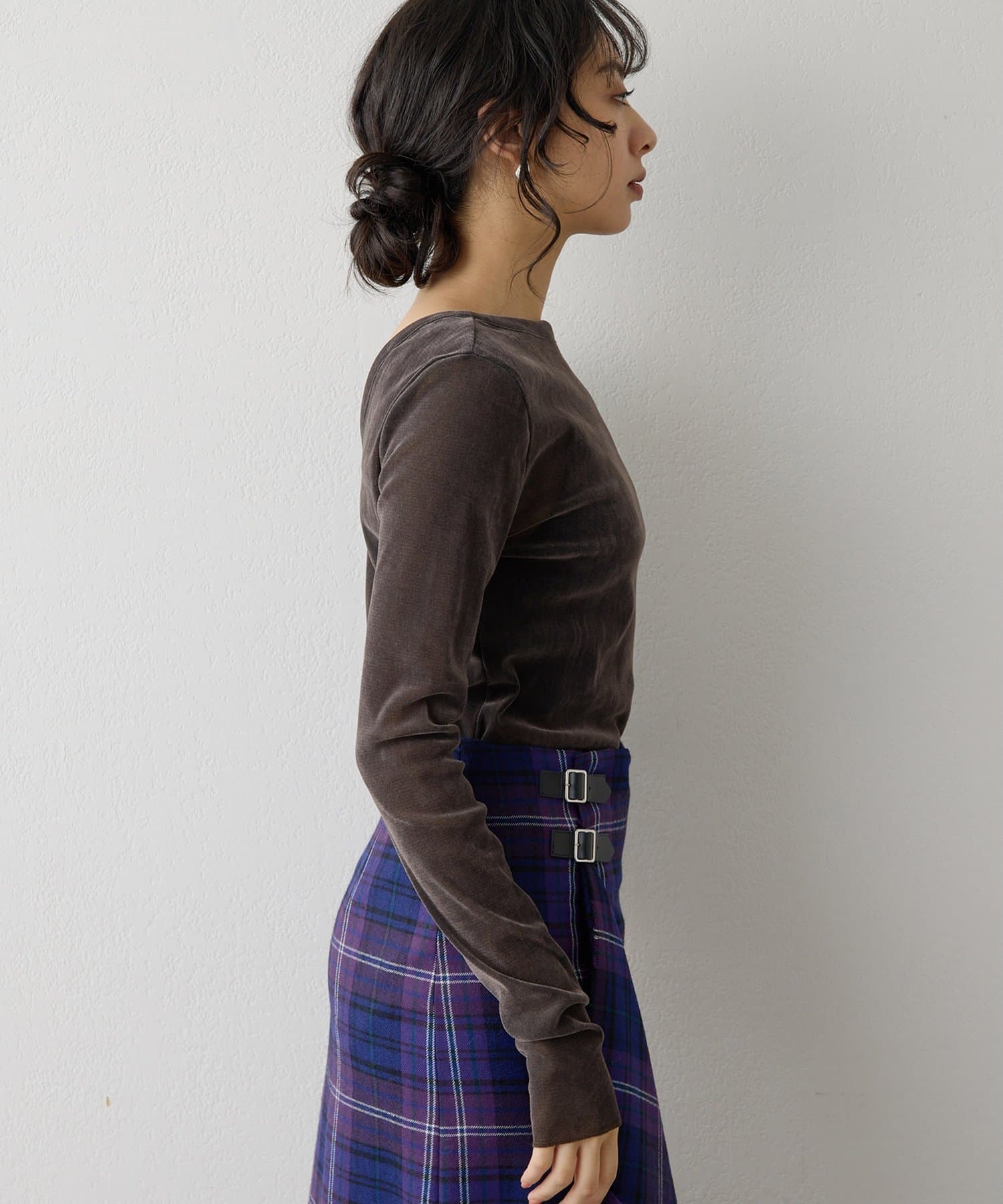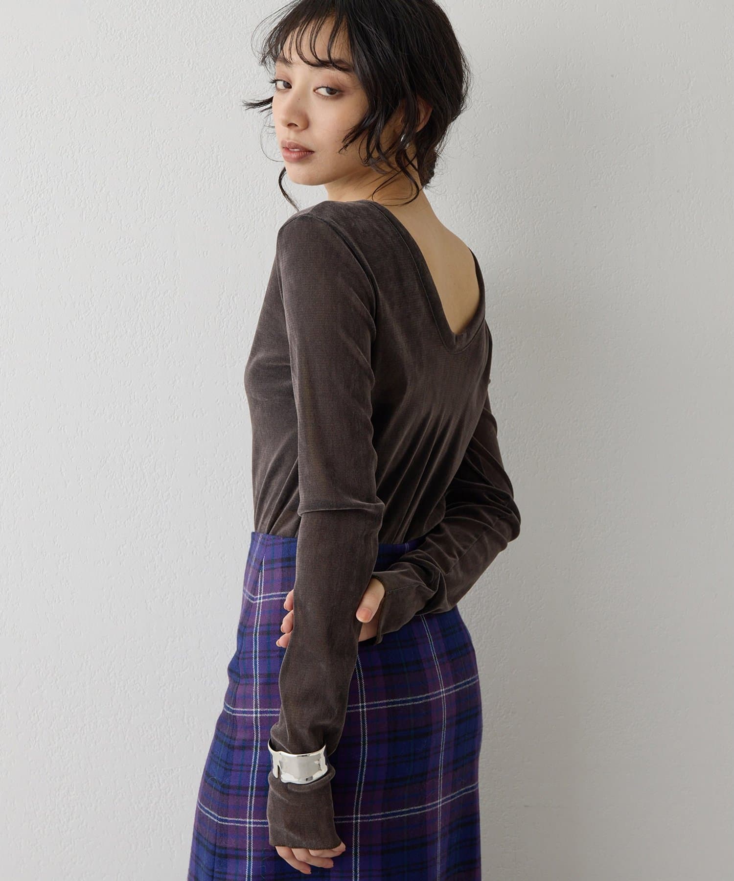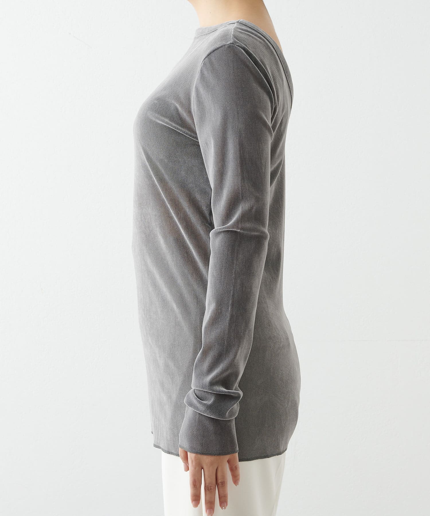 ■程よく肌がのぞくネック周りのカッティングがきれいなロングスリーブカットソー。