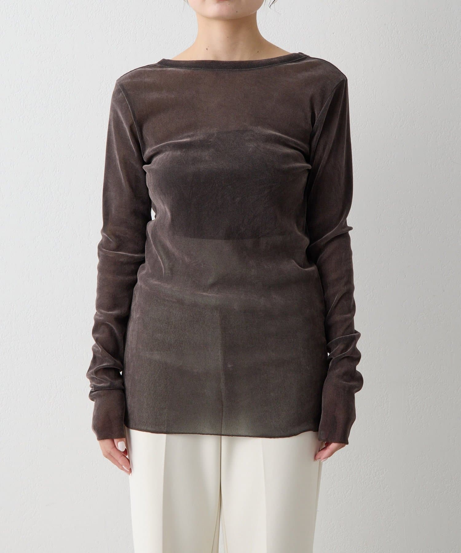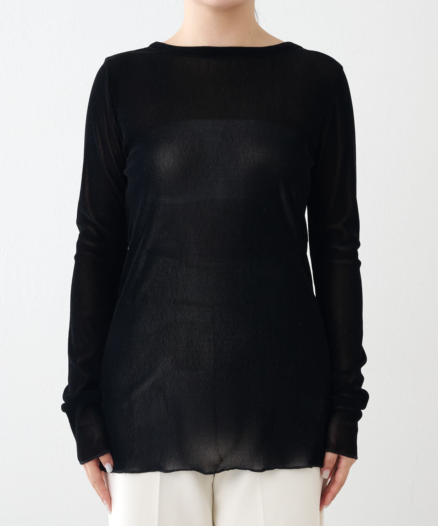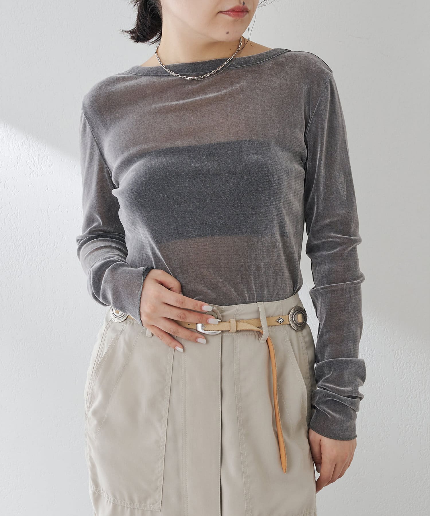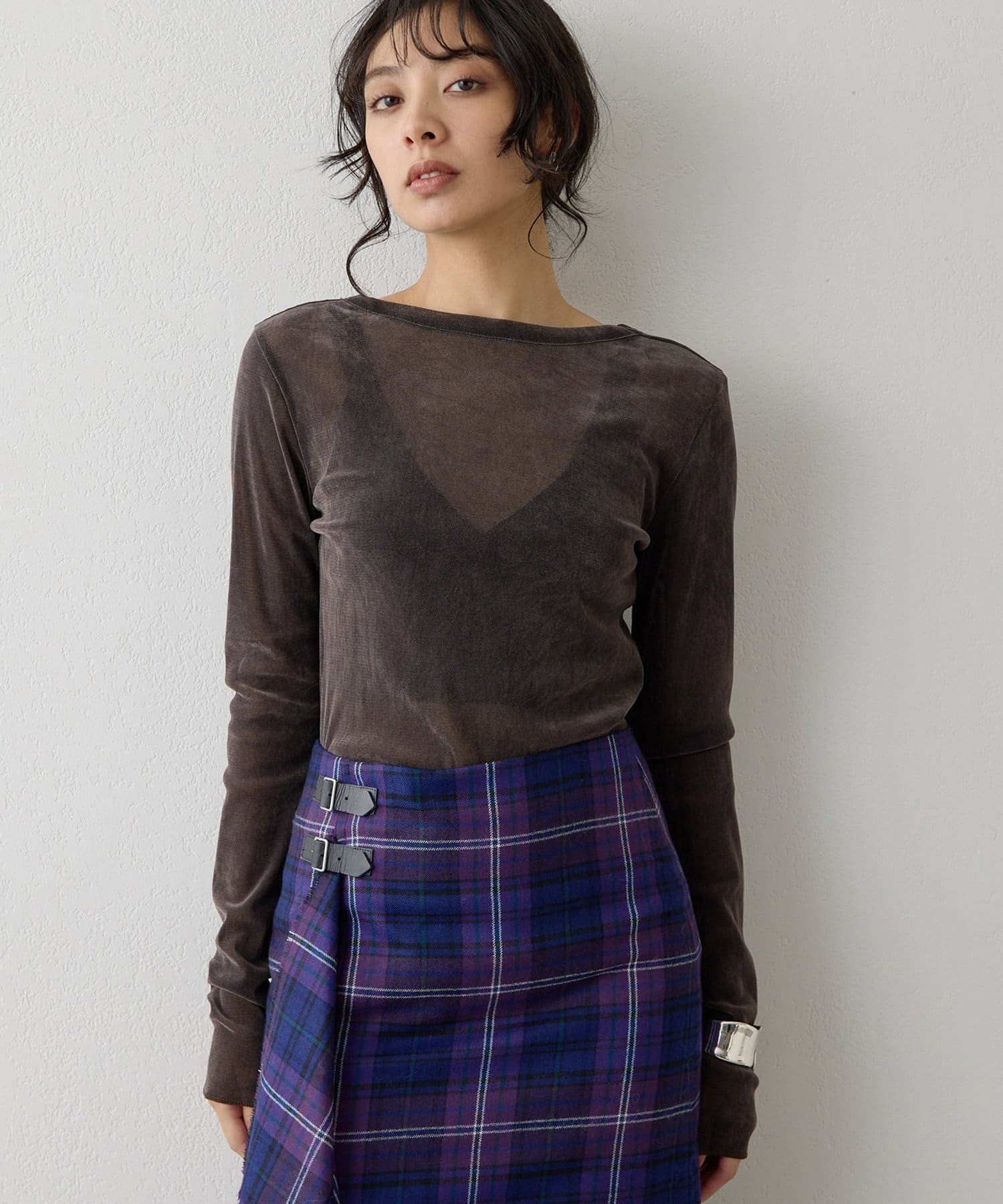 ■程よく肌がのぞくネック周りのカッティングがきれいなロングスリーブカットソー。