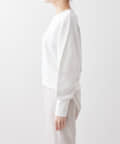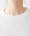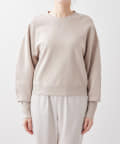 柔らかな質感のスウェット。袖のシルエットが綺麗で、シンプルですがさり気なくデザイン性があります。ボトムはパンツだけでなく、スカートにも合う、着回し力のある一枚です。季節を問わず、投入できます。