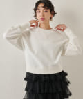 ■ドロップショルダーやボリュームスリーブでゆったりとした着心地ながら、短丈にすることで女性らしさを出したデザイン。