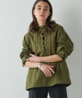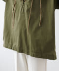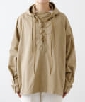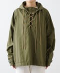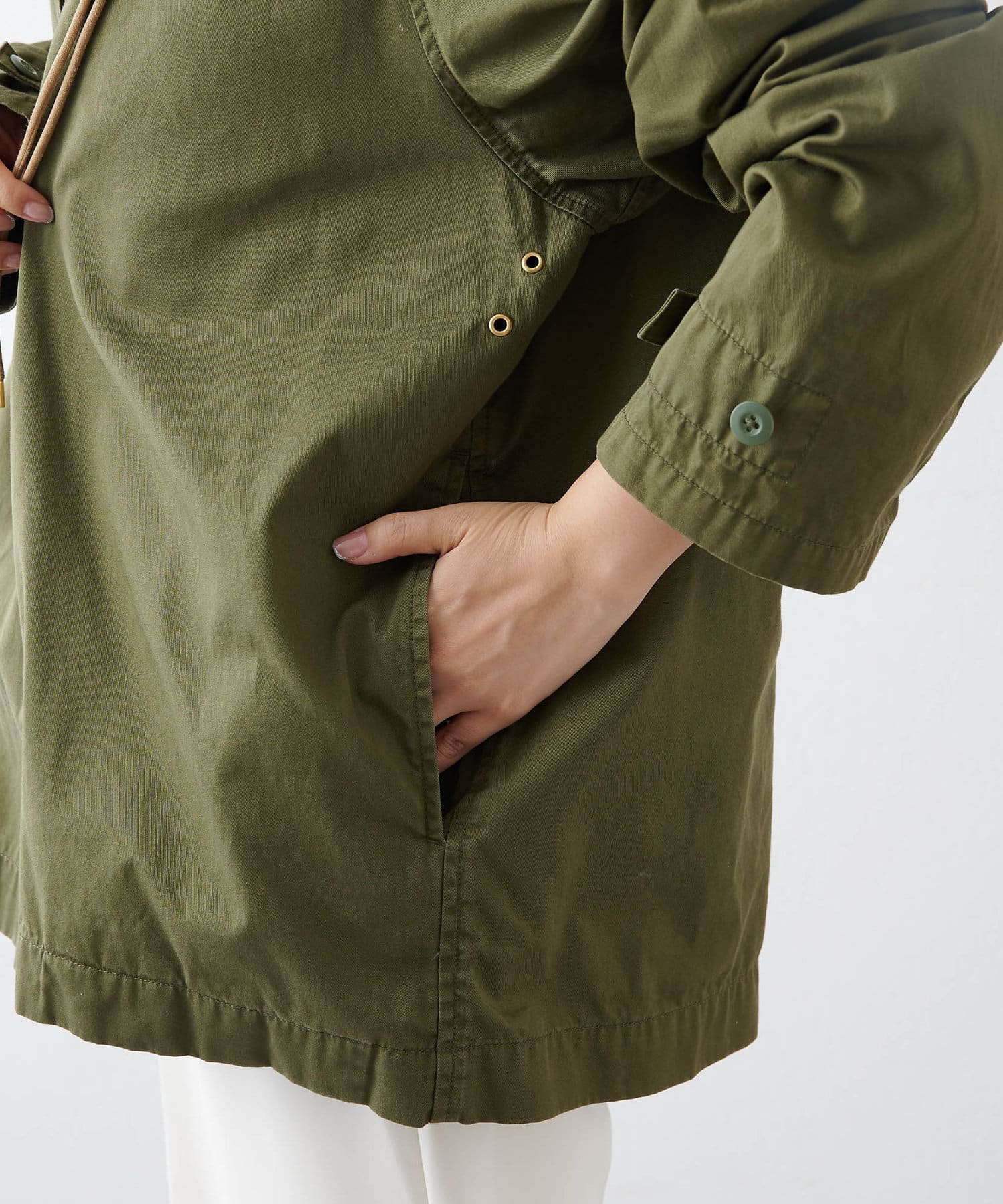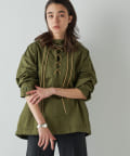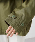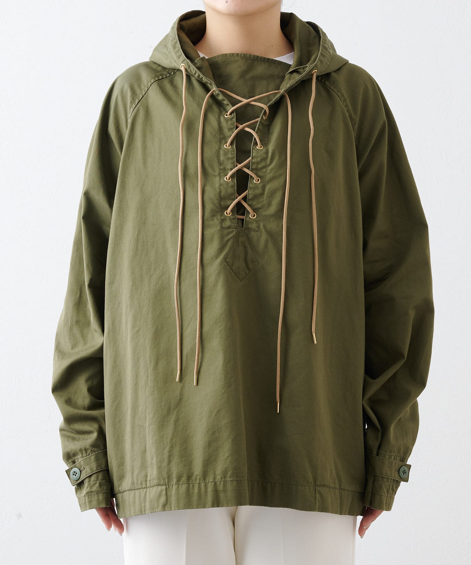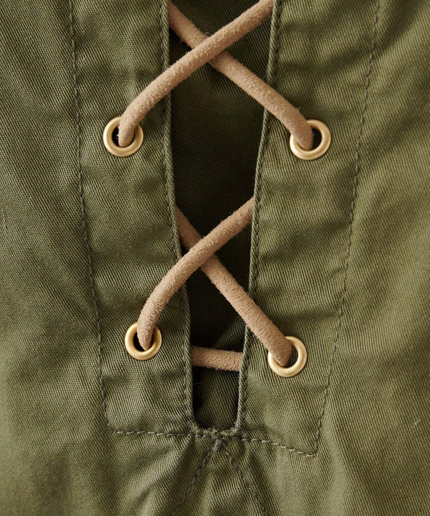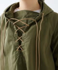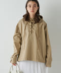 レースアップがこなれ感を出してくれるアウター。マットな質感が上品さをプラス。こういったデザインは、ナイロン素材が多い中、コットン素材が新撰。着回し力のある一枚です。