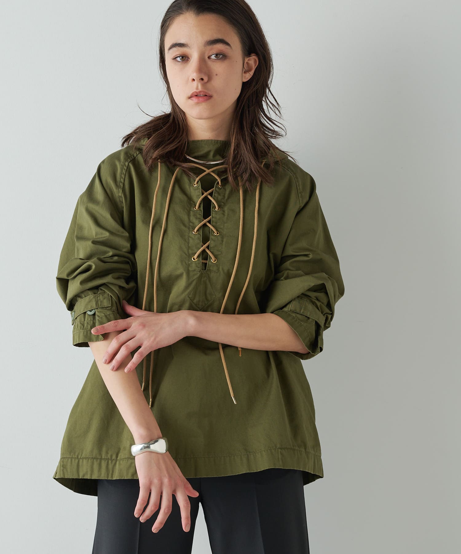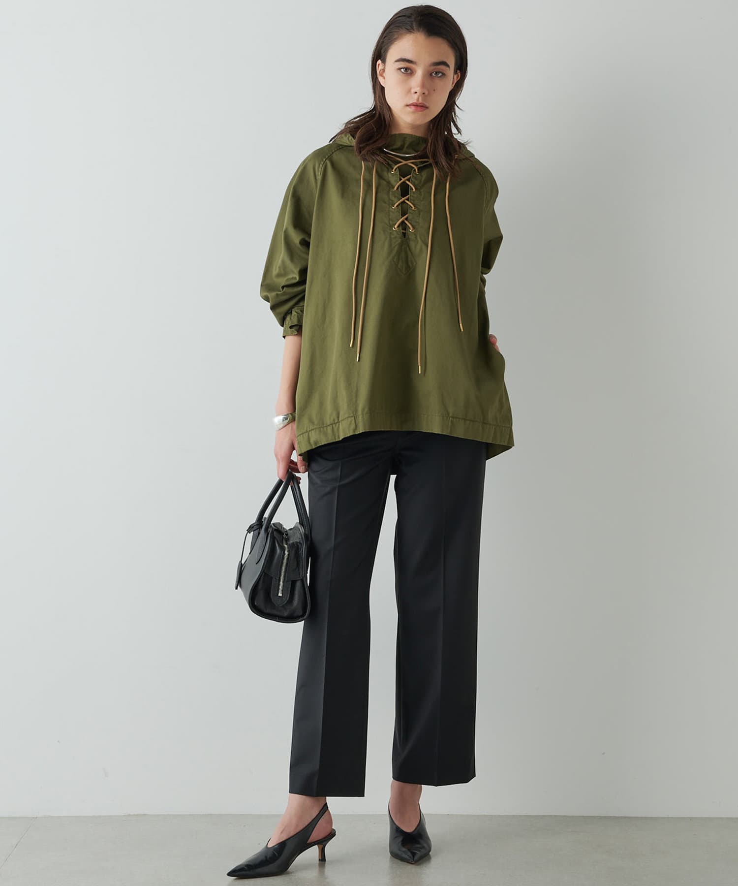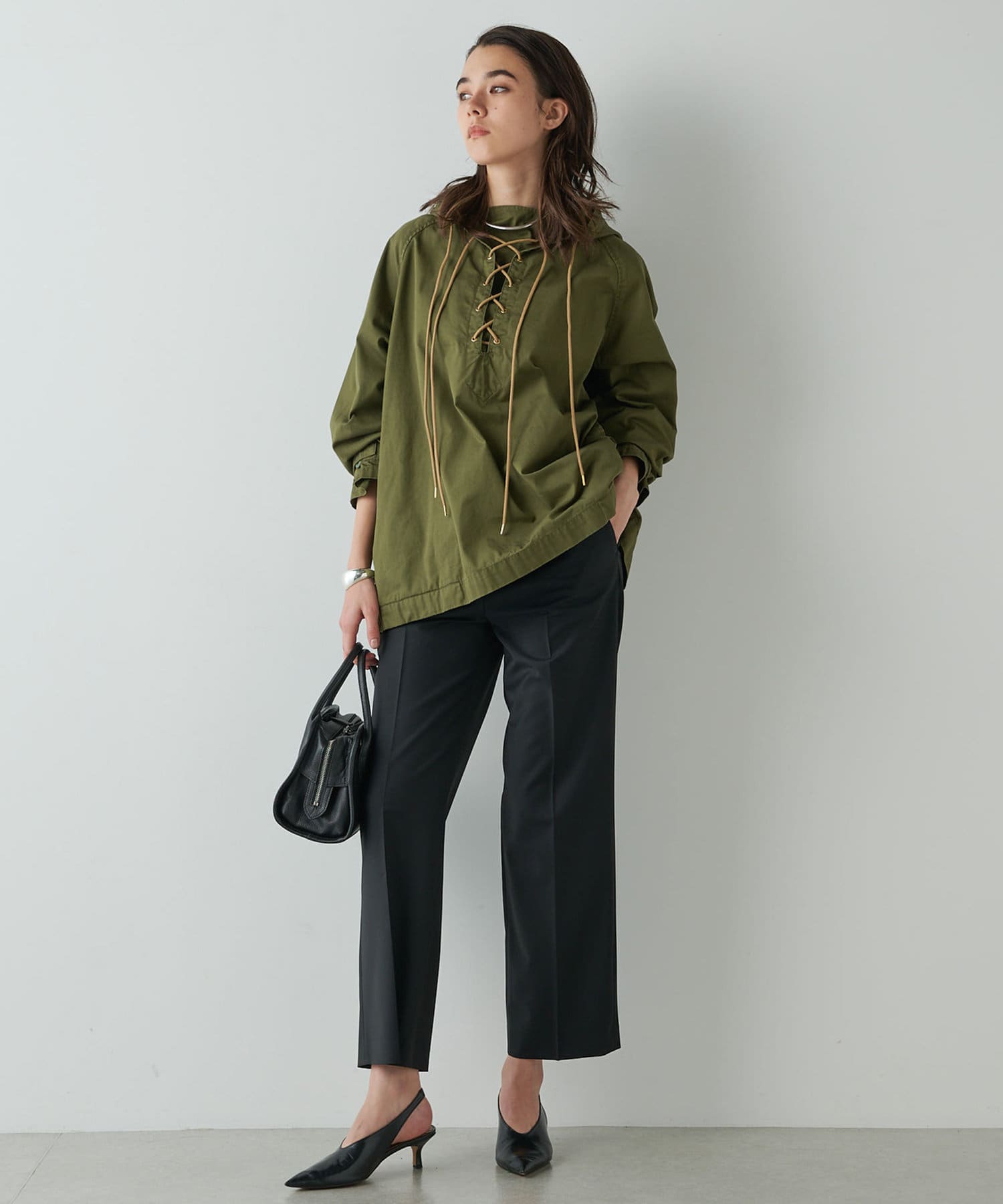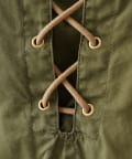 ■ネック部分に施したレースアップ仕様が着こなしのポイントに。