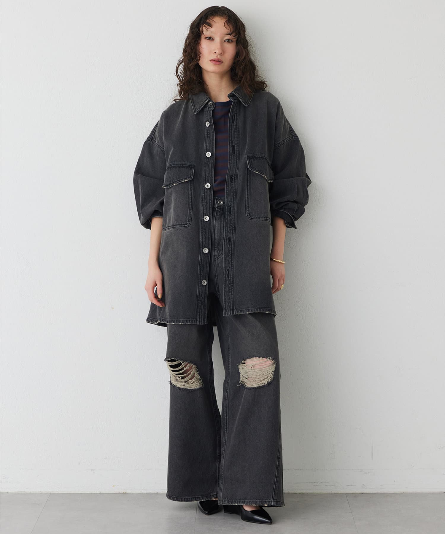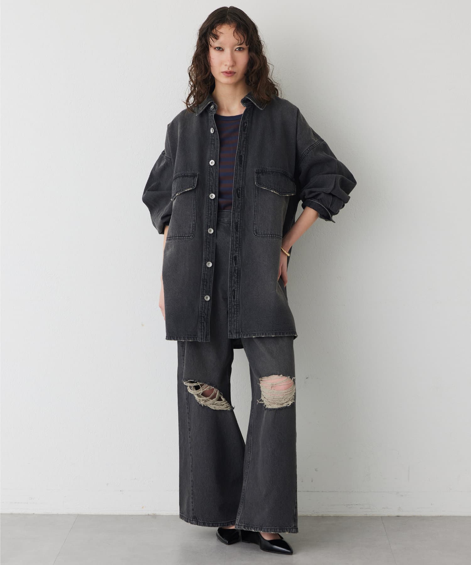 ■メンズのシャツを羽織ったようなビッグサイズのデニムシャツ。