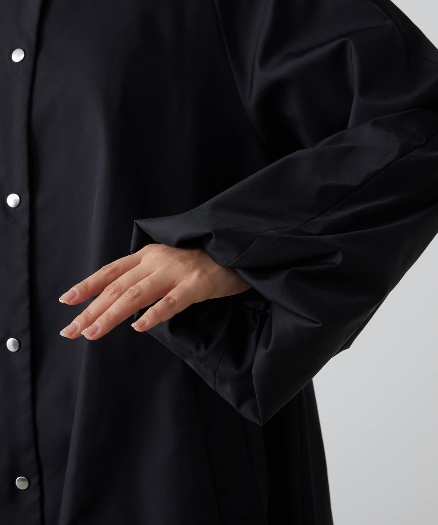 とても軽く、張りのある素材が綺麗めなアイテムとも相性が良いです。袖と裾のボリュームデザインがポイントになり華やかな印象に。ワンピースに羽織ったり、カジュアルにロゴTやニットに合わせもおすすめです。
