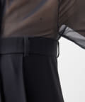 ■軽やかなシフォン素材と、トリアセテート特有の光沢感と色の深みが特徴のダブルクロスを使用した上品な一着。
