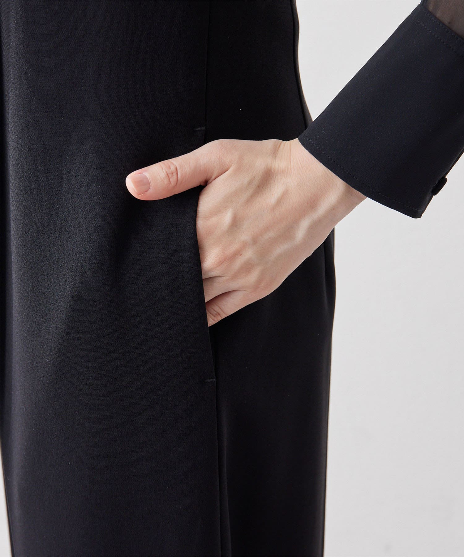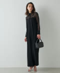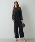 自然とスタイルアップが叶う大人アイテム。お呼ばれにもおすすめです。シアー感とブラックの生地のメリハリが綺麗で、他には無い、ハンサムなオールインワンです。私の身長ですと、裾カットが必要です。