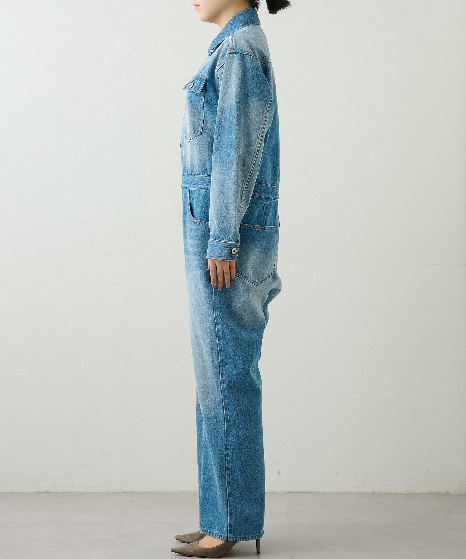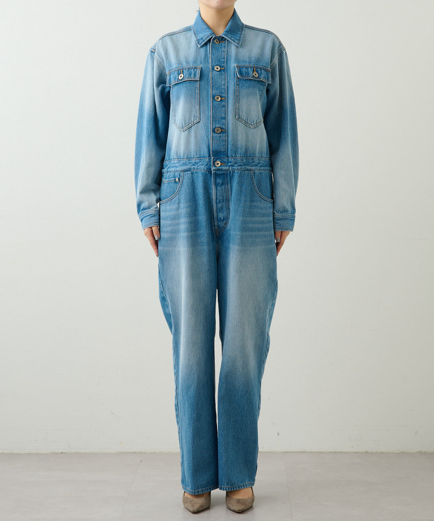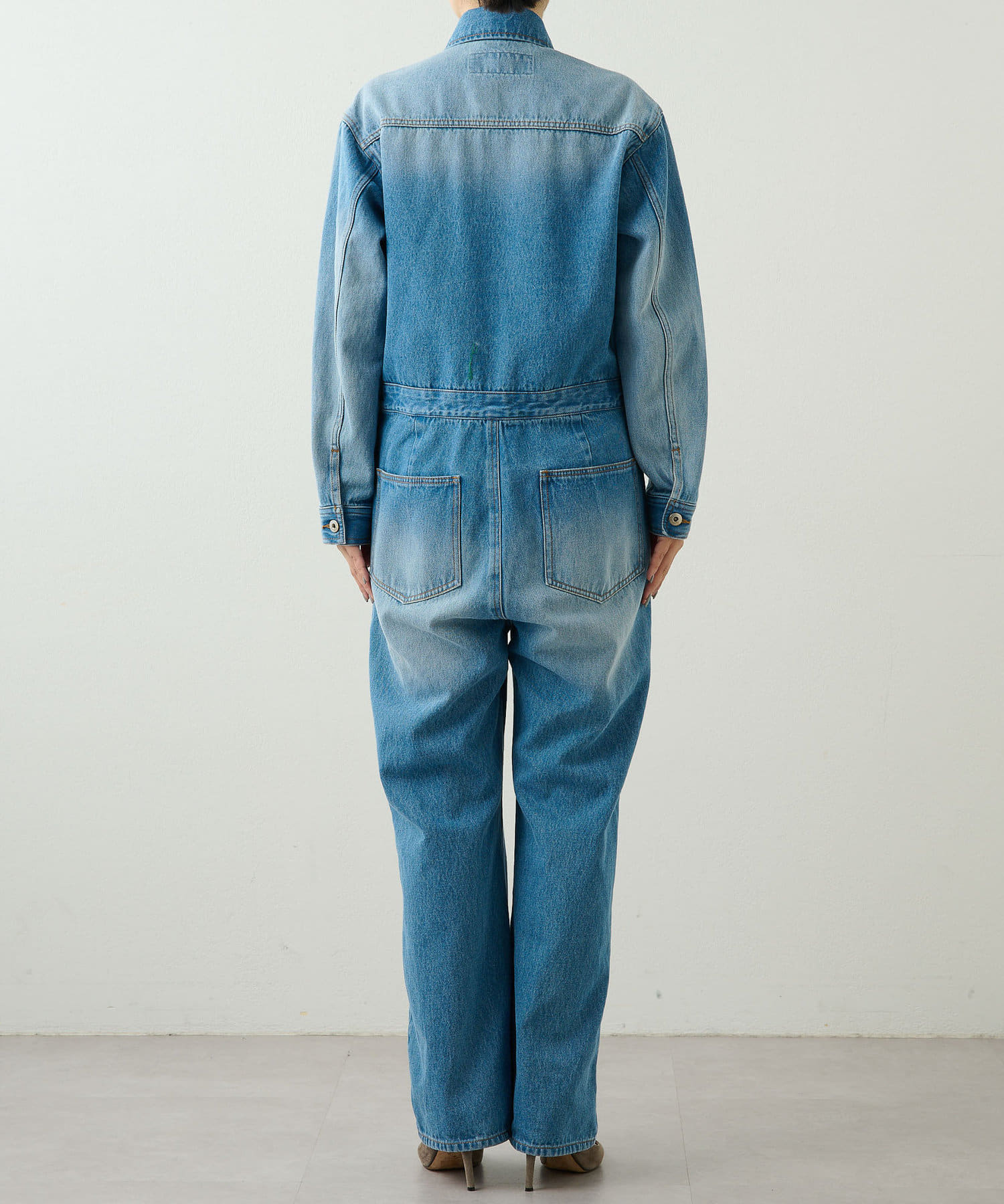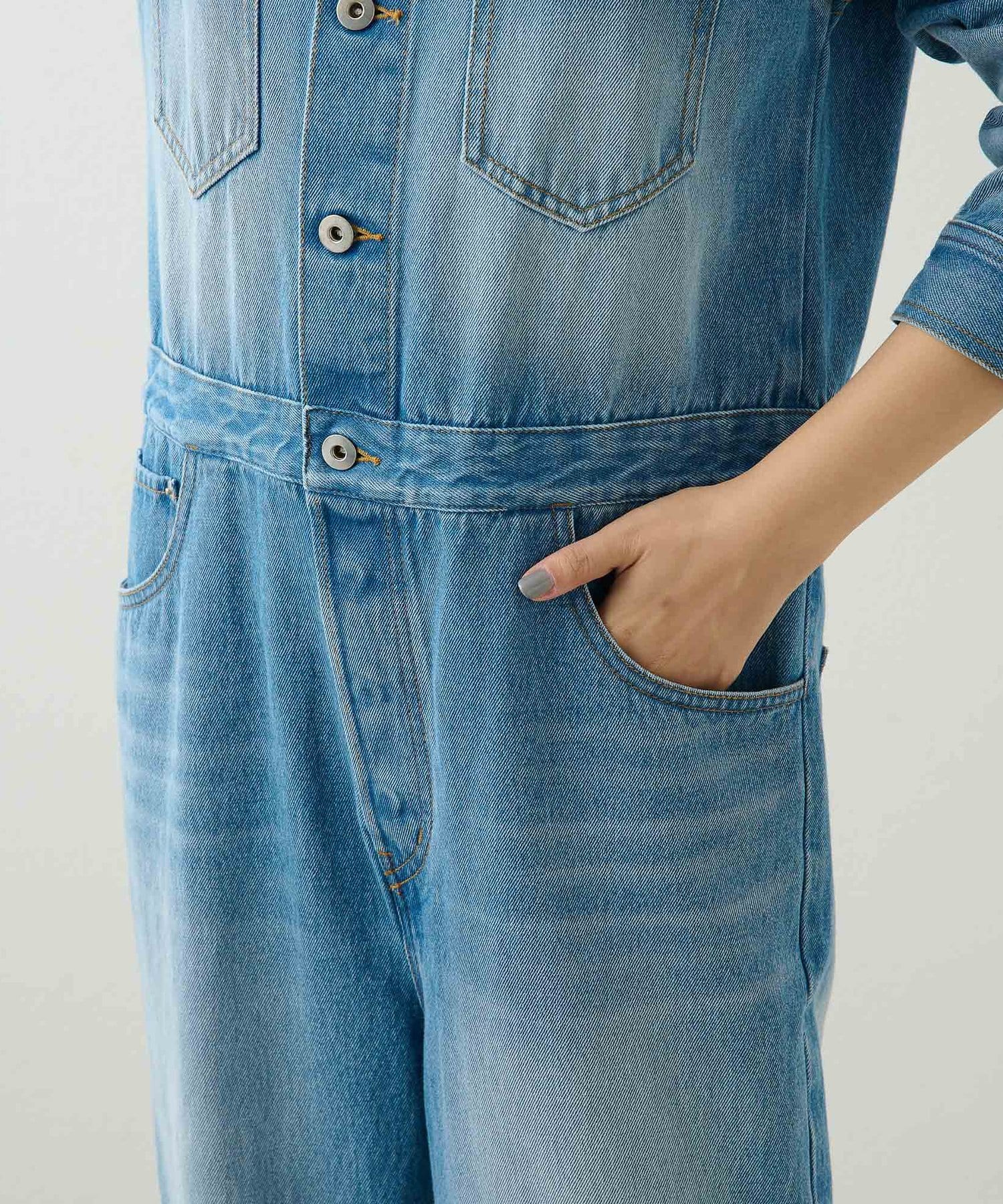 ■ヴィンテージ感のある表情に仕上げられたデニムボイラースーツ。