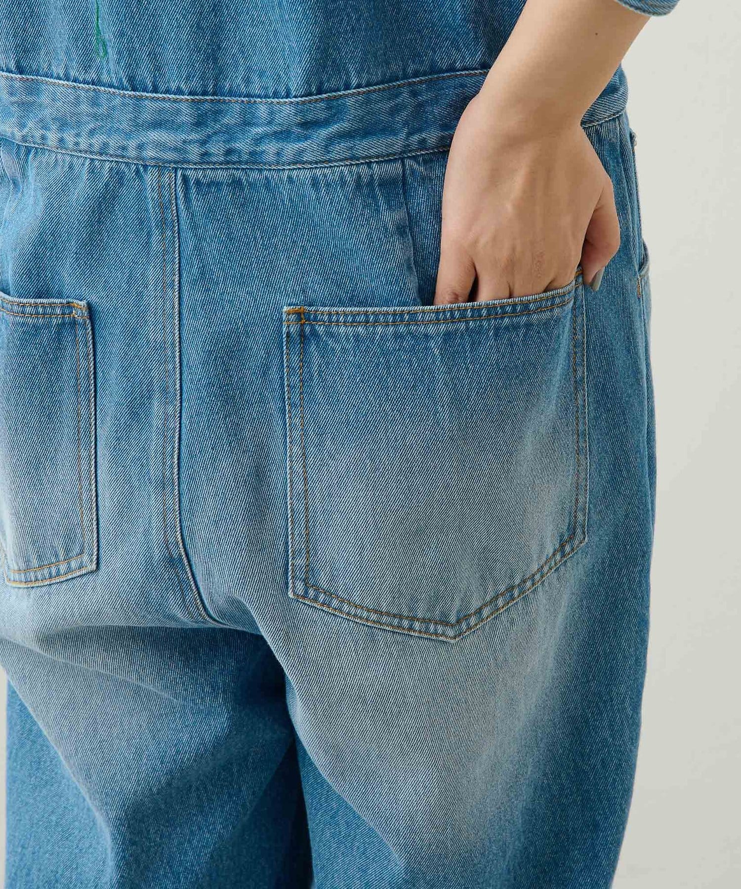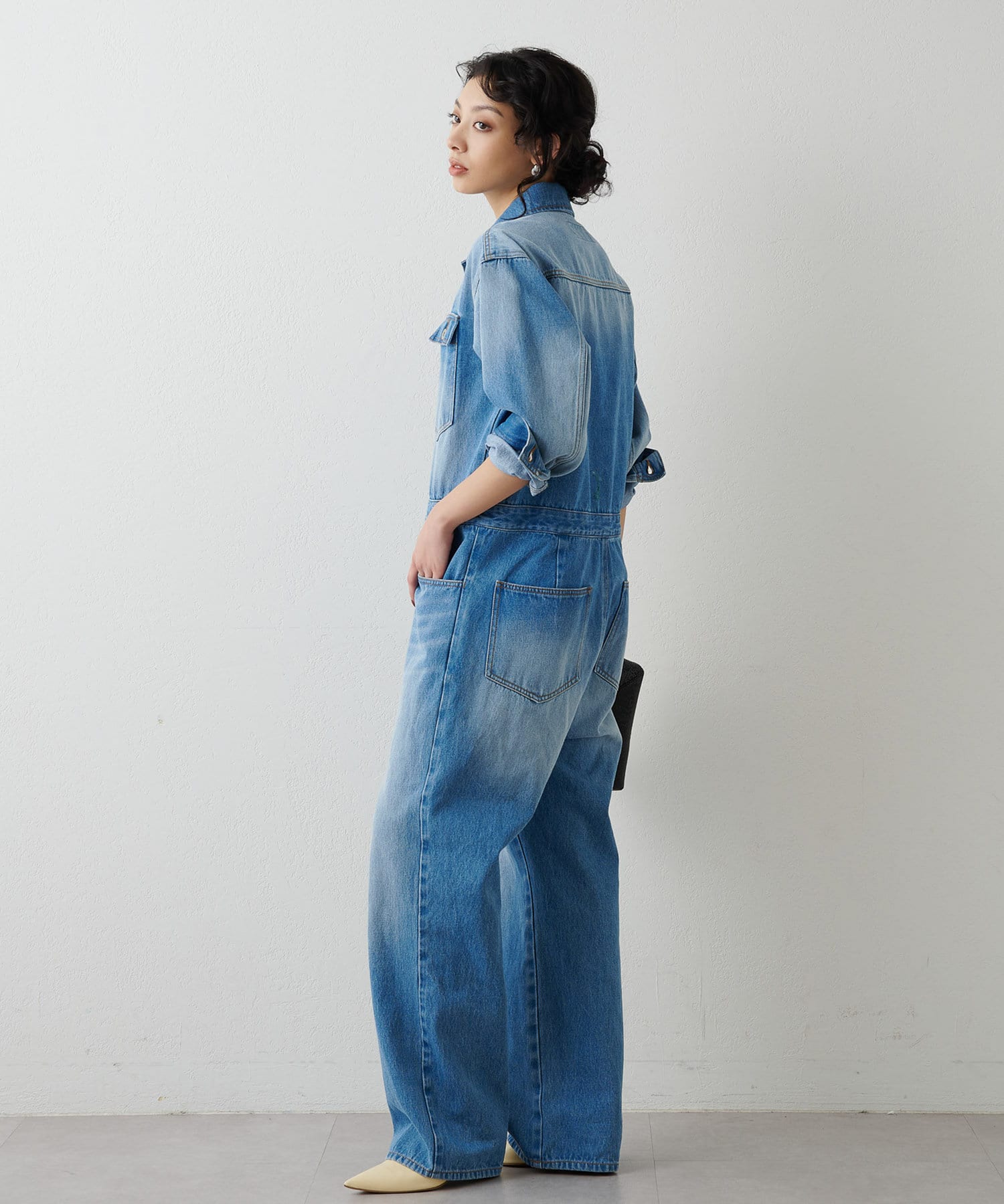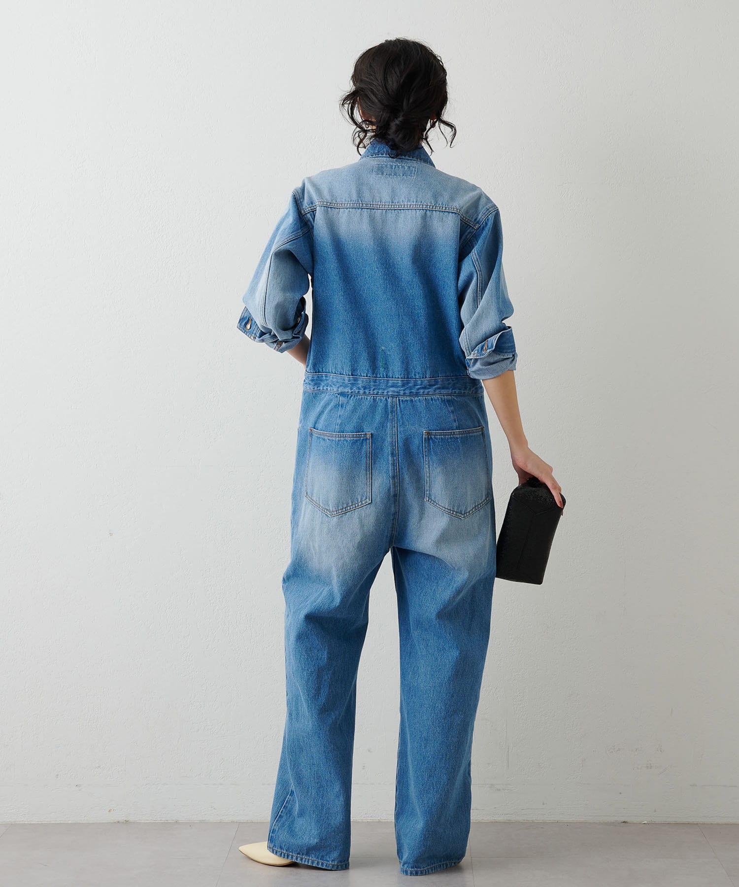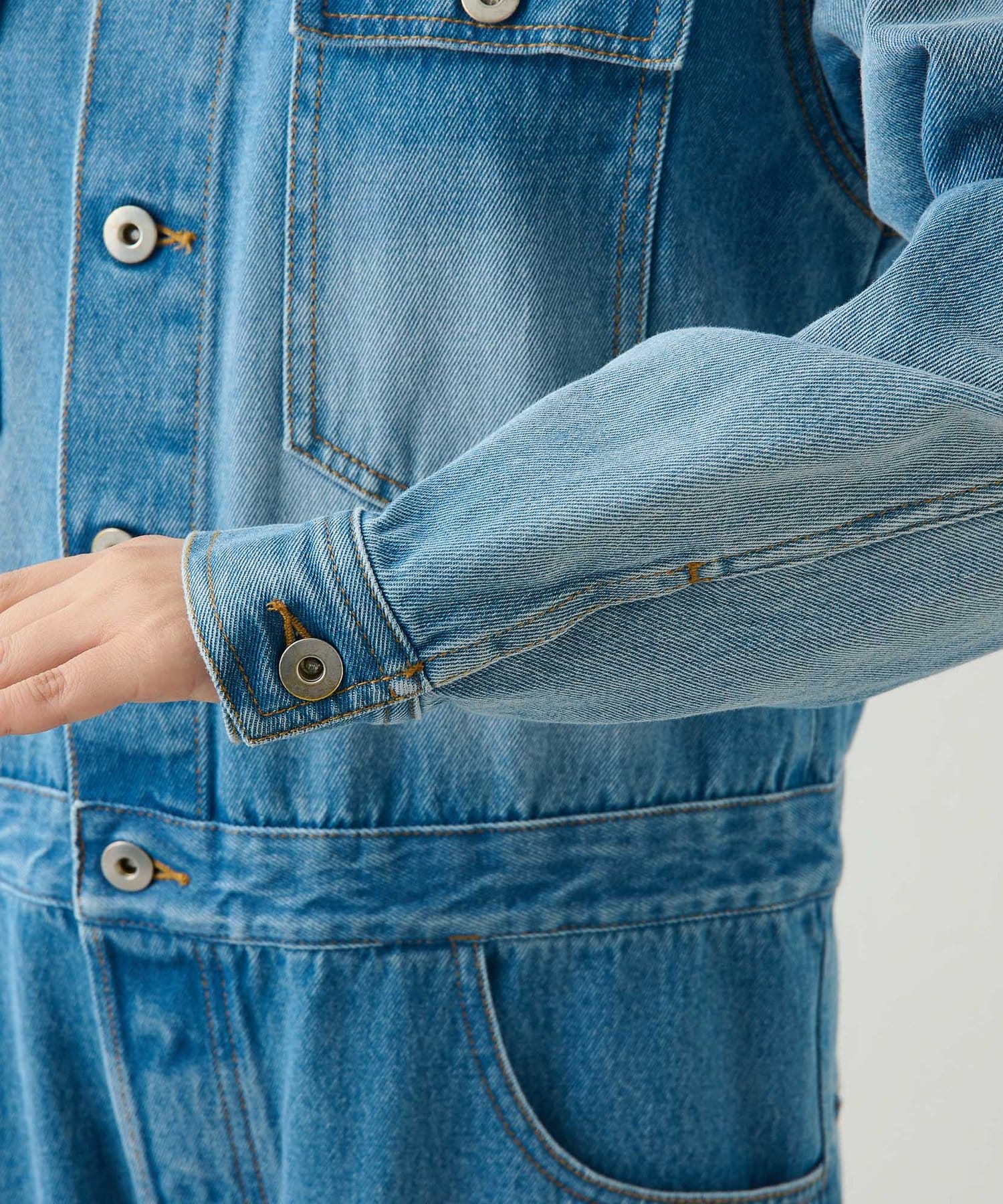 ■ヴィンテージ感のある表情に仕上げられたデニムボイラースーツ。