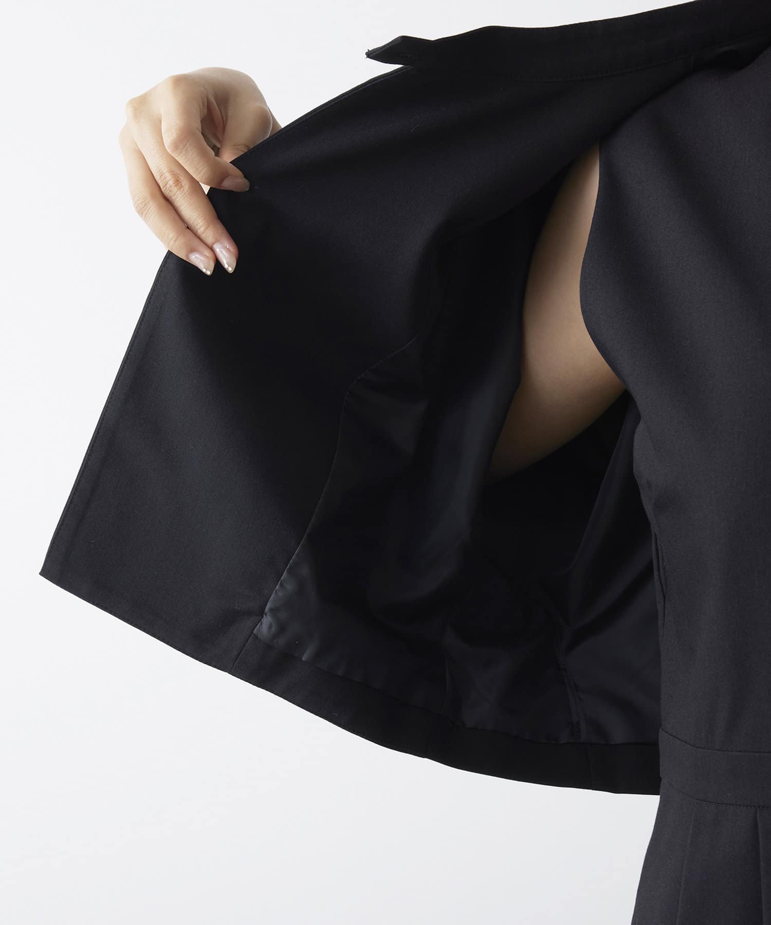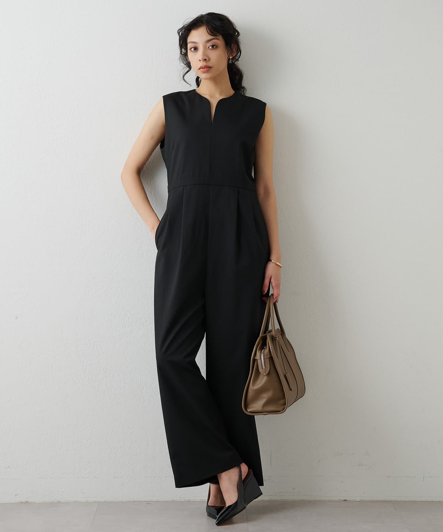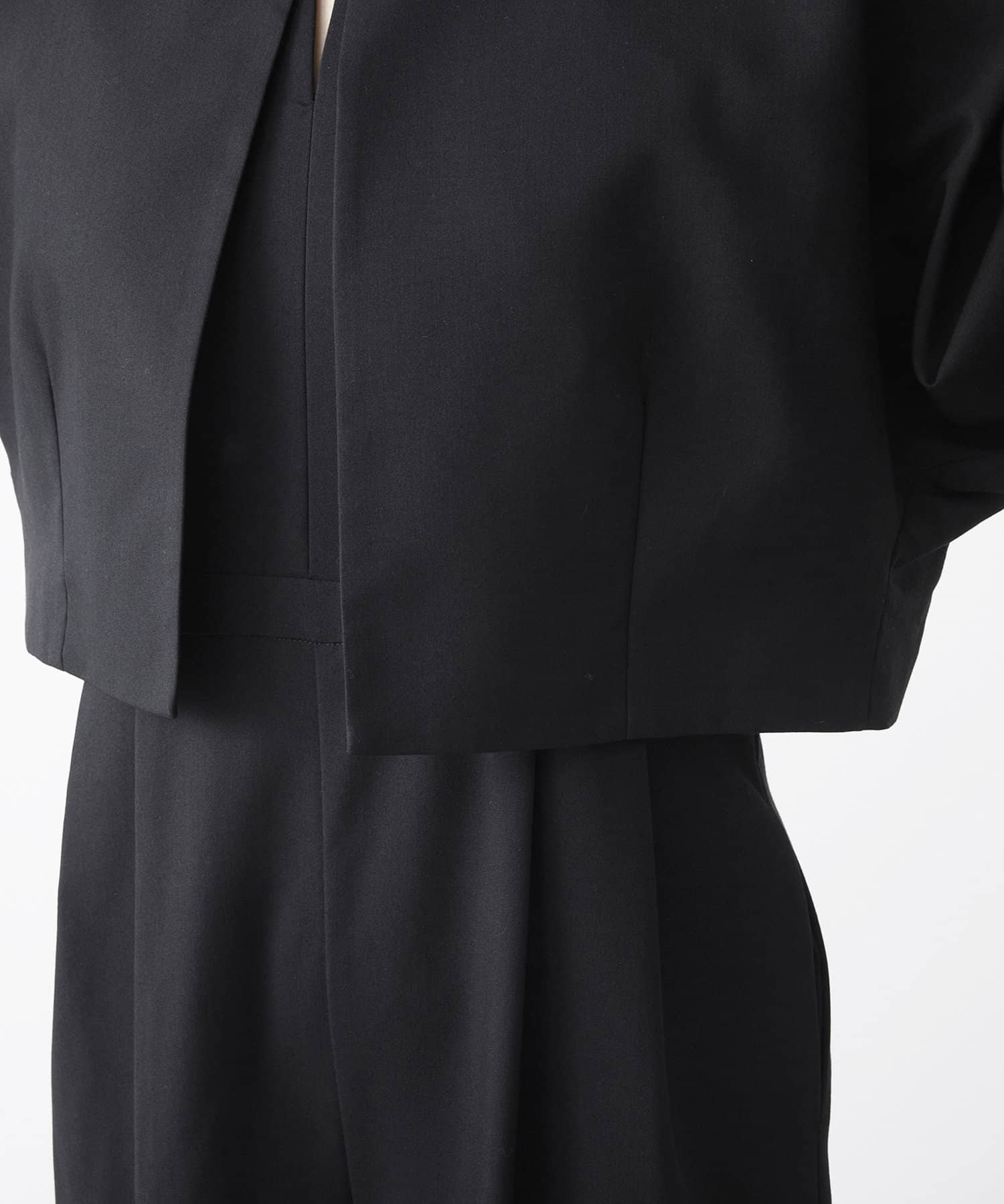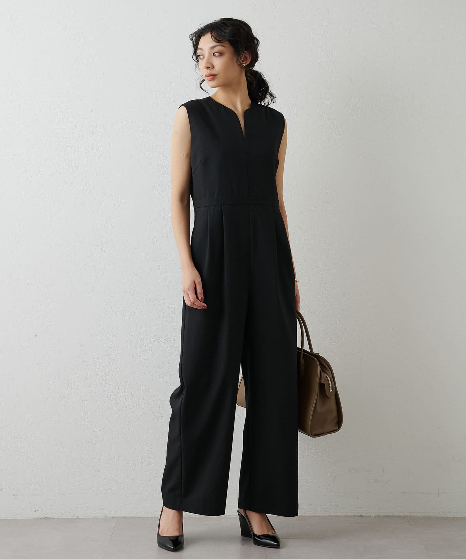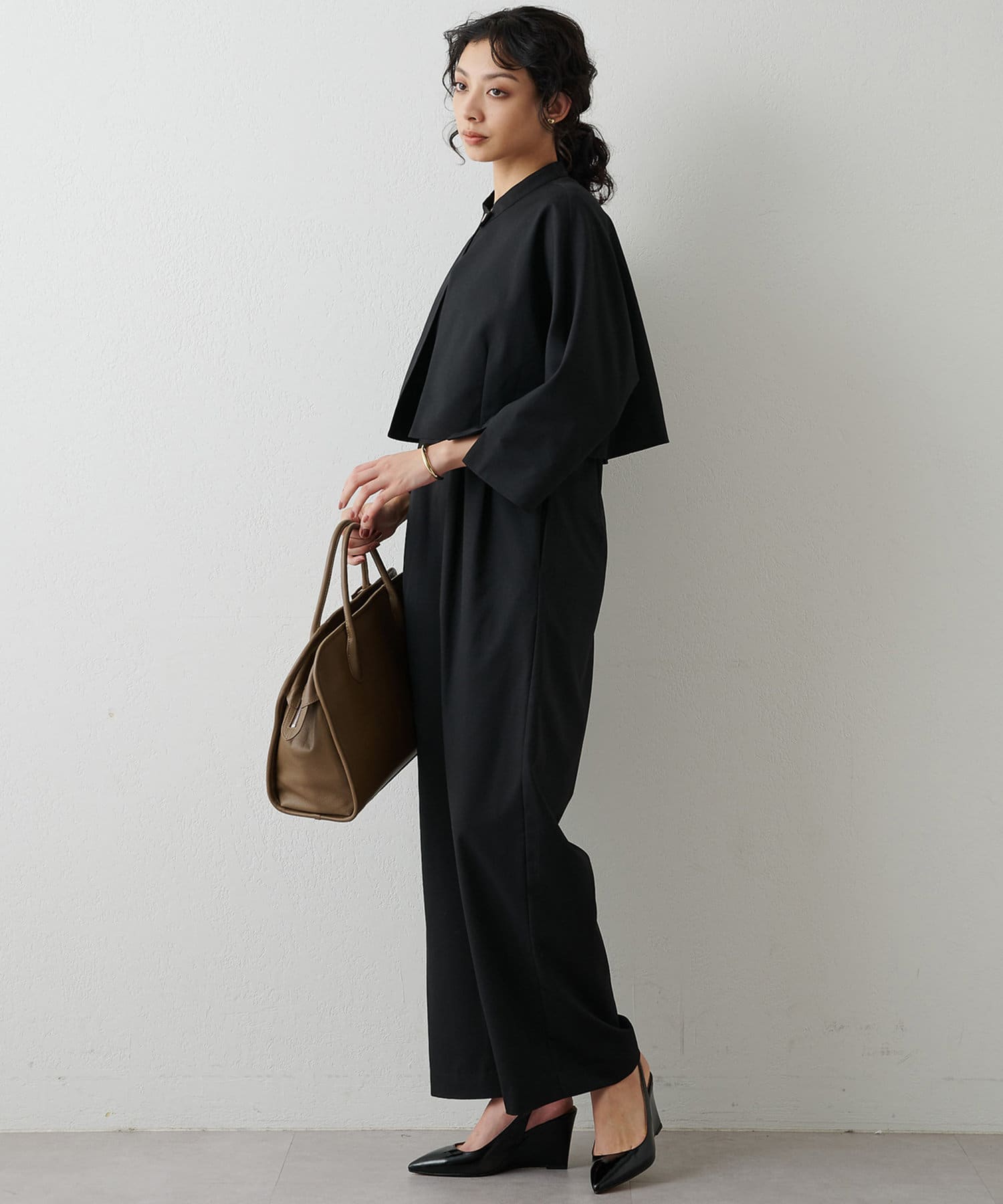ジャケットは袖の長さとスリットが抜け感を出してくれます。オールインワンの方はウエストがくびれて見え、脚長効果を感じられるシルエット。個人的には襟が丸いデザインのためブラックでも柔らかい印象になるところが好きです。