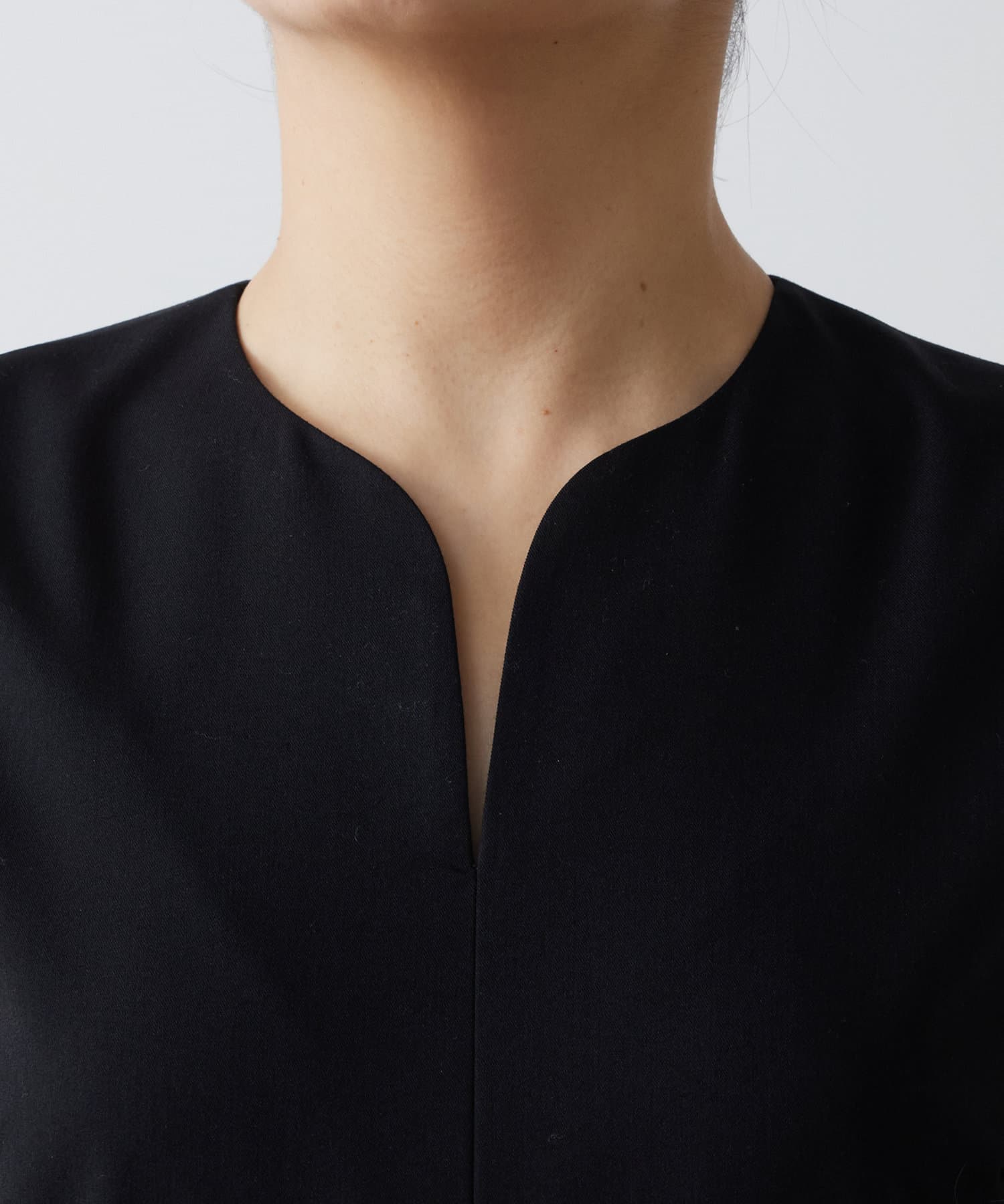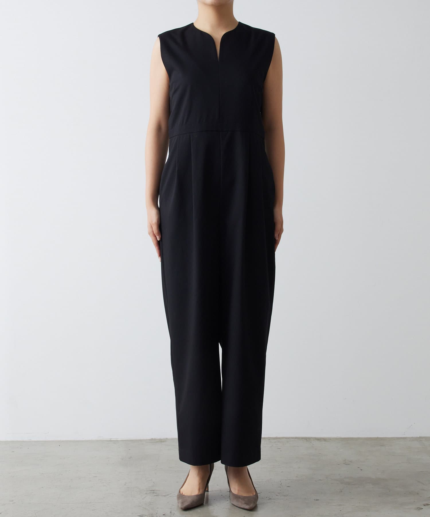 ■ミニマルな印象に仕上げたキーネックのコンビネゾンは、一枚でもサマになるようシルエットディテールにこだわったデザイン。