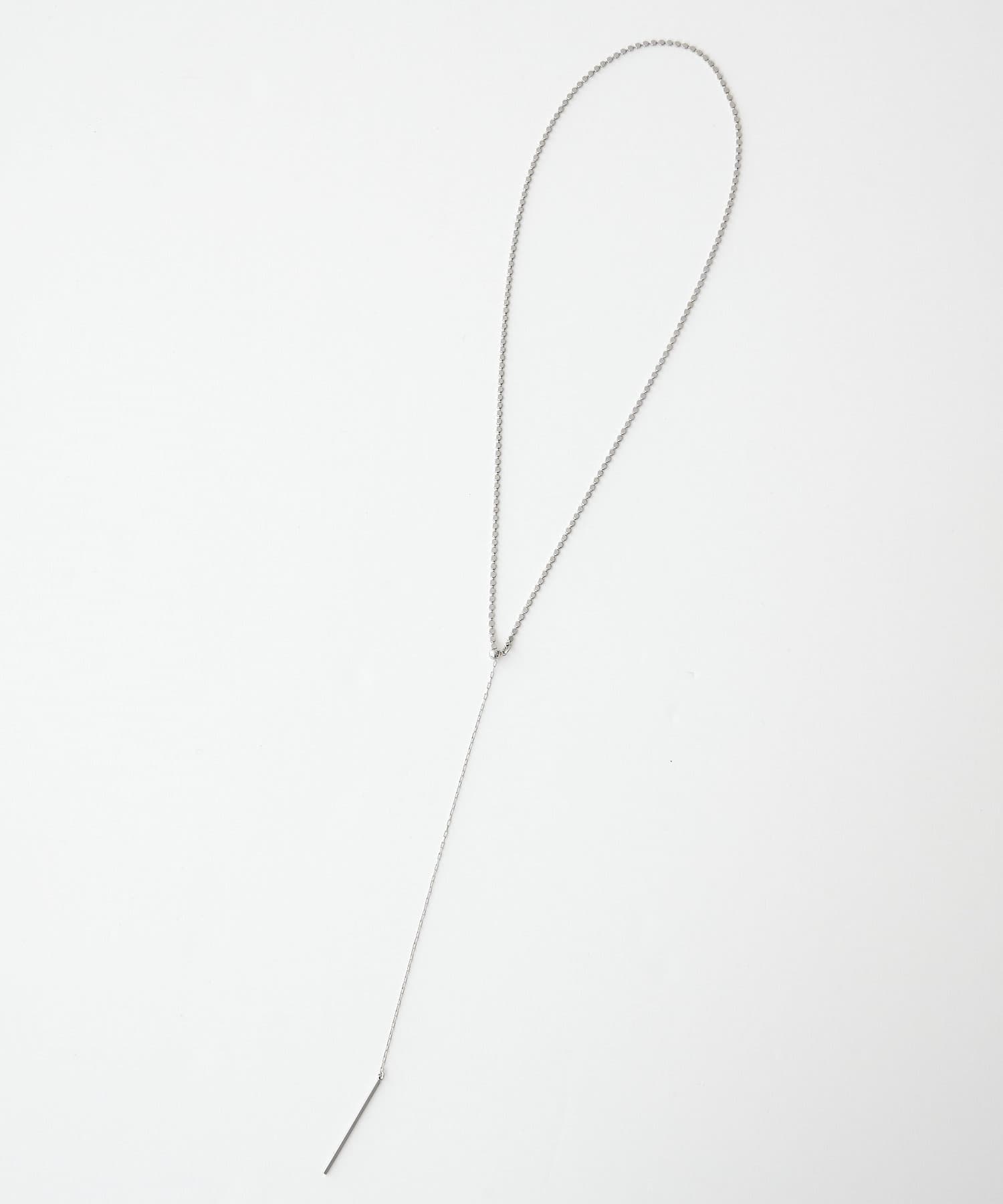 ■華奢なロングチェーンの先にあしらったバーもポイントに。