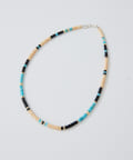 ■ランダムに配置された3色のビーズがポイントのネックレス。