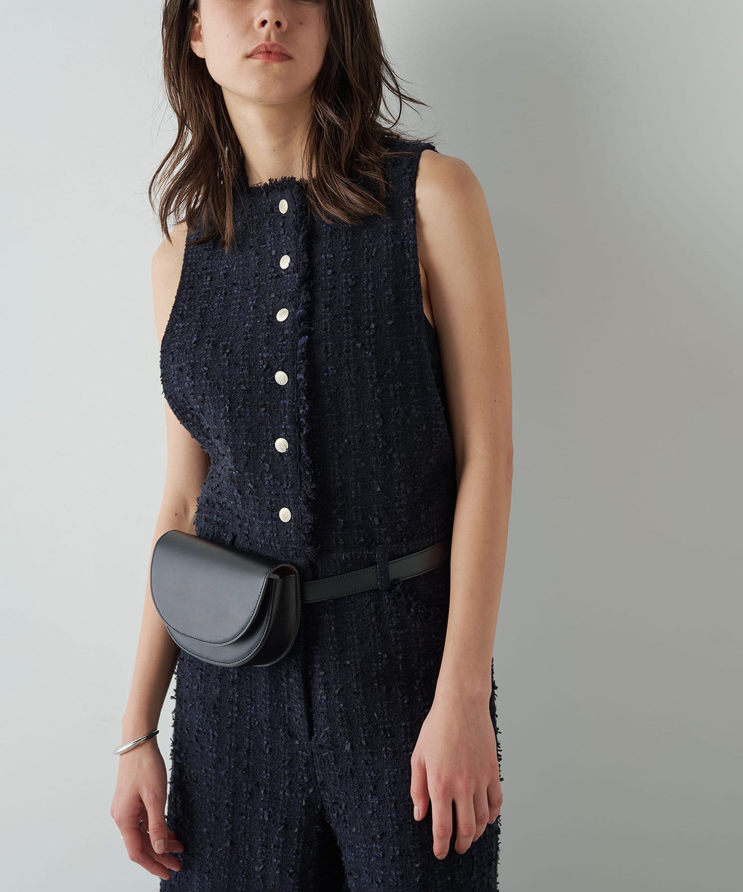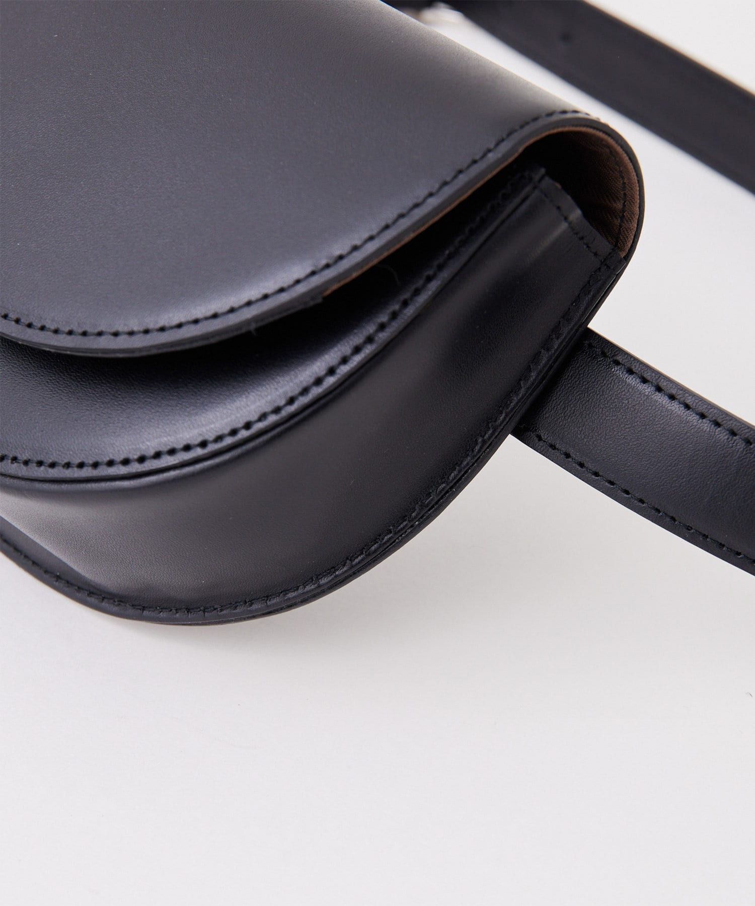 上質なカーフレザーを使用したシンプルデザインのウエストバッグ。ベルト替わりにパンツやスカートは勿論、ワンピースやジャケットに合わせるとトレンド感のあるスタイルに。サイズは、スマホやミニウォレット、ミニコスメなどが十分に入るサイズです。